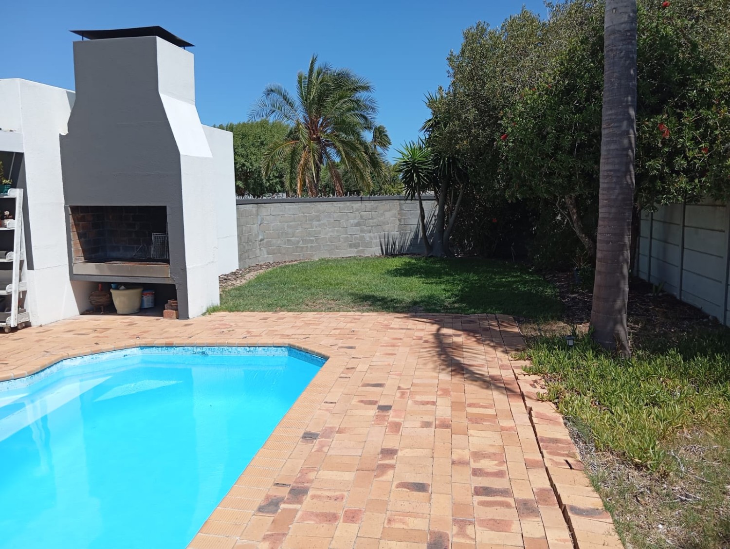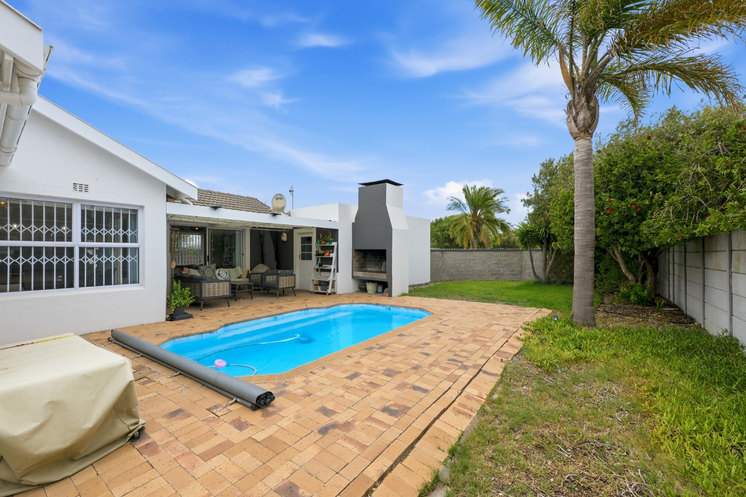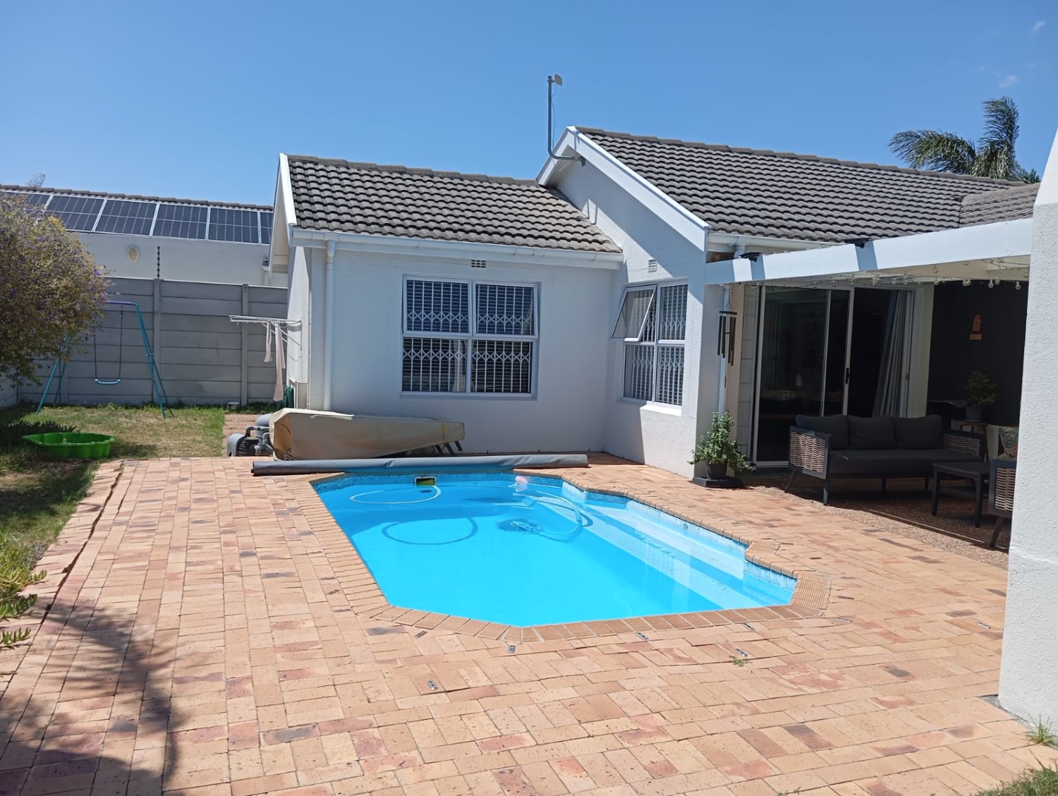Step outside to a spacious, private garden with a swimming pool, fully walled for peace of mind and privacy.