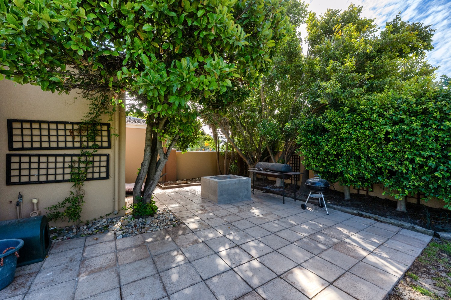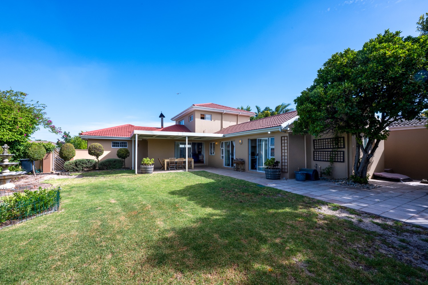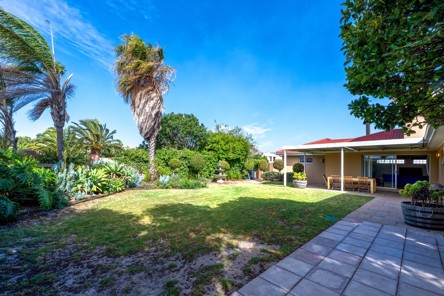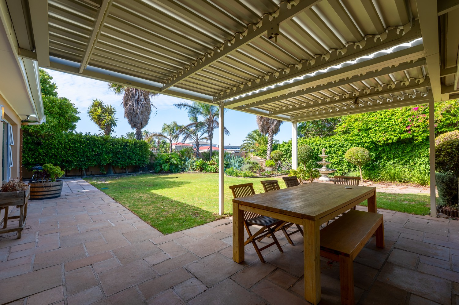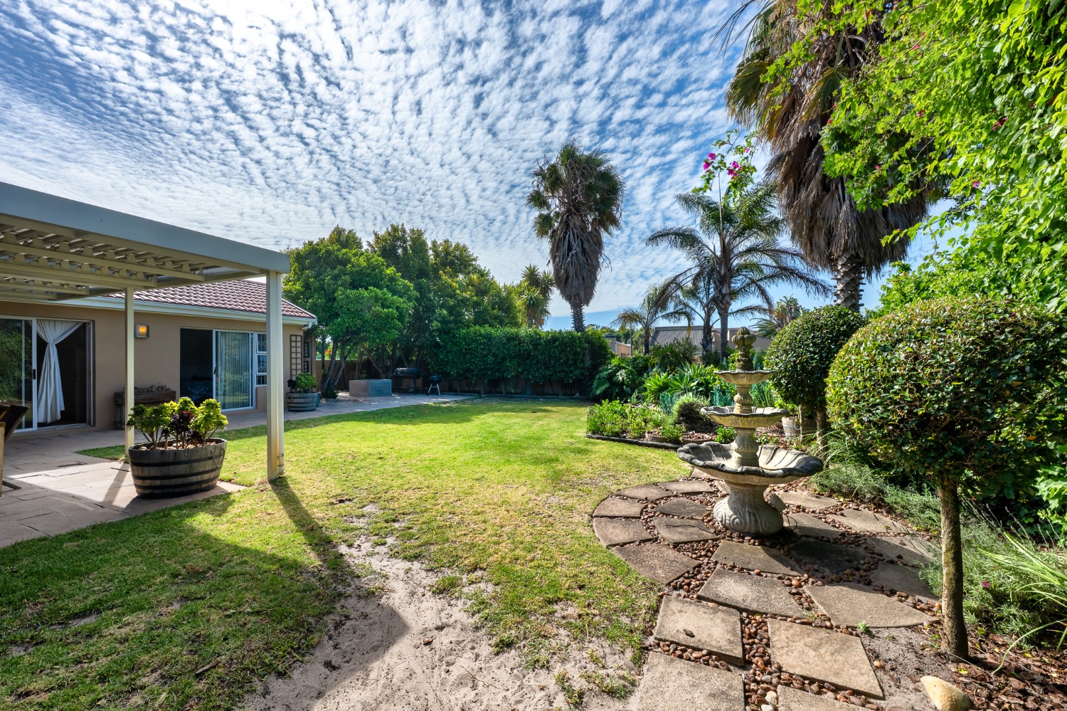 Beautiful garden with irrigation, borehole, and a built-in fire pit — a true paradise for kids and pets