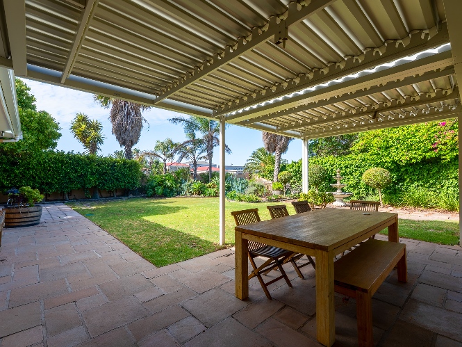 Covered patio with adjustable aluminium louvre roof — perfect for all-weather entertaining