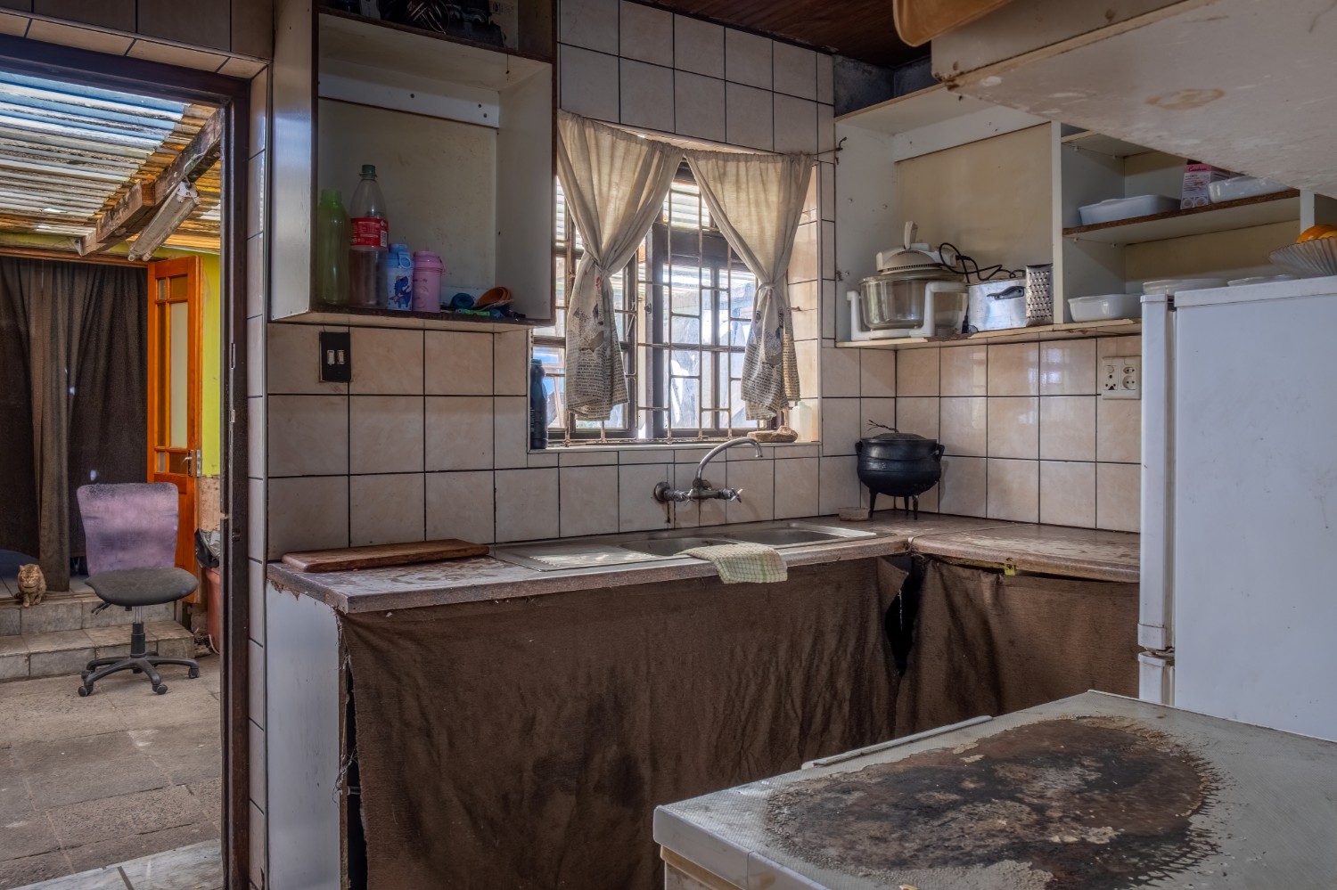 Welcome to this versatile home. This fixer upper has lots of potential! As you arrive, you are welcomed into a cozy lounge. The separate kitchen offers minimal built-in cupboards, making it a blank canvas to create and design your dream space.