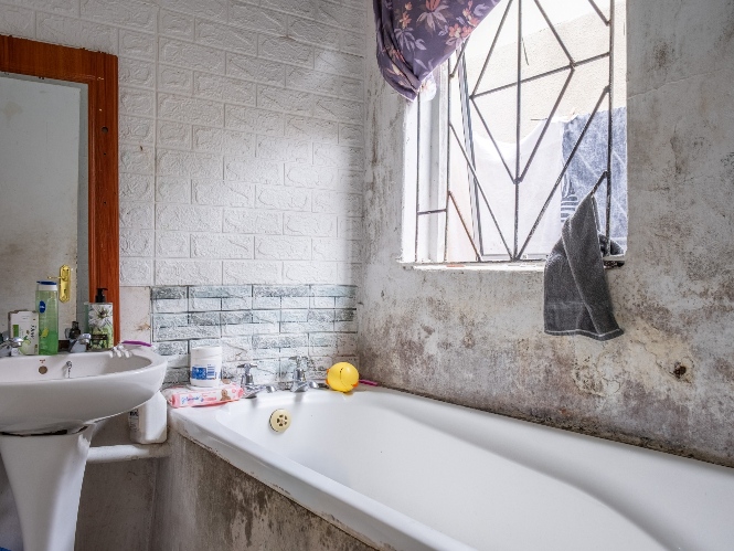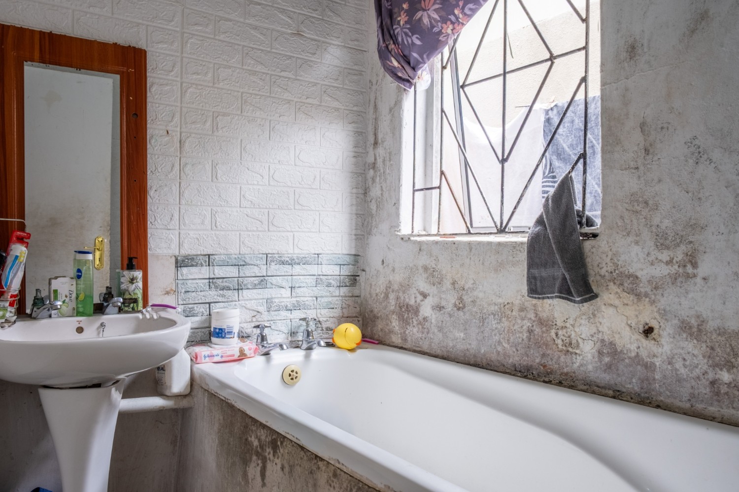 The main house features two comfortable bedrooms, a welcoming lounge, complete with tiled flooring, a well-sized kitchen, and a full bathroom fitted with a bathtub, basin, and toilet. It is the perfect size for a small family or couple looking for a cozy space to call home.