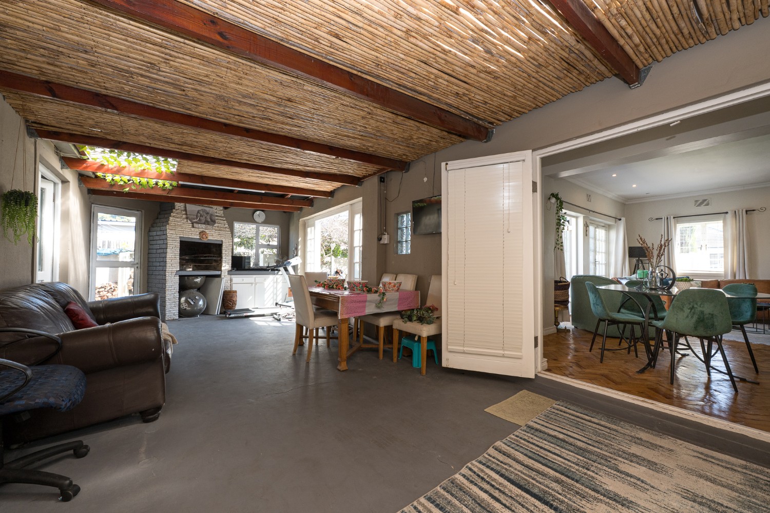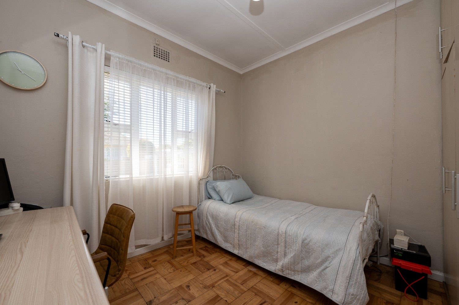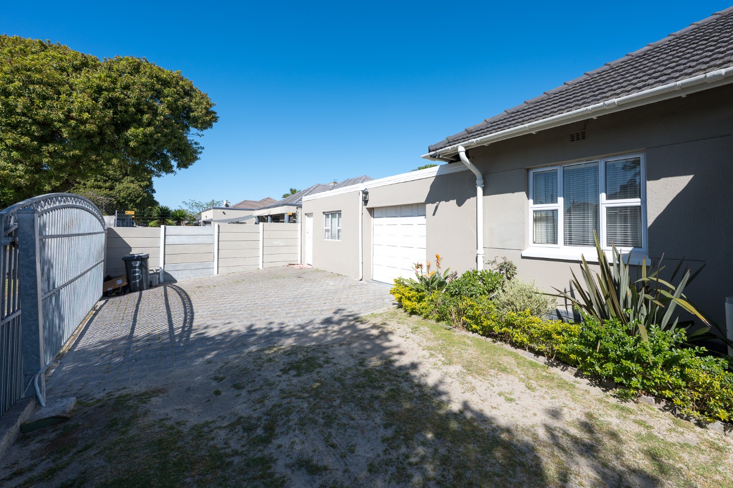 The property boasts three well-sized bedrooms, all complete with built-in cupboards ideal for all your storage needs. The fully tiled family bathroom features a bathtub, a basin, and a toilet. Outdoors, you will find a sparkling swimming pool and a low-maintenance garden. The dedicated entertainment area is complete with a built-in braai perfect for hosting gatherings all year round.