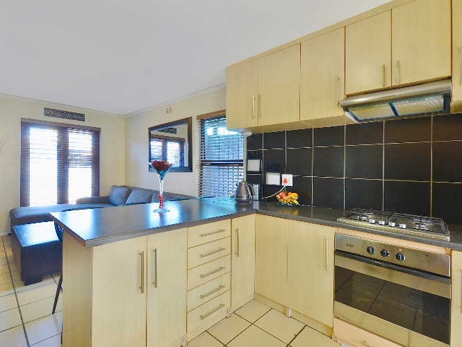 The property features two well-sized bedrooms, both with built-in cupboards, and a modern family bathroom. The inviting lounge flows seamlessly into the open-plan kitchen, fitted with a gas hob, electric oven, extractor fan, and ample storage.