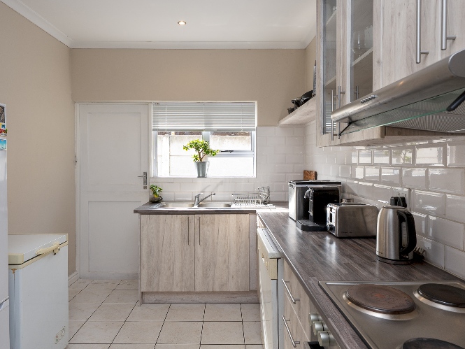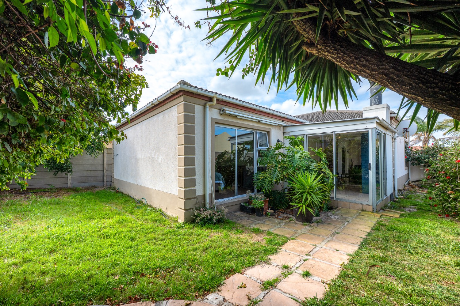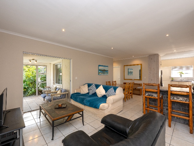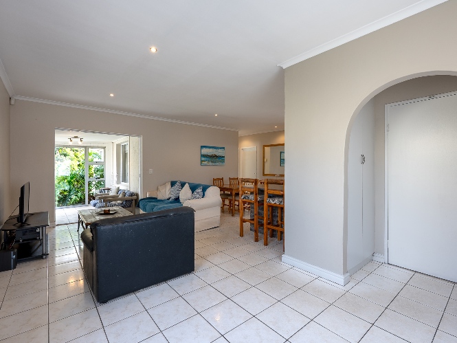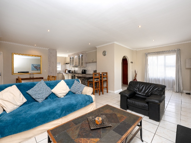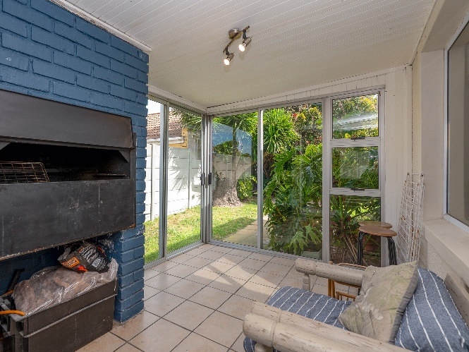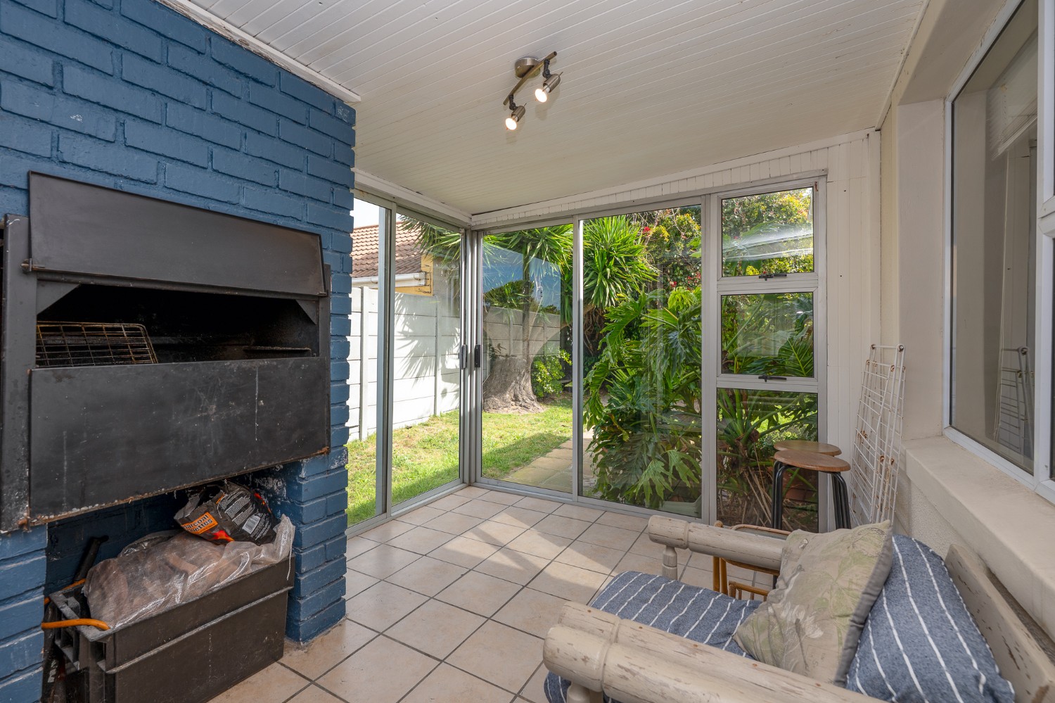 The living areas include a comfortable lounge and dining room, as well as a large kitchen with ample cupboard space, a built-in stove, and a plumbing point. An enclosed braai room provides the perfect setting for year-round entertaining.