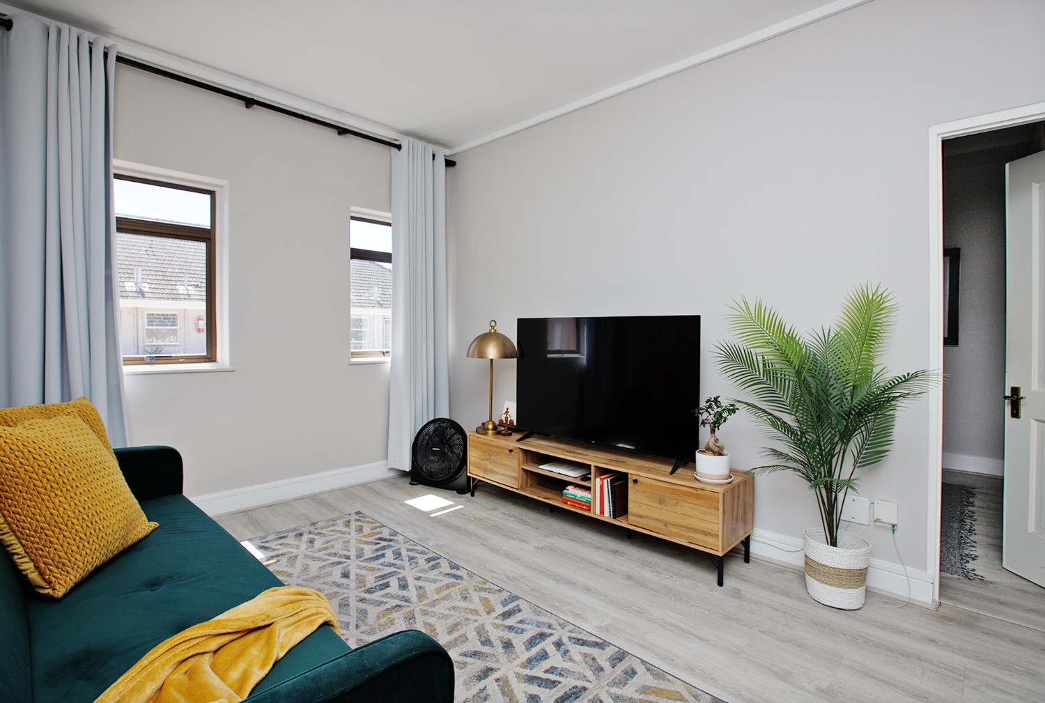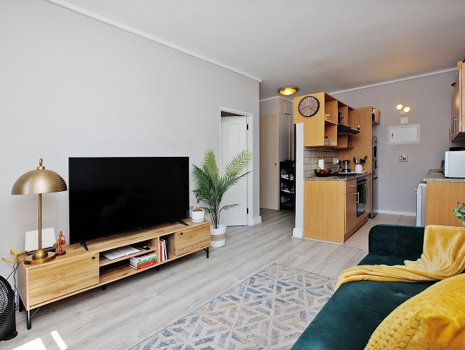 The cozy lounge area has ample natural light filtering through the windows as it is North-facing.