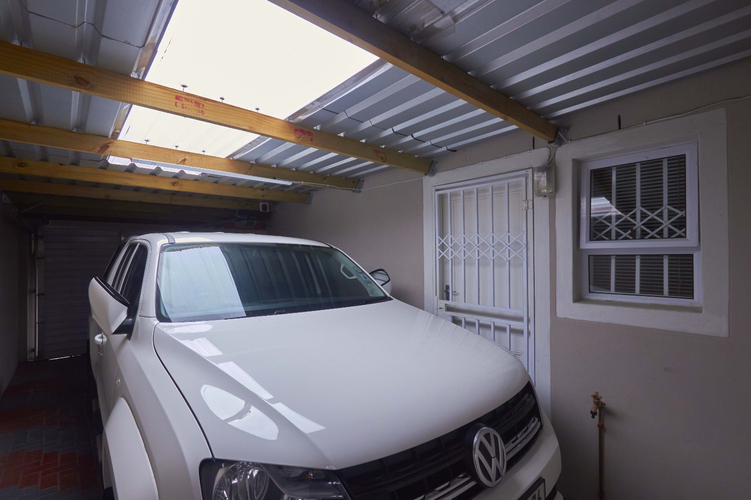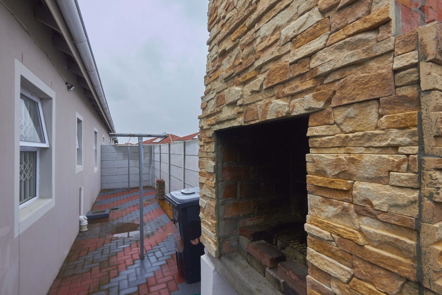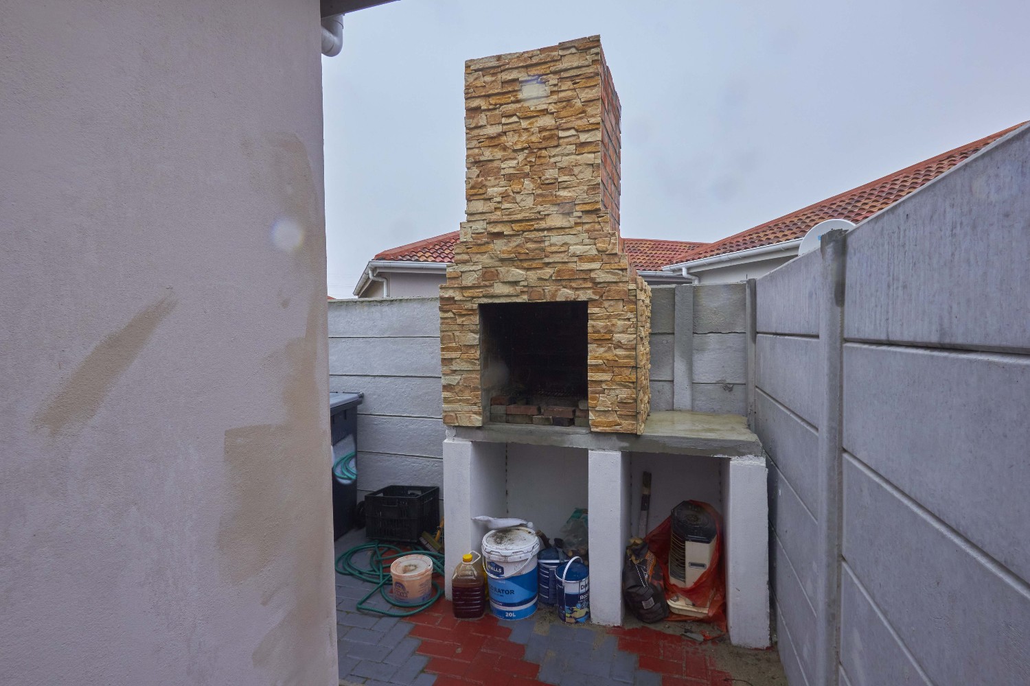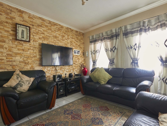 The garage is big enough to accommodate three cars, and the backyard boasts a built-in braai.