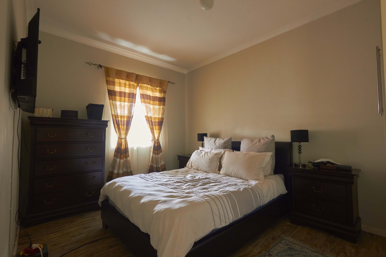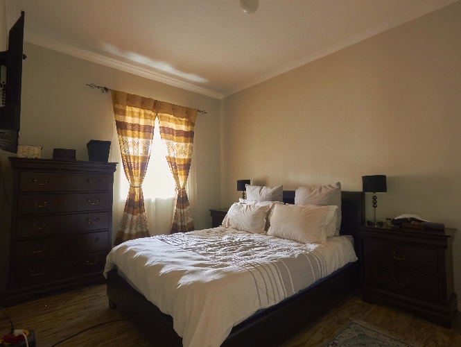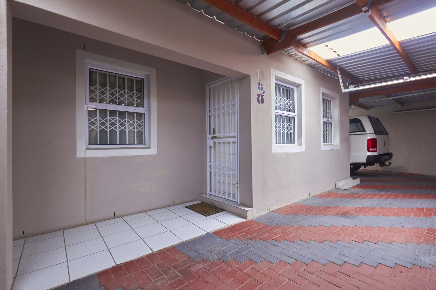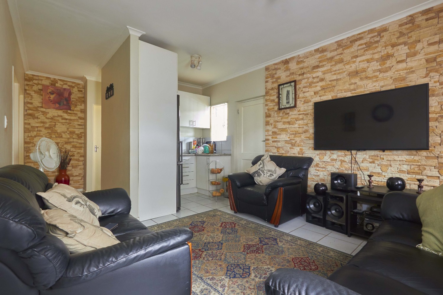 The garage is big enough to accommodate three cars, and the backyard boasts a built-in braai.