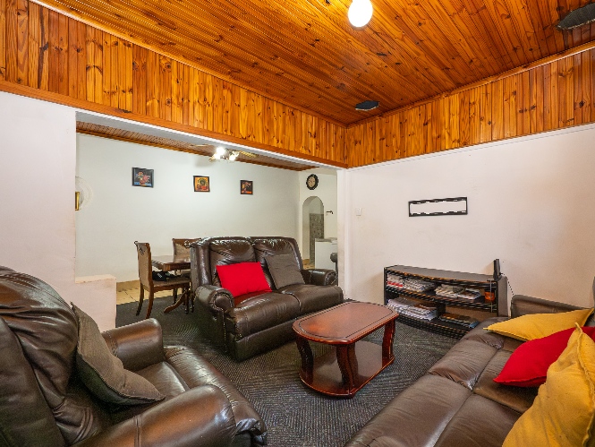 The backyard is pet-friendly, providing plenty of space for your furry friends to roam freely. Parking is secure and convenient, with space for 3 cars behind the gate.