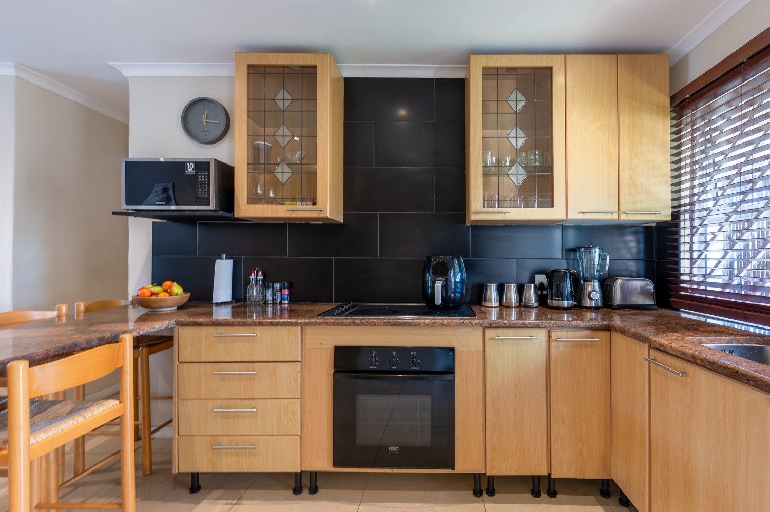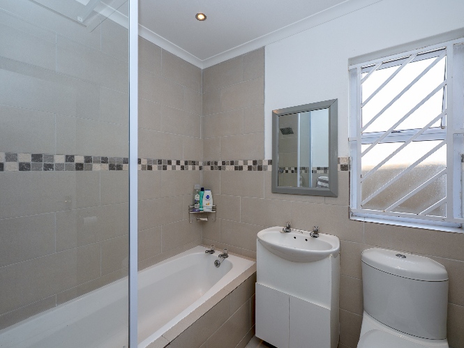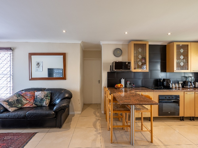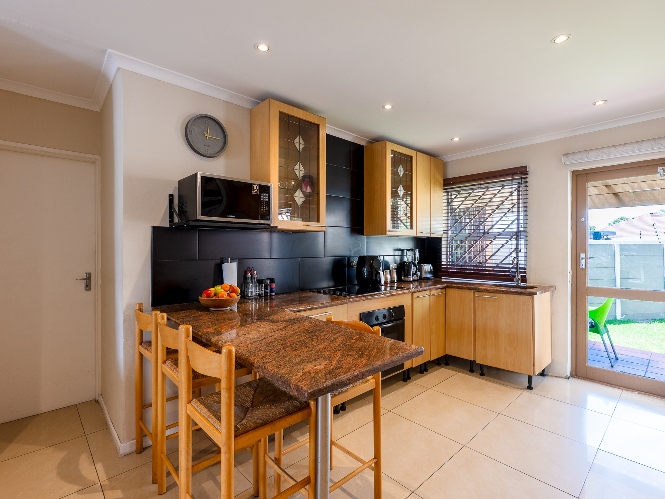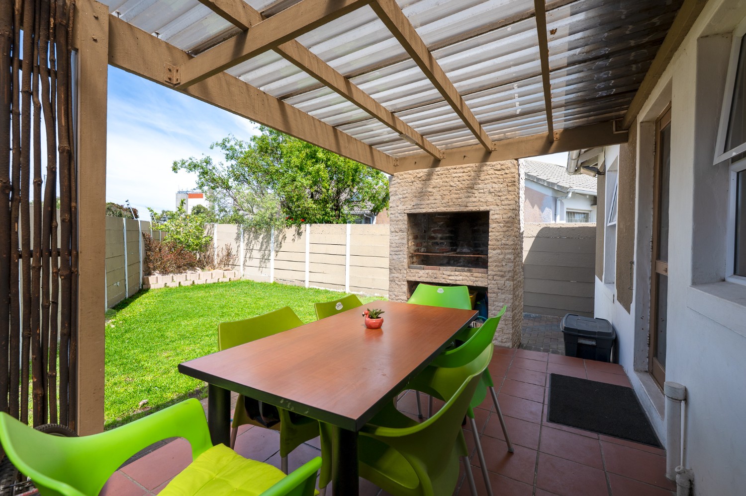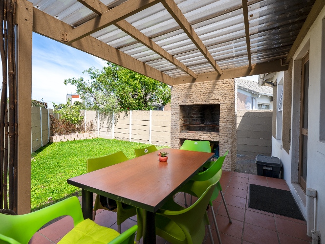 An undercover braai area creates a wonderful space for entertaining, leading out to a private garden, perfect for children to play and for enjoying outdoor relaxation. The complex also features a communal swimming pool, adding to the overall lifestyle appeal.