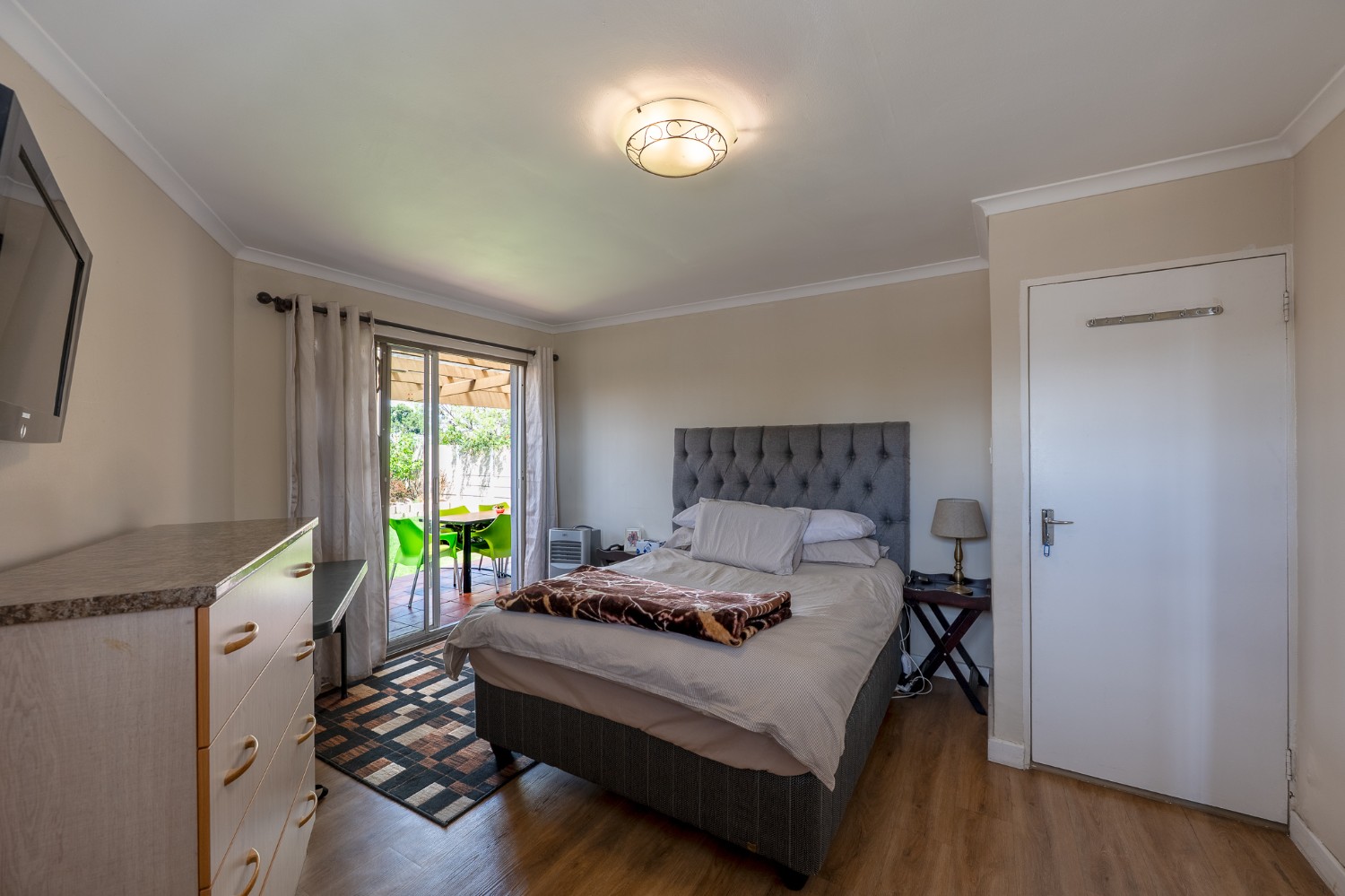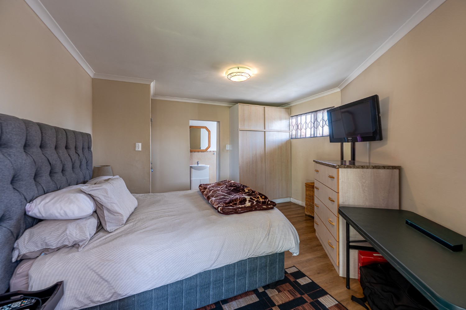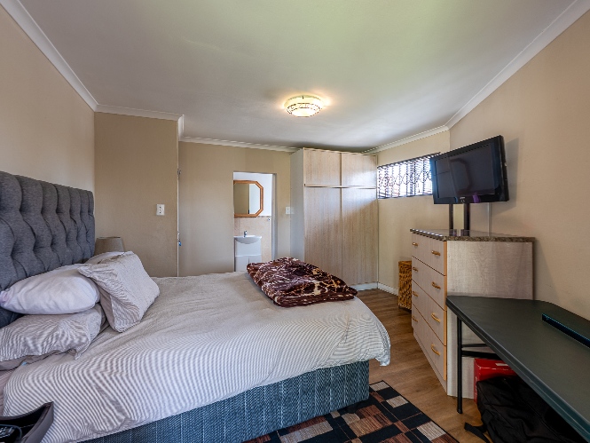 An undercover braai area creates a wonderful space for entertaining, leading out to a private garden, perfect for children to play and for enjoying outdoor relaxation. The complex also features a communal swimming pool, adding to the overall lifestyle appeal.