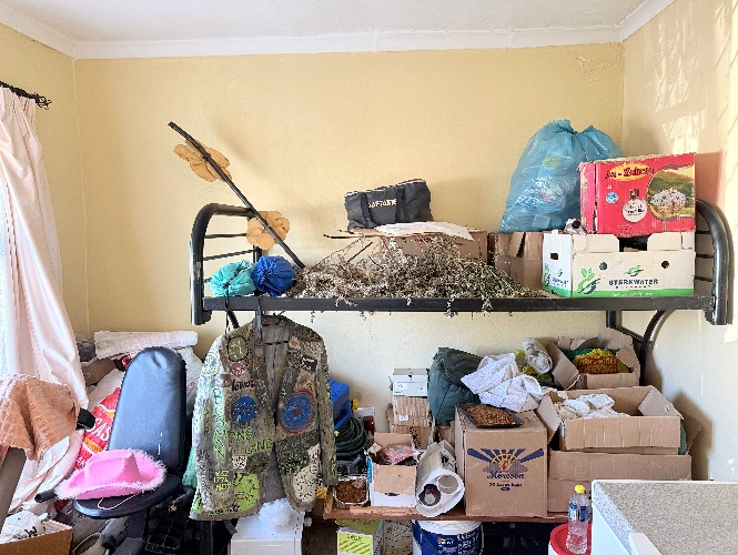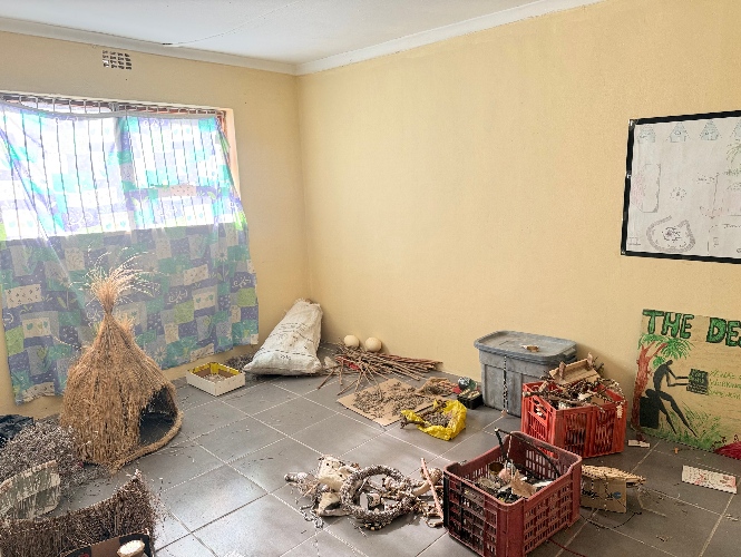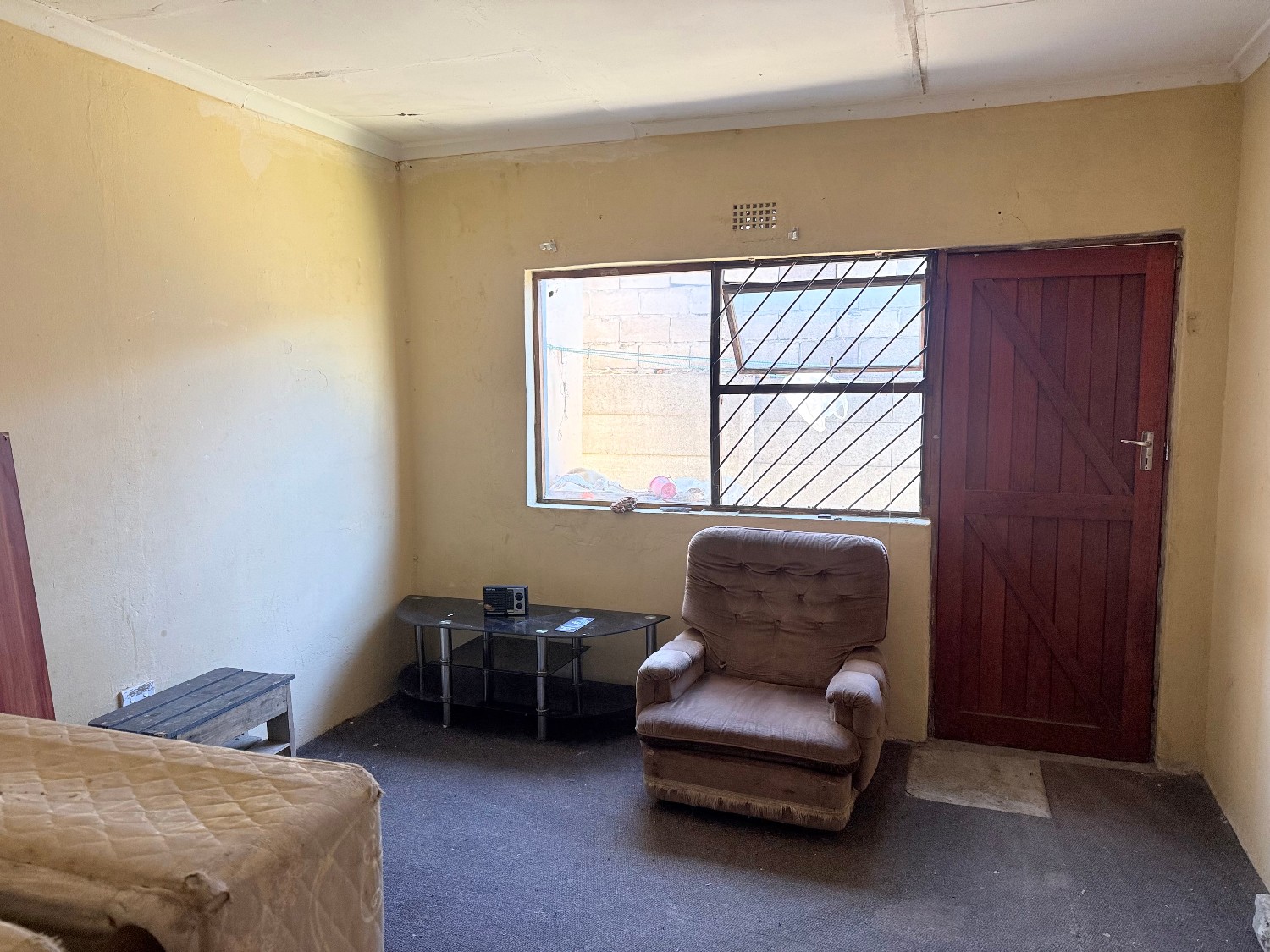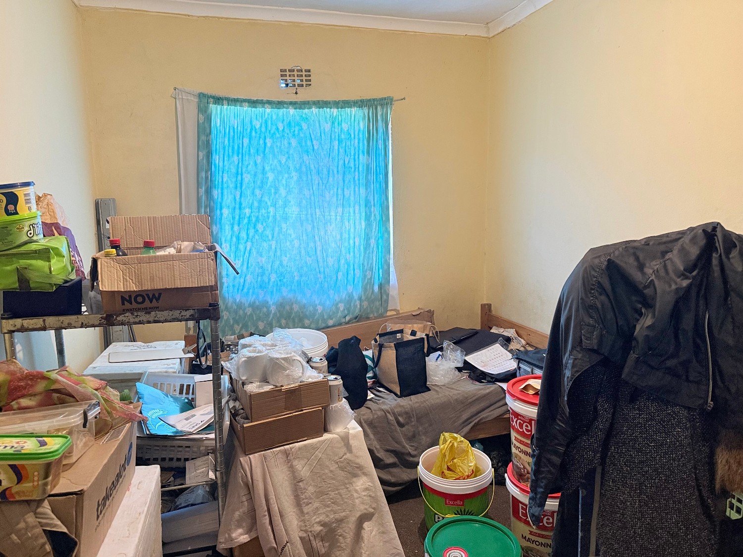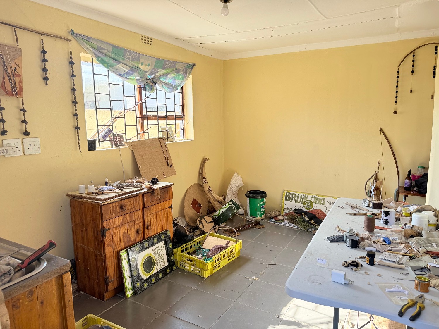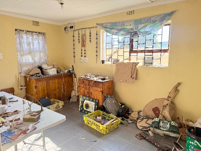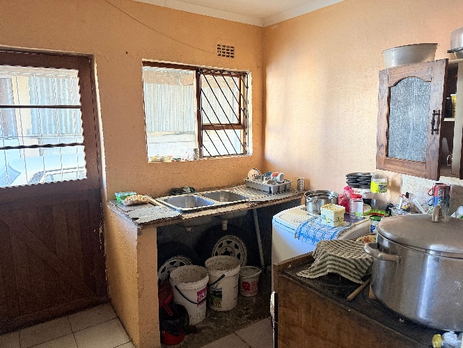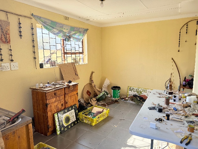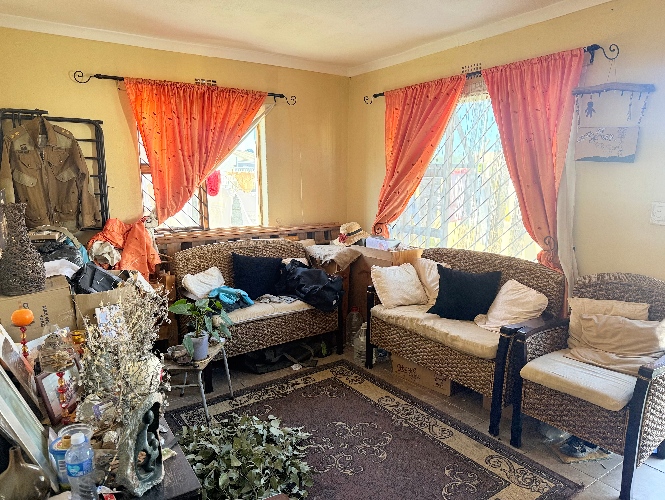 The main home features a well-sized lounge area, complete with tiled flooring and large windows for plenty of natural sunlight. The kitchen offers ample space for potential built-in cupboards and room for renovations. There are three well-sized bedrooms and a family bathroom equipped with a corner bathtub, a basin, and a toilet.