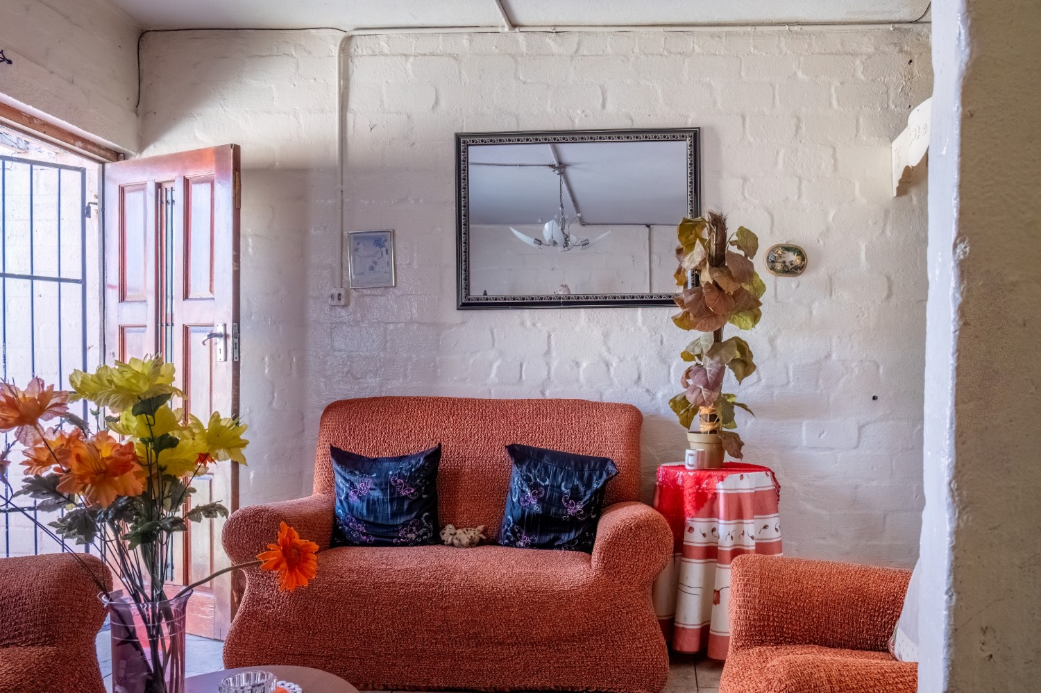 Upon entering, you are welcomed by a bright lounge featuring tiled flooring and large windows that fill the space with natural light. The kitchen is neatly tiled and provides room for potential built-in cupboards.