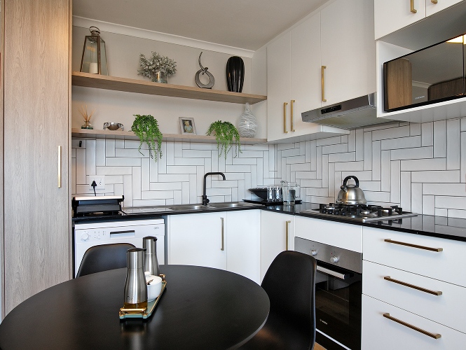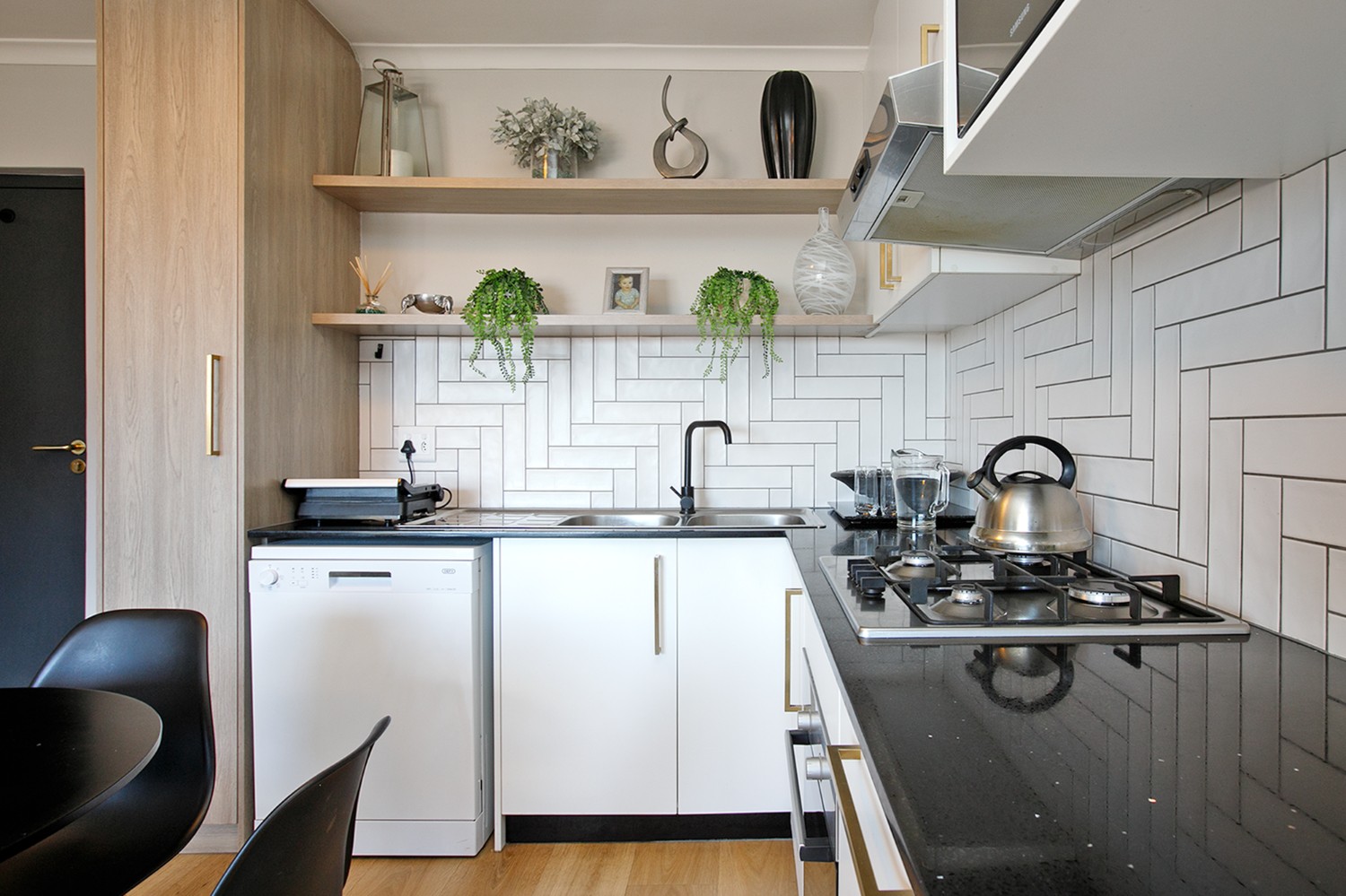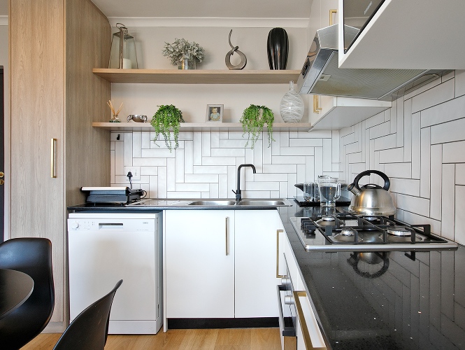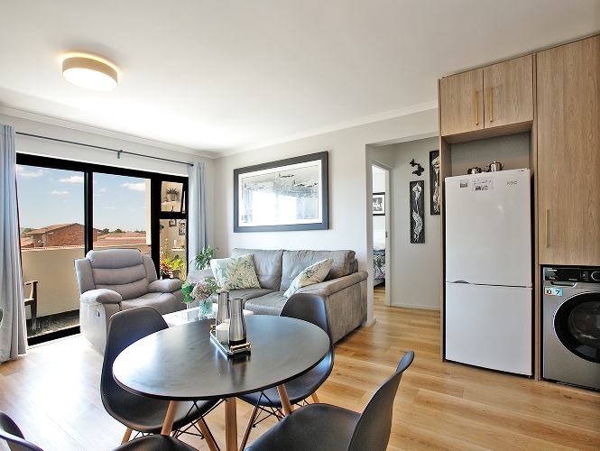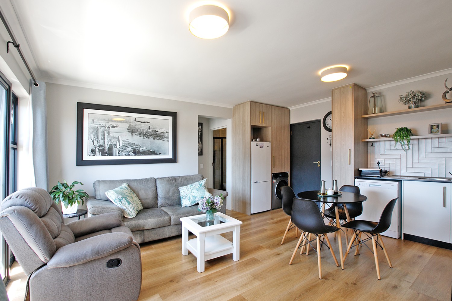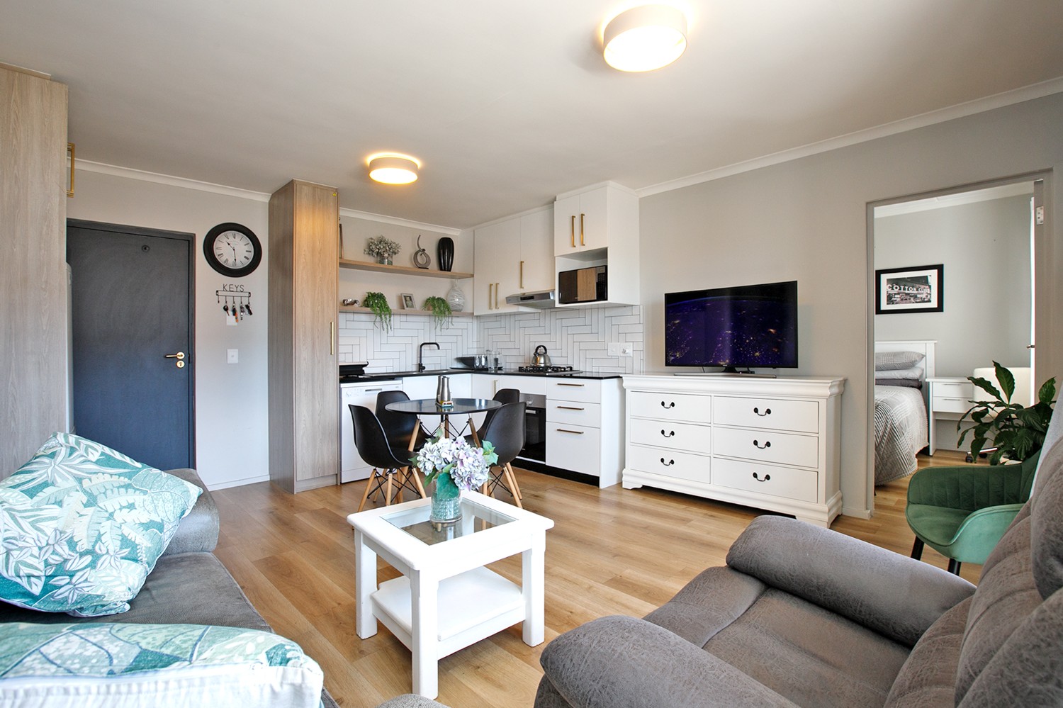 Open-plan living area seamlessly connected to a stunning kitchen and balcony. Gas stove, modern cabinetry, and quality finishes.