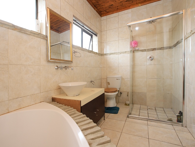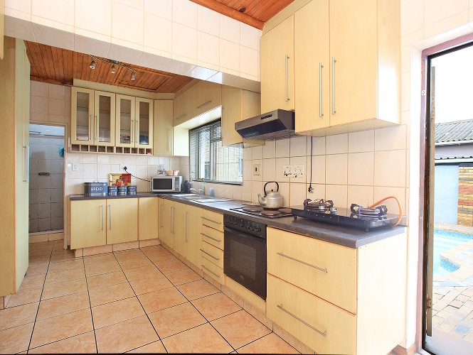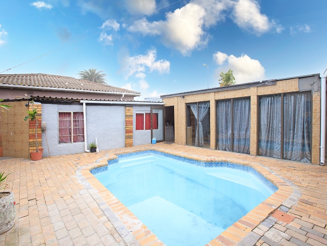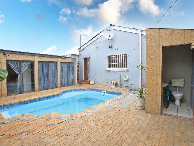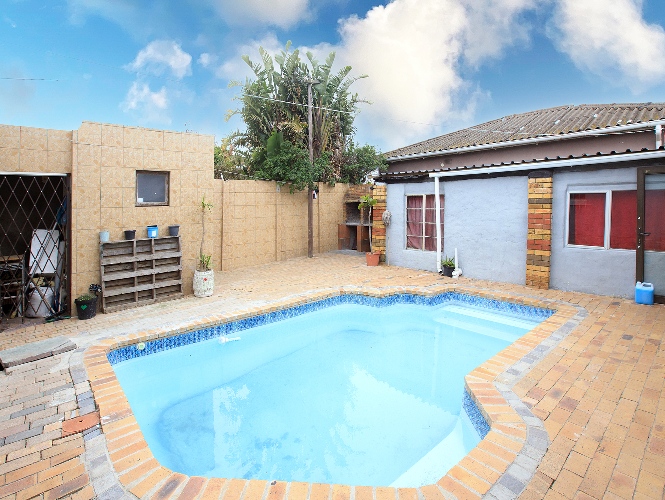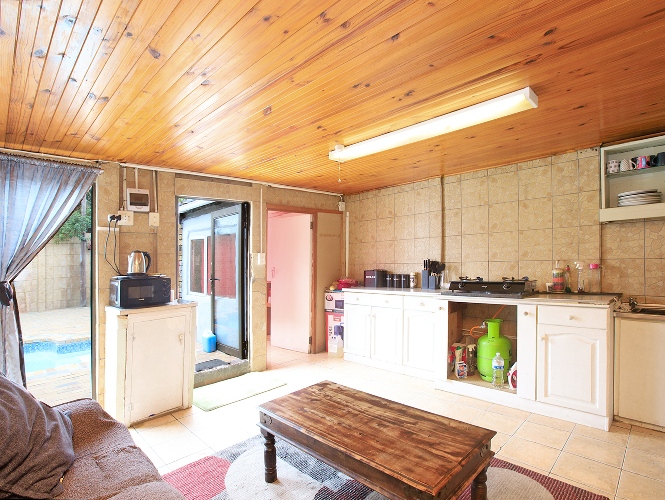 The outdoor space is well-equipped for entertaining with a swimming pool, braai area, and outside toilet, making it perfect for gatherings and relaxed living.
