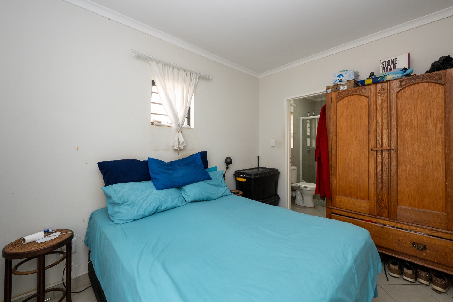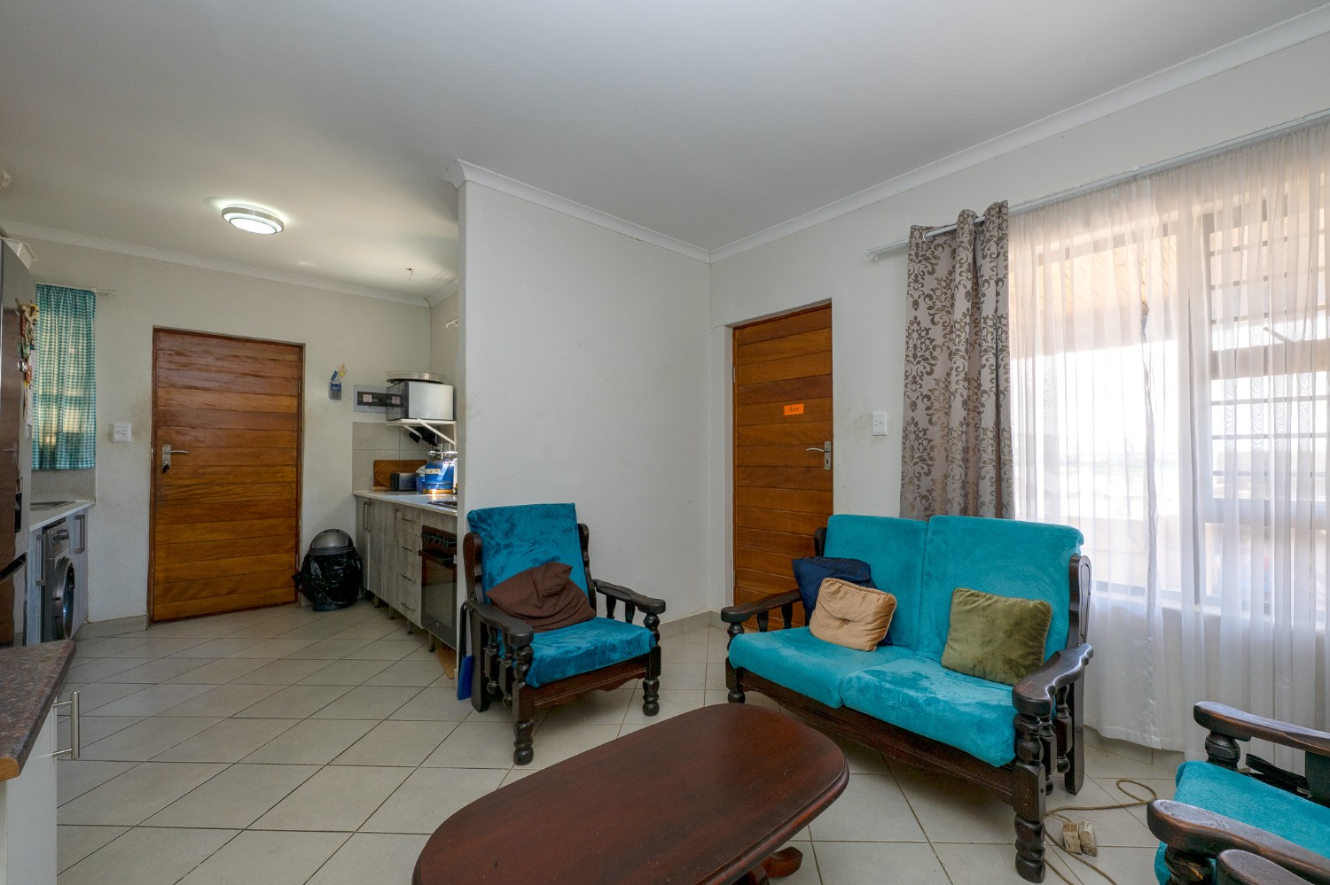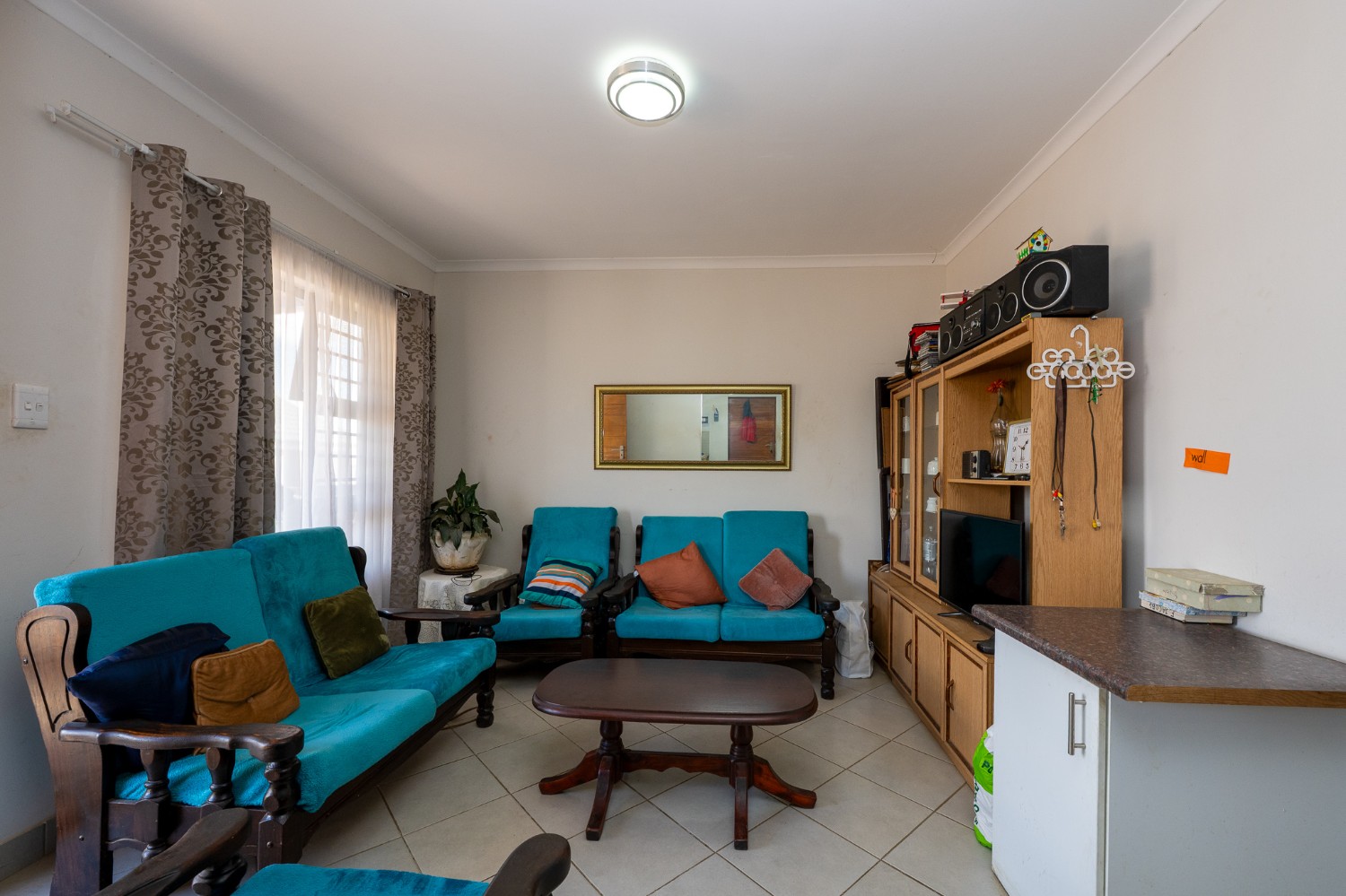 The front door opens into a fully tiled lounge area, creating a warm and welcoming atmosphere. From here, you move into the modern kitchen, which features lovely countertops, a 4-plate electric stove and oven, a single sink, built-in cupboards, and a plumbing point with space for a washing machine. A back door leads conveniently into the driveway, enhancing both practicality and security.