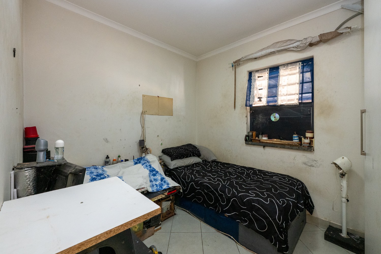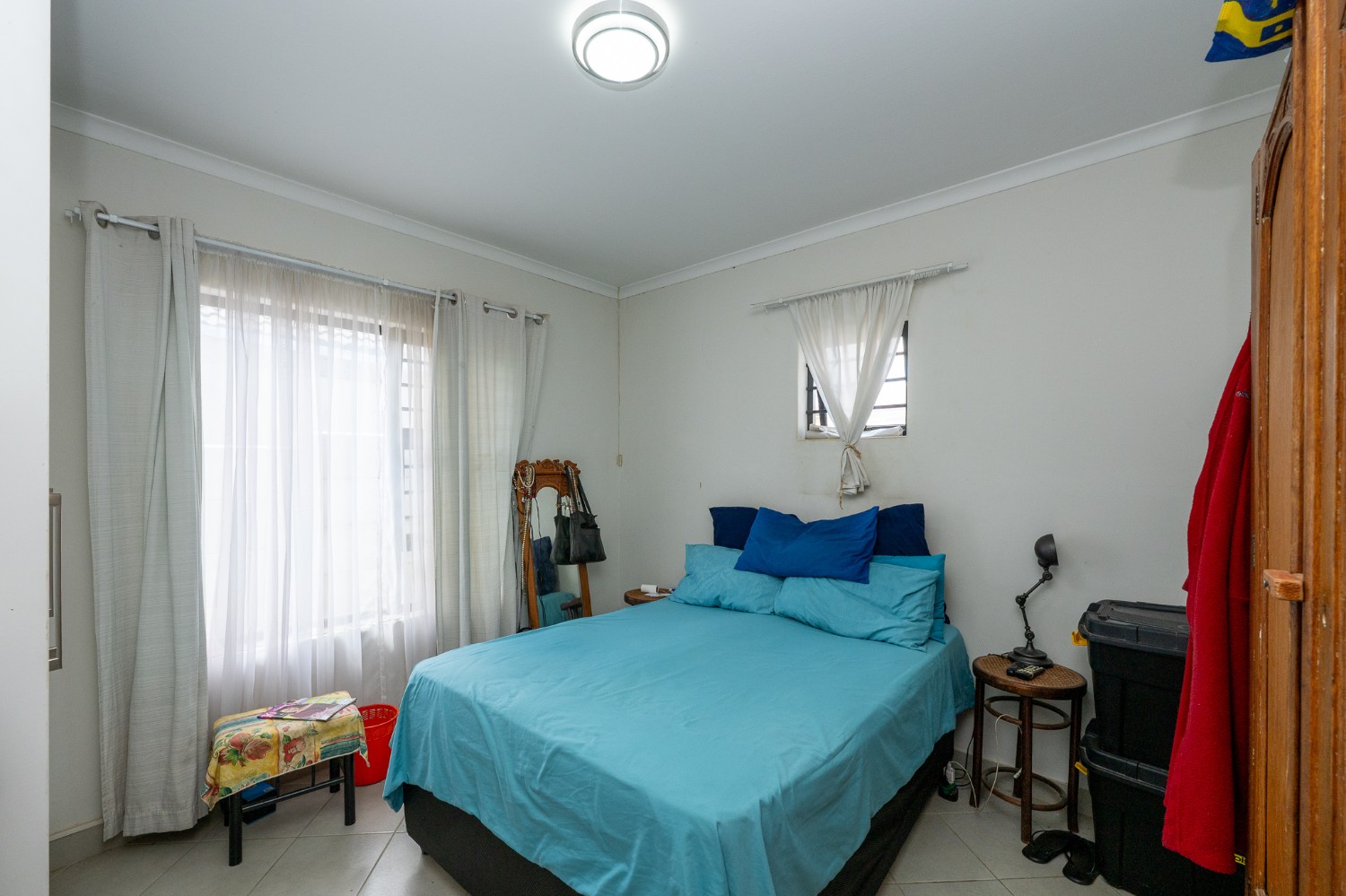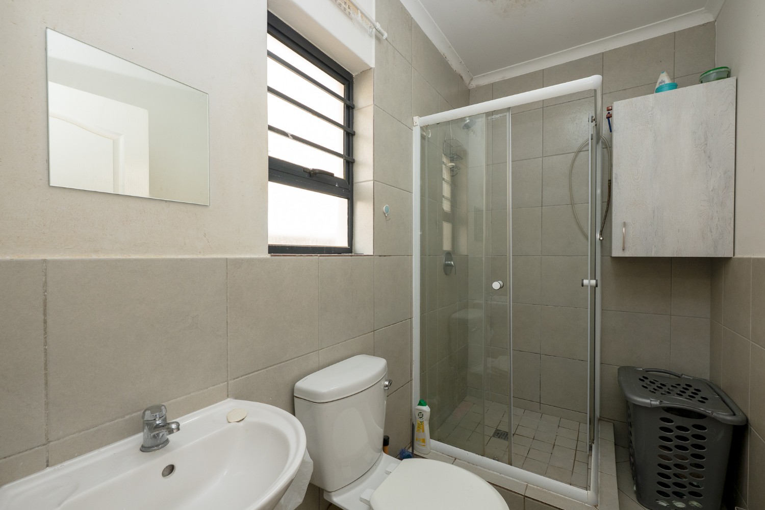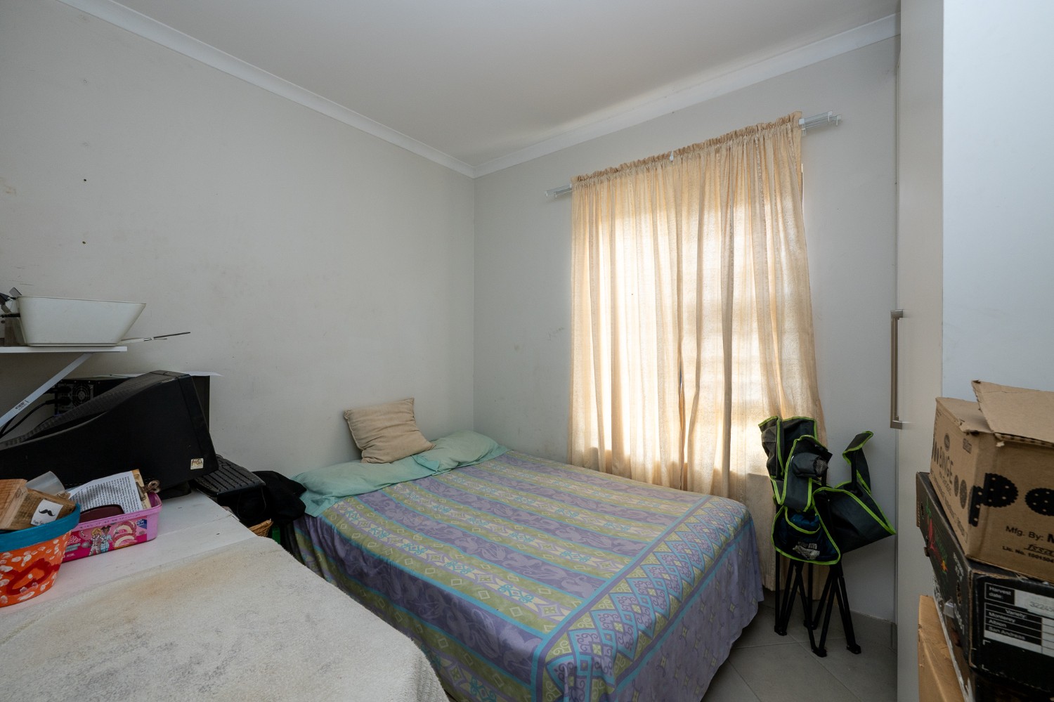 The front door opens into a fully tiled lounge area, creating a warm and welcoming atmosphere. From here, you move into the modern kitchen, which features lovely countertops, a 4-plate electric stove and oven, a single sink, built-in cupboards, and a plumbing point with space for a washing machine. A back door leads conveniently into the driveway, enhancing both practicality and security.