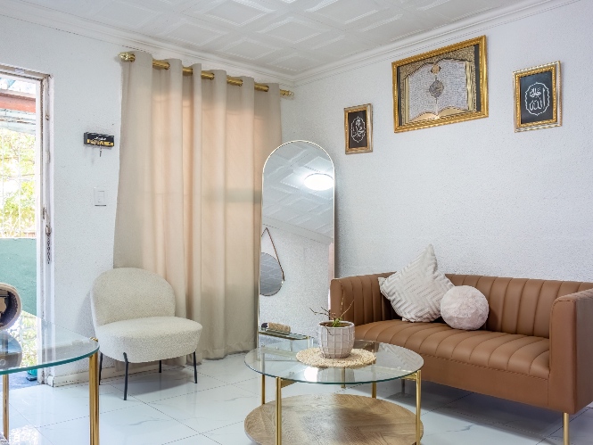 The home offers 2 bedrooms, with the main bedroom boasting a walk-through closet. All bedrooms share a neat family bathroom.