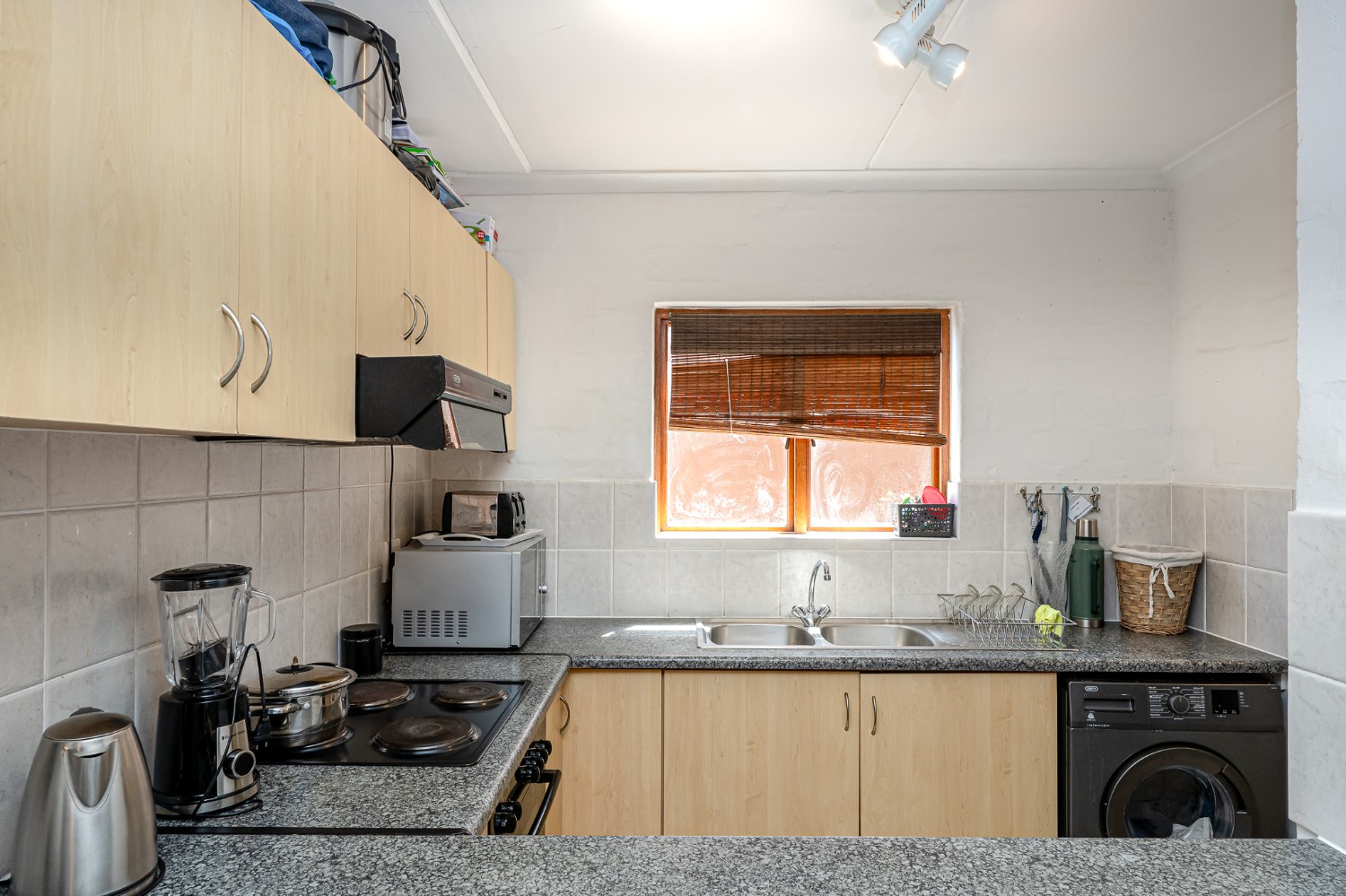A kitchen fitted with a built-in stove and one plumbing point