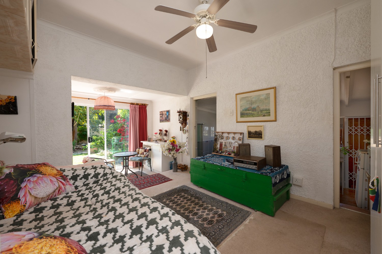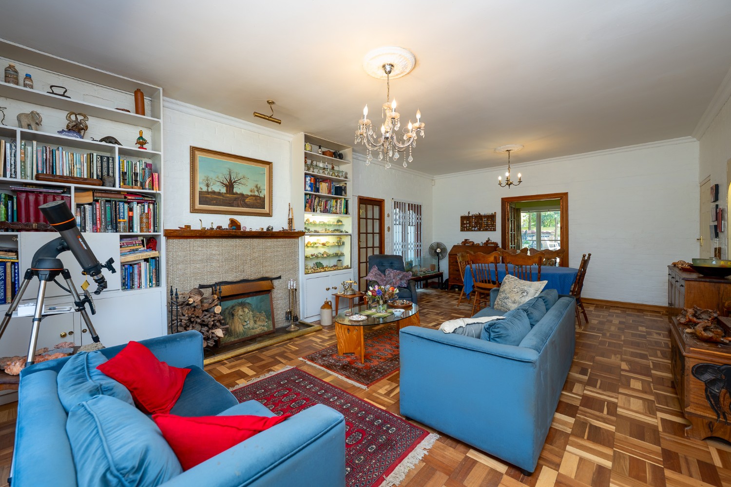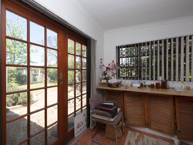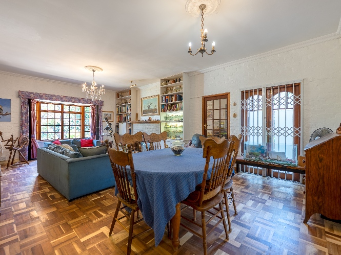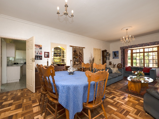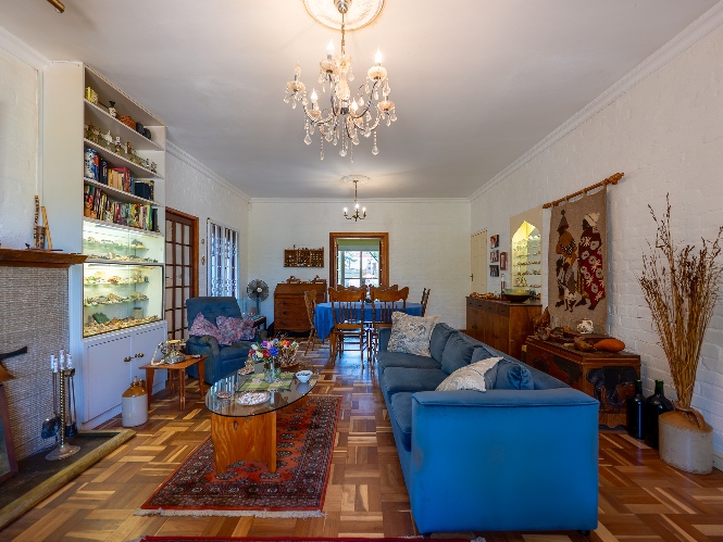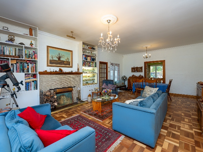 Step inside and you’ll immediately feel the solid craftsmanship of a bygone era — from the blackwood parquet flooring (valued at R2 000 per sqm) to the Burmese teak doors leading off the dinning area, salvaged from an old Standard Bank building in Cape Town. The solid brass Spanish light fitting in the lounge and the copper and wood mantel fireplace add to the authentic vintage feel that makes this home truly special.