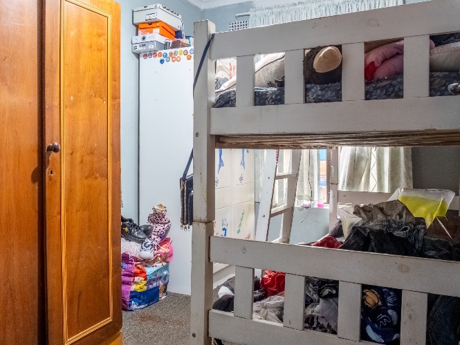 There are two well-sized bedrooms and a family bathroom with a bathtub, basin, and toilet.