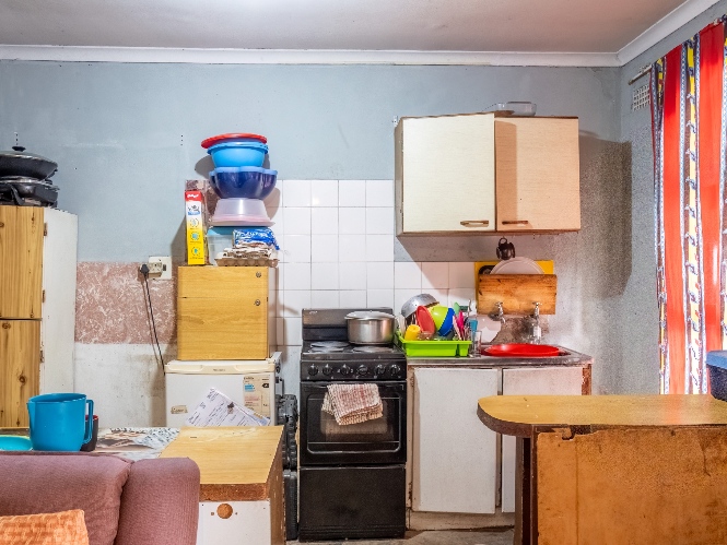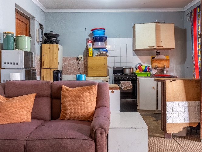 The home features a welcoming lounge that provides a comfortable space for relaxation and everyday living. The kitchen is neat and functional with ample room for potential built-in cupboards.