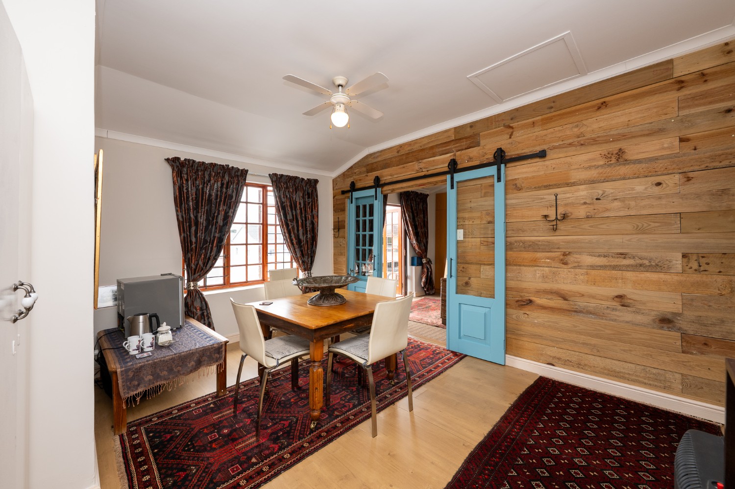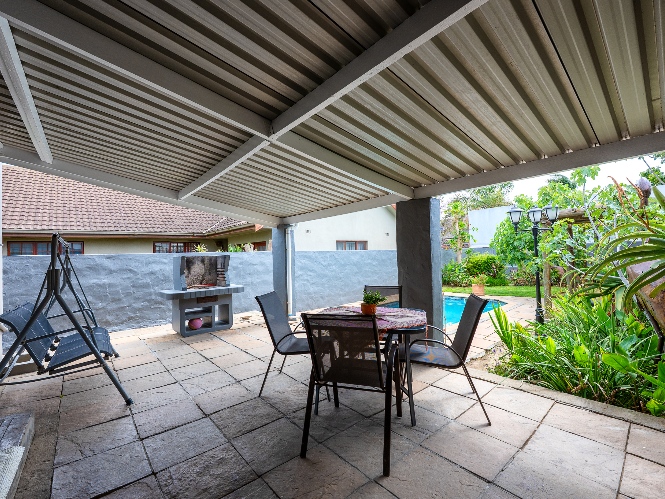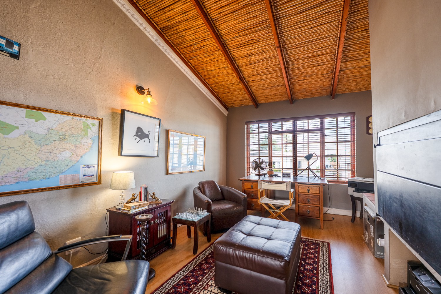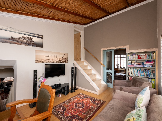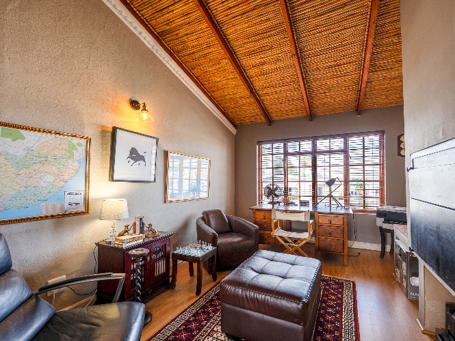An upstairs indoor braai/library room and a large patio, a perfect canvas to create a lush entertainment area filled with plants and charm.