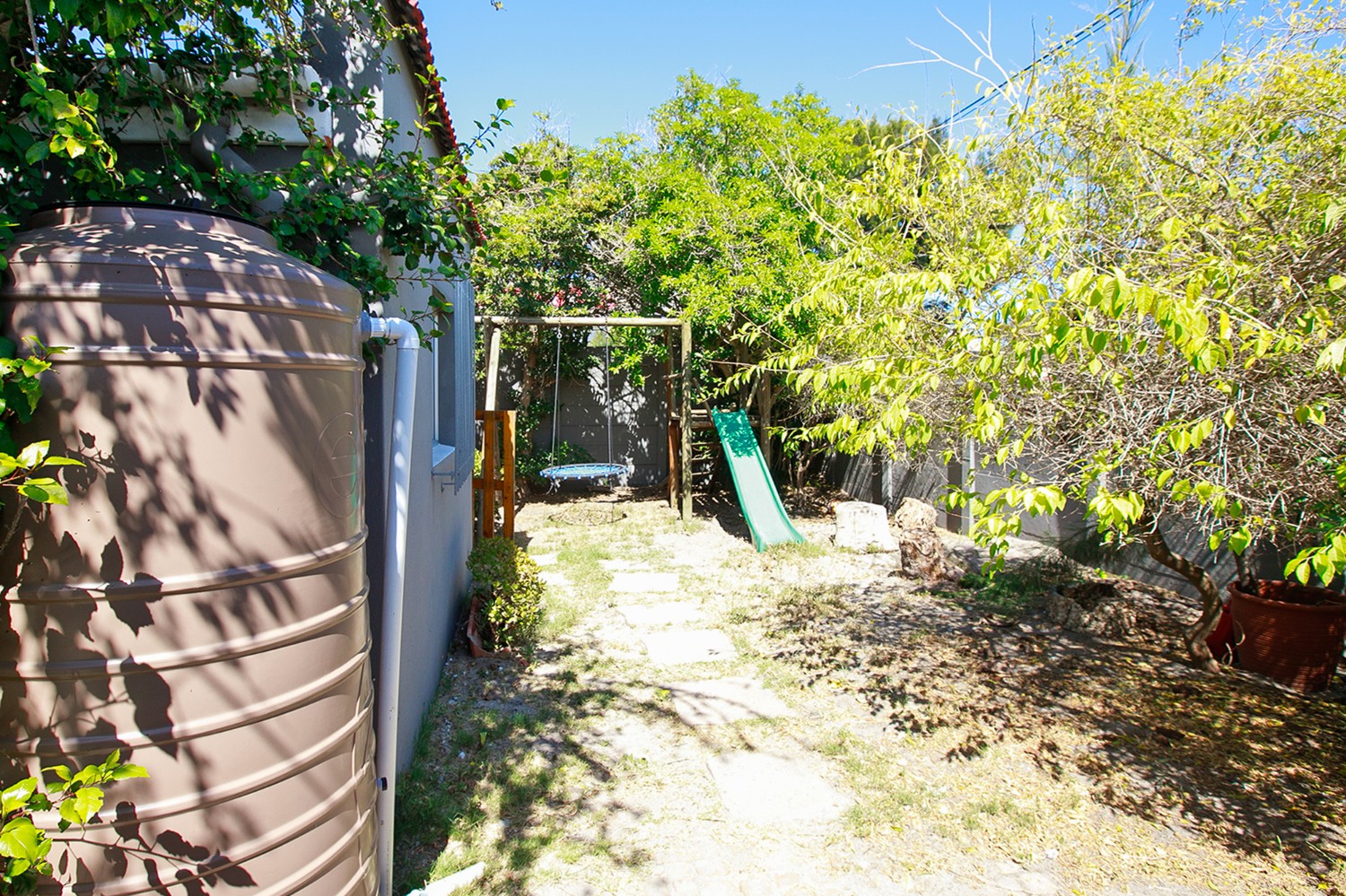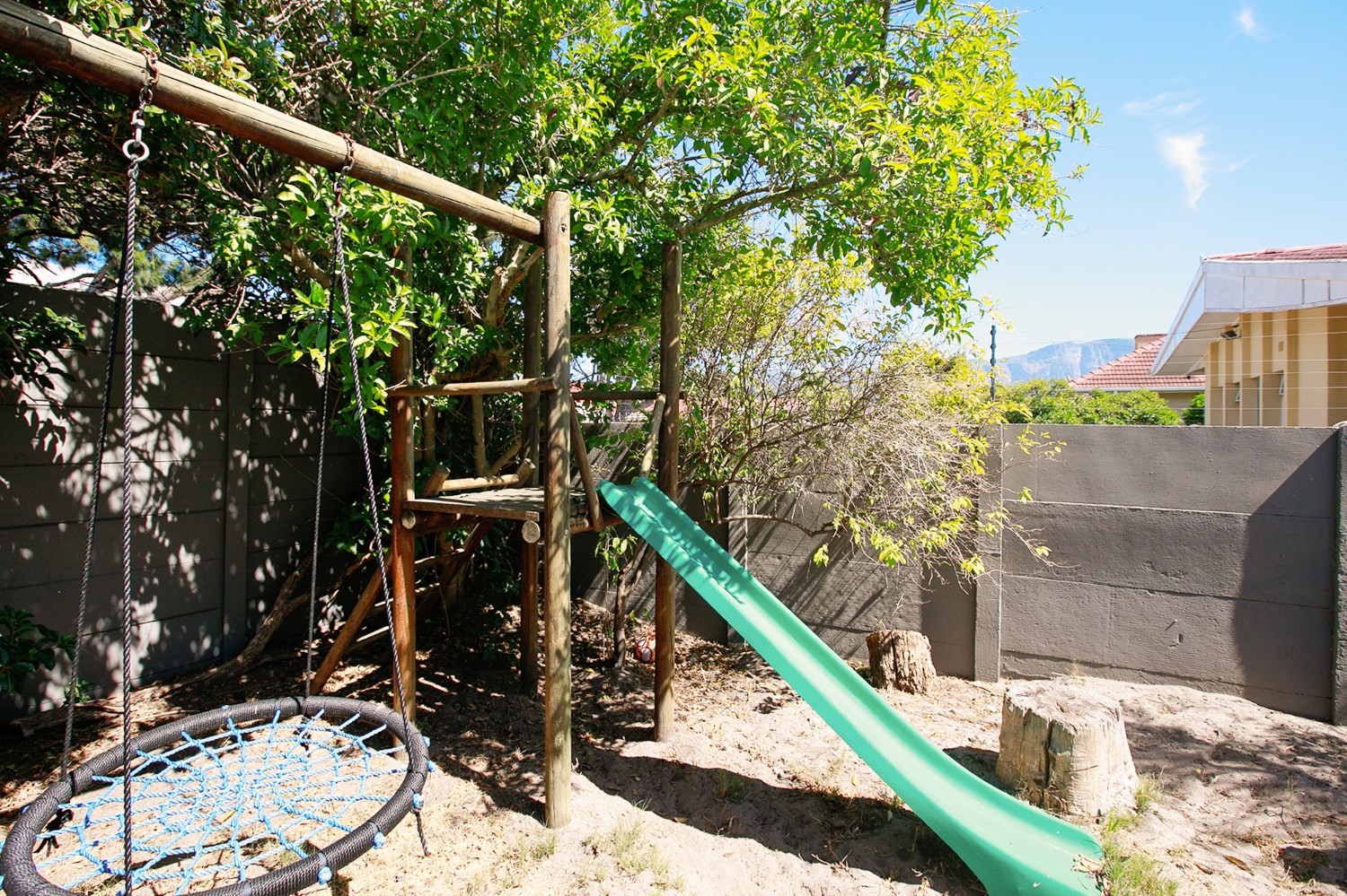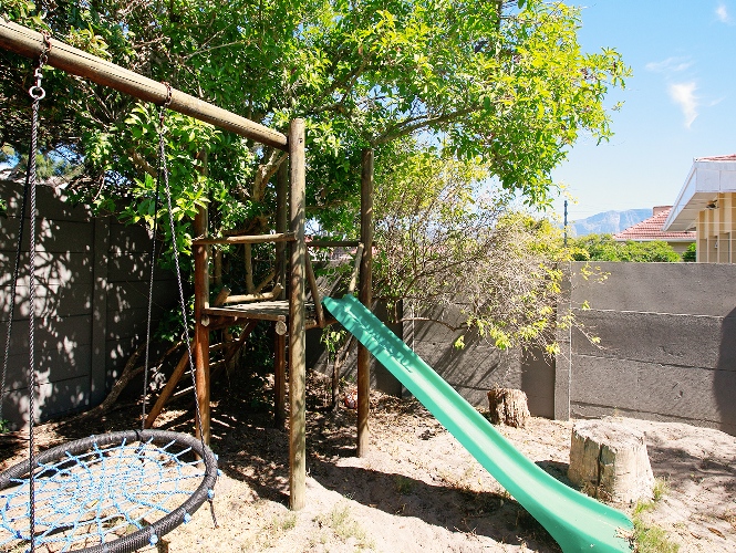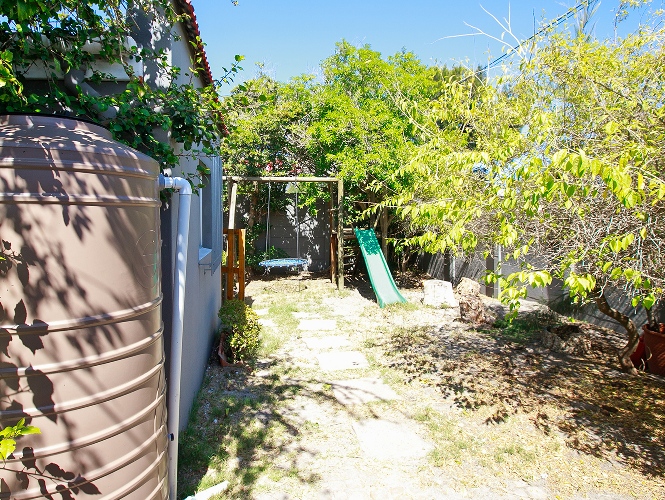 The garden has a Jungle gym, two water tanks and Wendy house and a built-in braai.