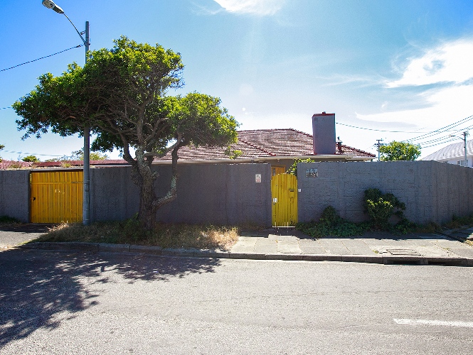Located on a corner plot with a double carport and driveway parking behind a gate.