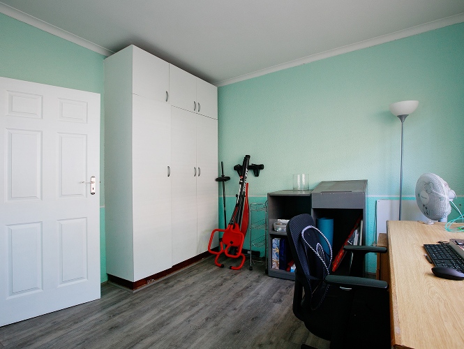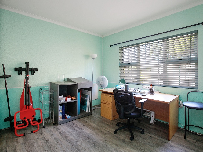 Aluminium and wood windows with blinds, post-paid electricity (CoCT) and fiber.