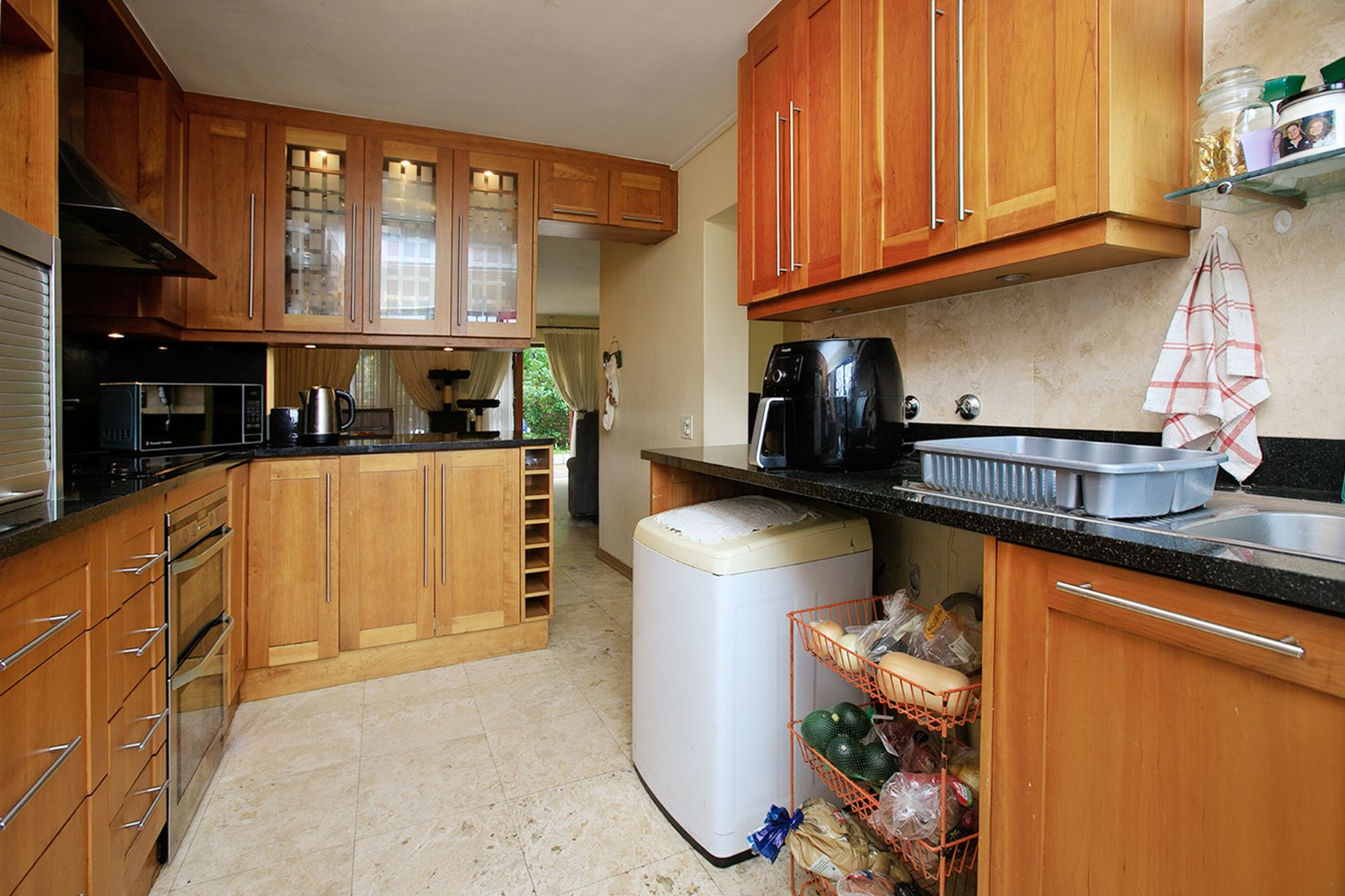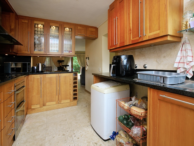 Excellent security with a CCTV camera, alarm, beams, wall spikes, burglar bars, and security gates with a reinforced garden gate.