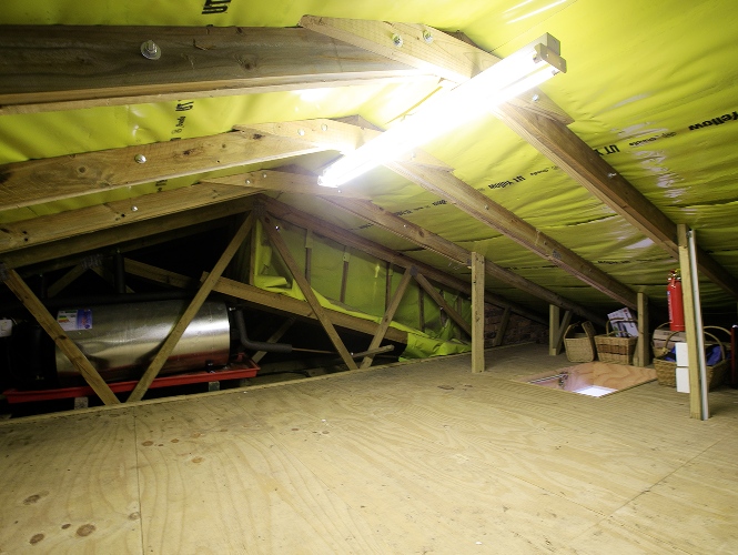 Storeroom under the stairs and large storage in the roof with a drop-down loft ladder.