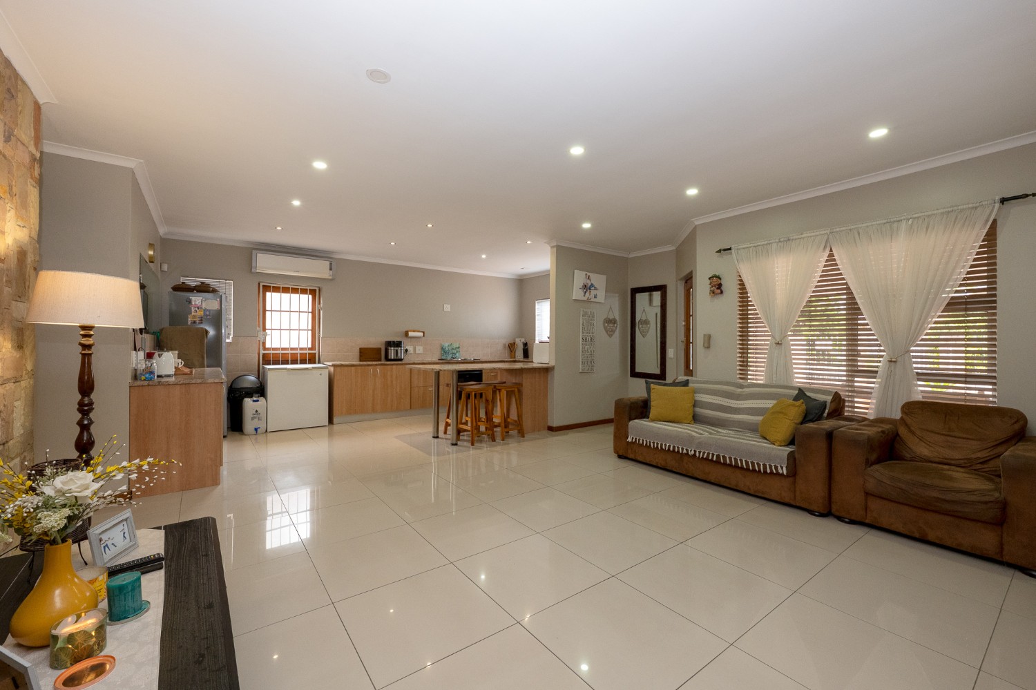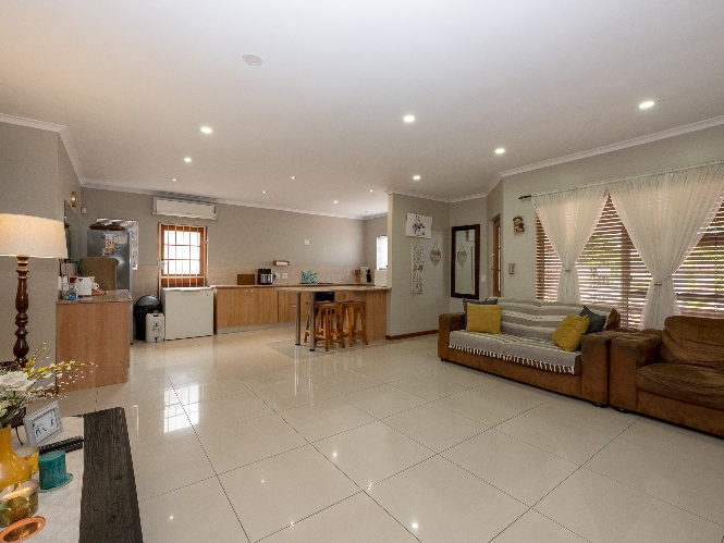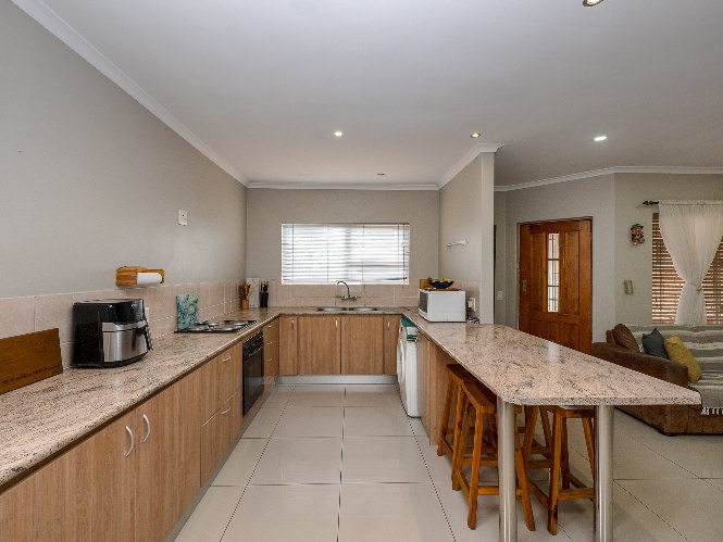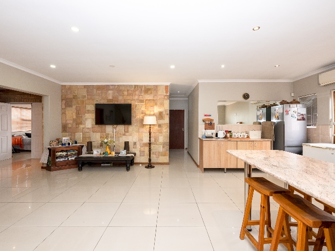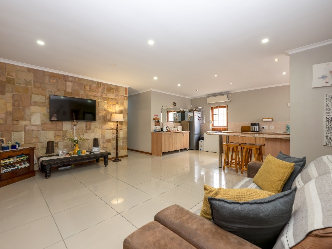 The entertainment room is perfect for hosting, with a built-in braai for year-round enjoyment. Additional features include a garage and a beautifully designed low-maintenance garden with a borehole, allowing you to enjoy outdoor living without the extra effort. A charming water feature in the front garden adds to the home's street appeal, creating a peaceful and inviting atmosphere.