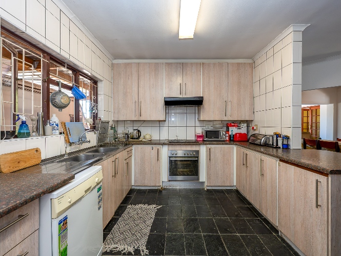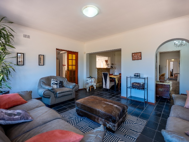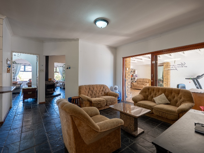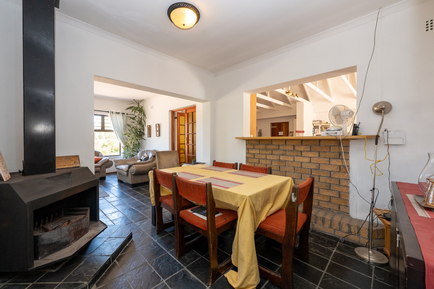 The living areas include a welcoming lounge, ideal for both relaxation and entertaining guests. Just off the lounge, you will find the dining room fitted with a cosy indoor fireplace. In addition, there is a separate TV room that flows to the expansive entertainment room. The home features a modern kitchen complete with a scullery, a fitted stove and oven, one plumbing point, and space for a fridge.