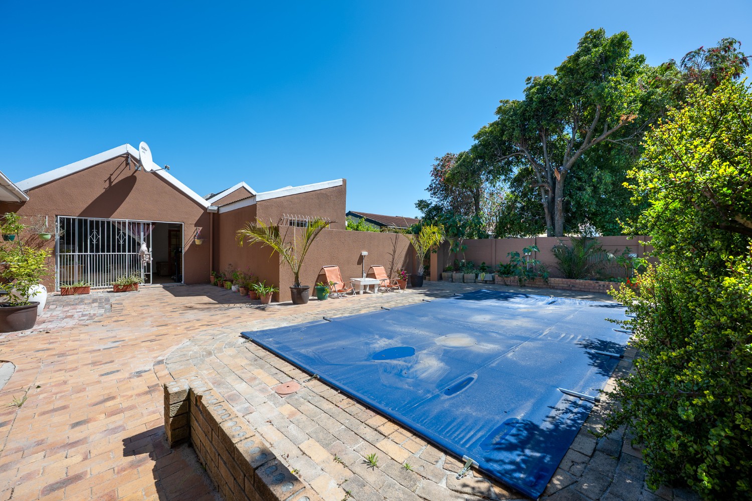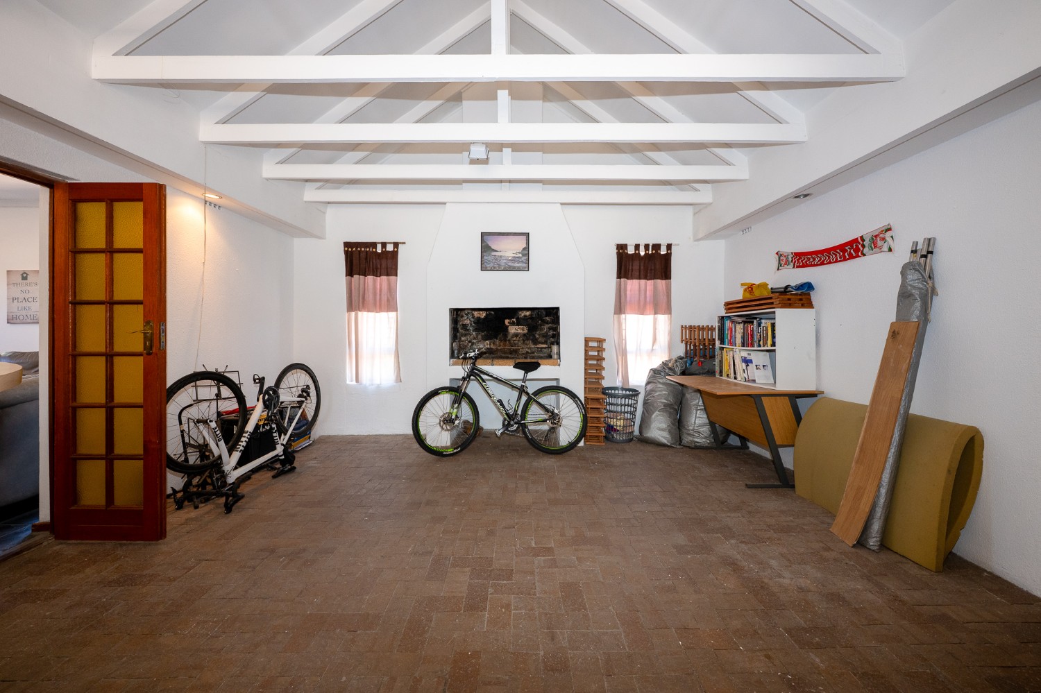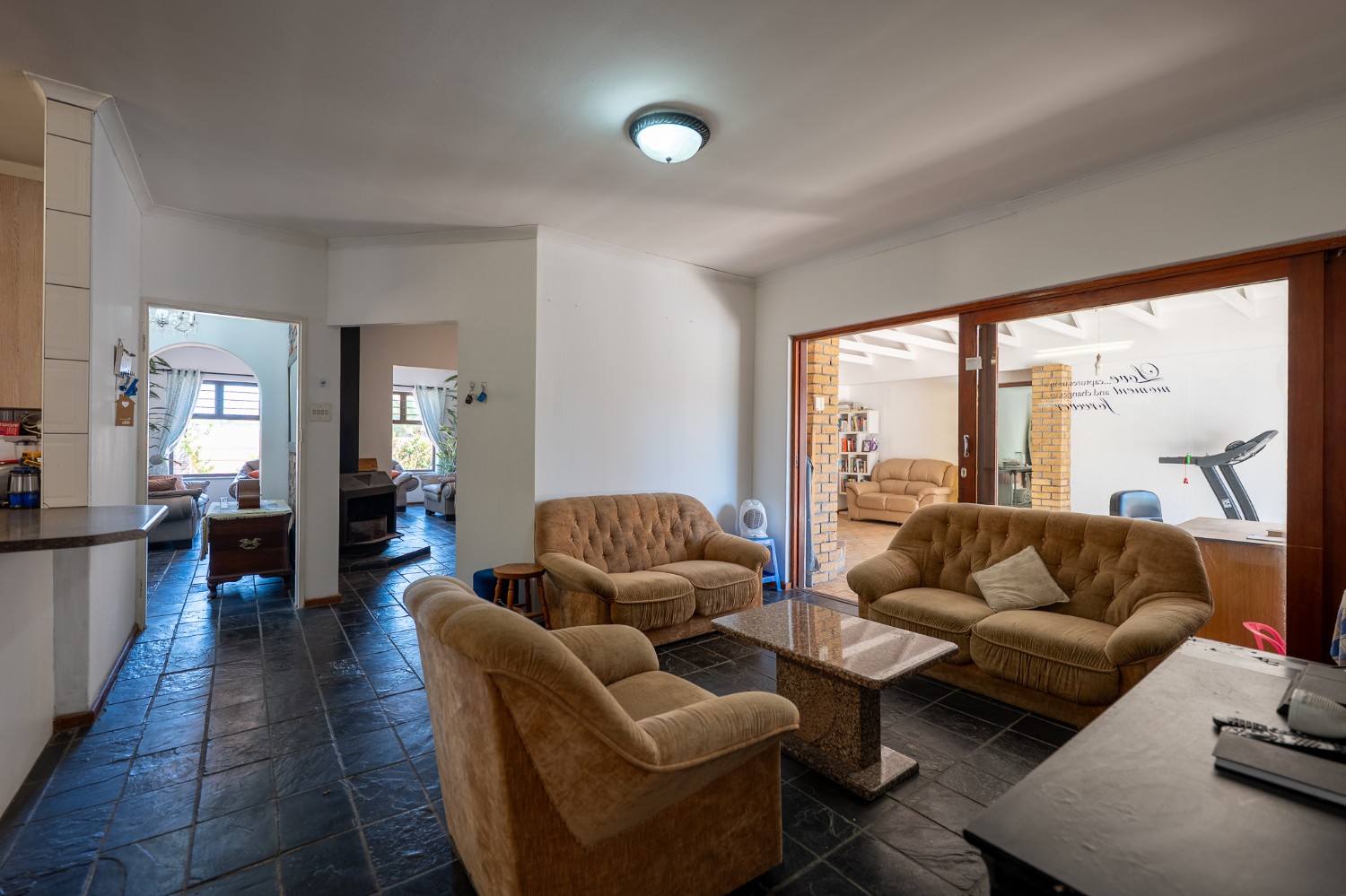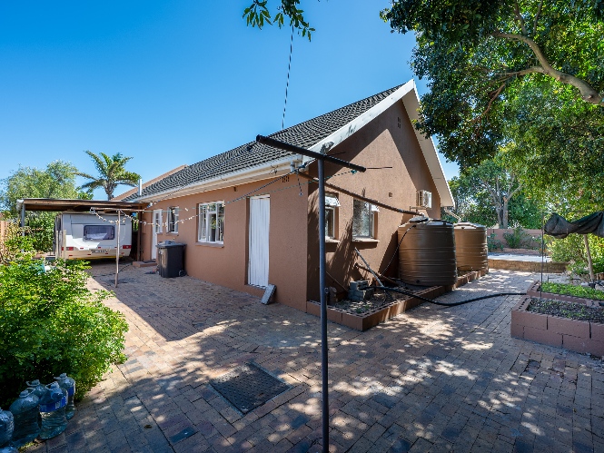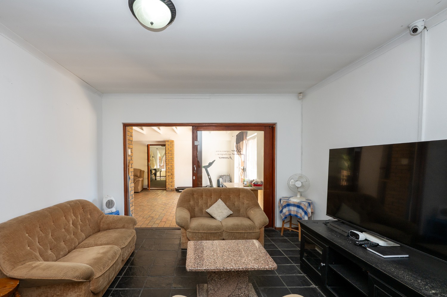 The entertainment area features beautiful, high-exposed-beam ceilings, a built-in braai and a built-in bar. Moving outside, there is a sparkling swimming pool and a beautifully maintained garden, creating the perfect setting for outdoor gatherings. Parking is never an issue with a double automated garage and ample space for additional vehicles behind a secure gate.