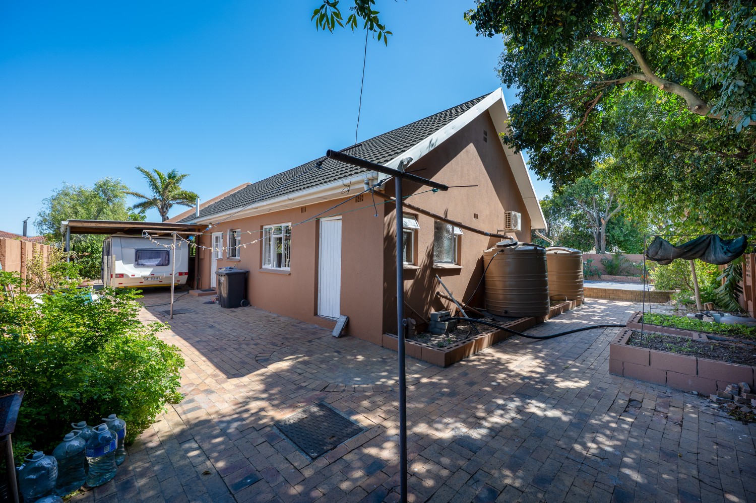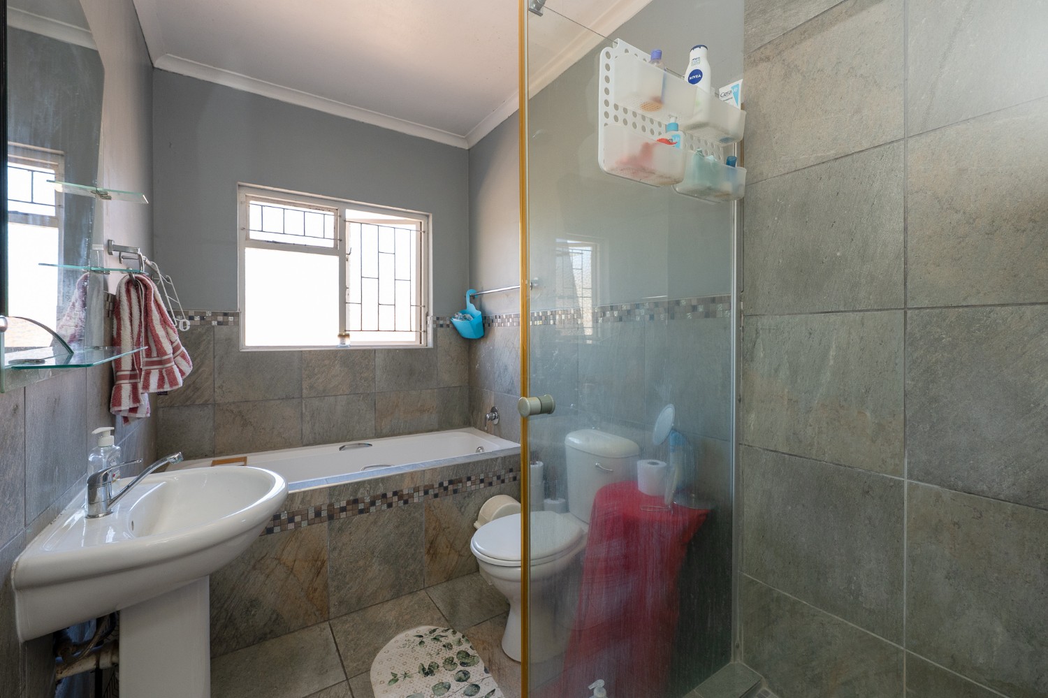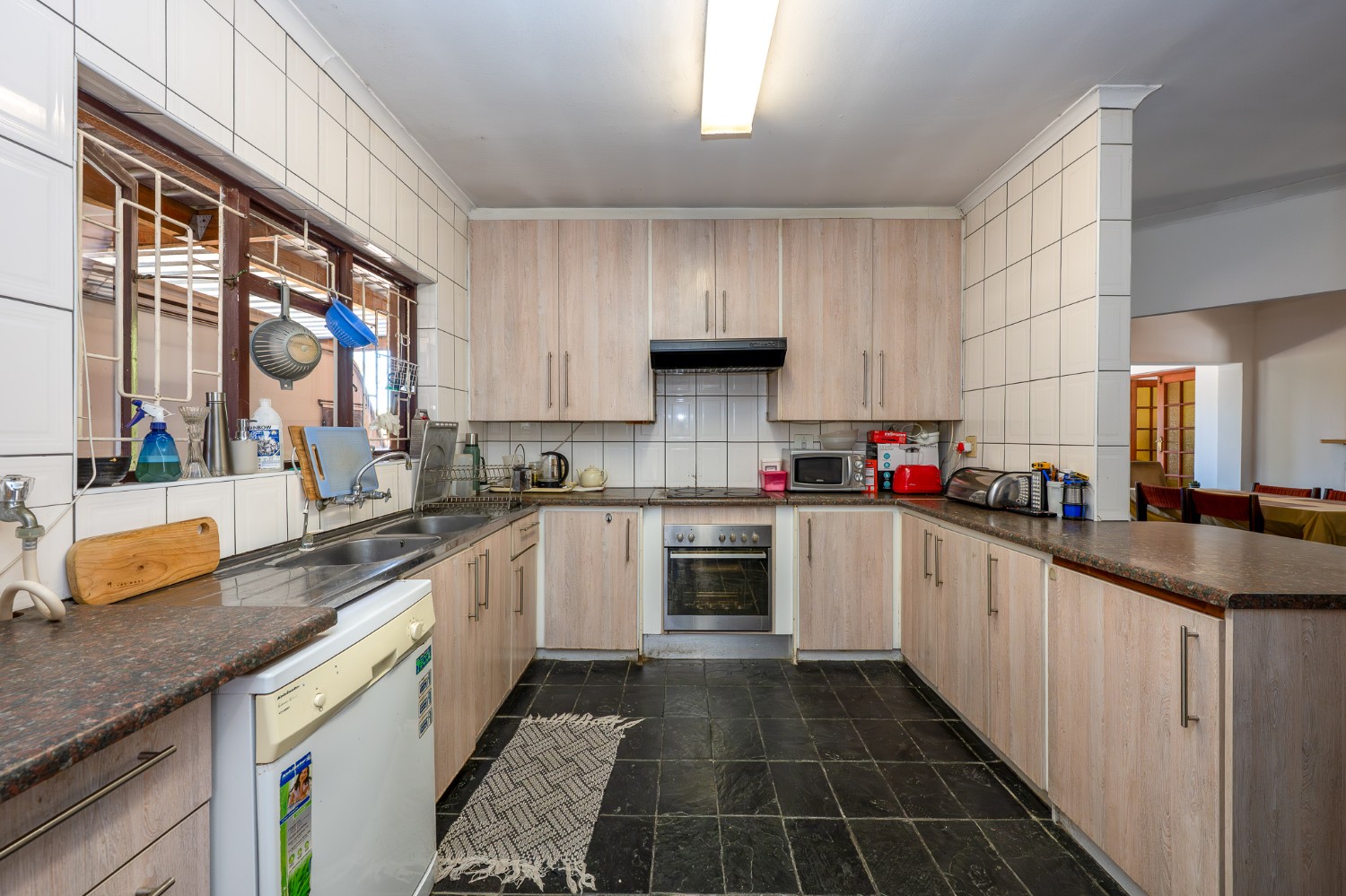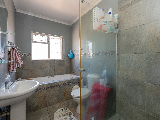 The entertainment area features beautiful, high-exposed-beam ceilings, a built-in braai and a built-in bar. Moving outside, there is a sparkling swimming pool and a beautifully maintained garden, creating the perfect setting for outdoor gatherings. Parking is never an issue with a double automated garage and ample space for additional vehicles behind a secure gate.