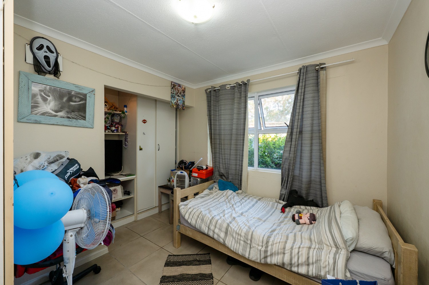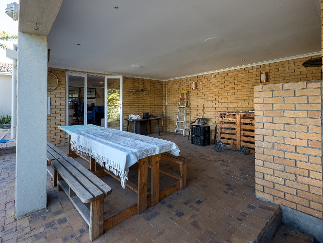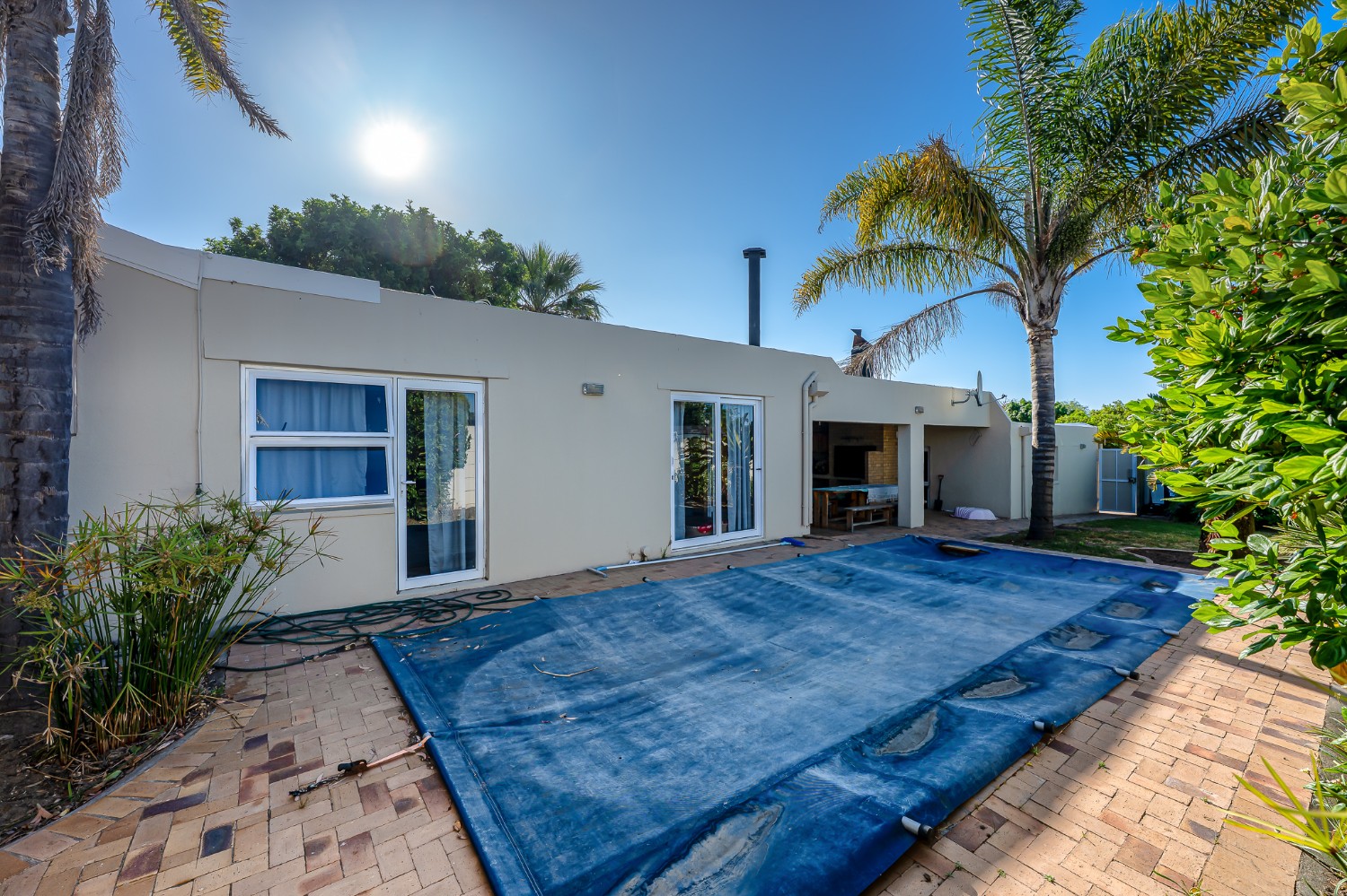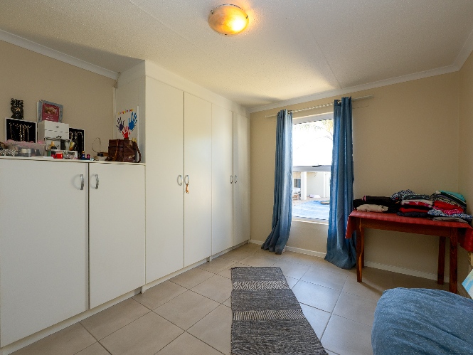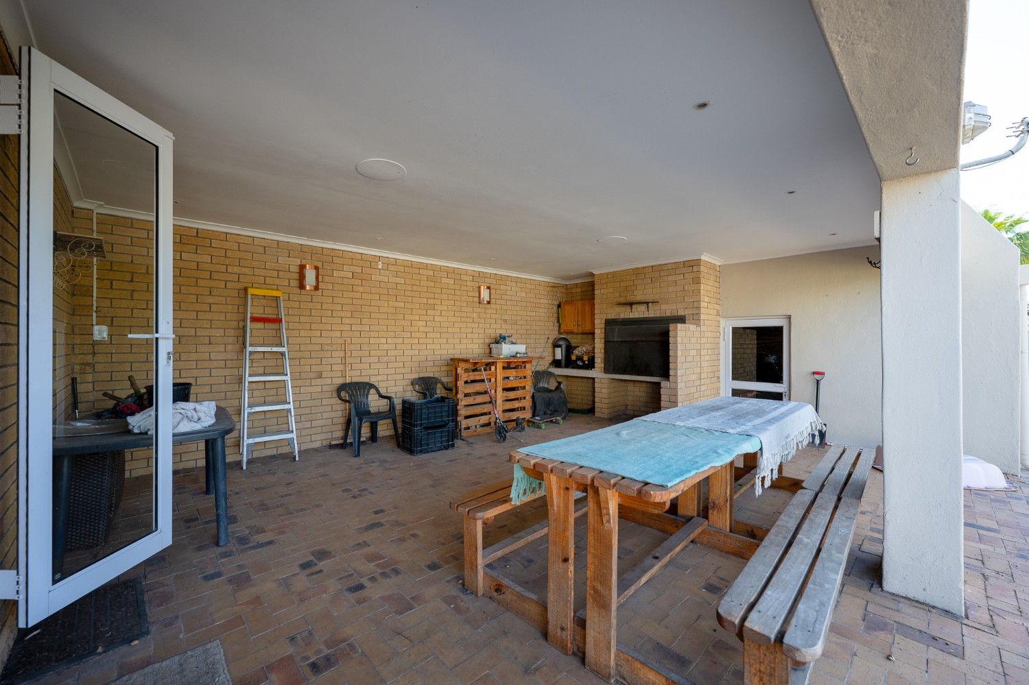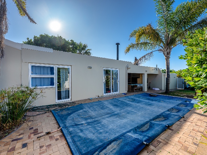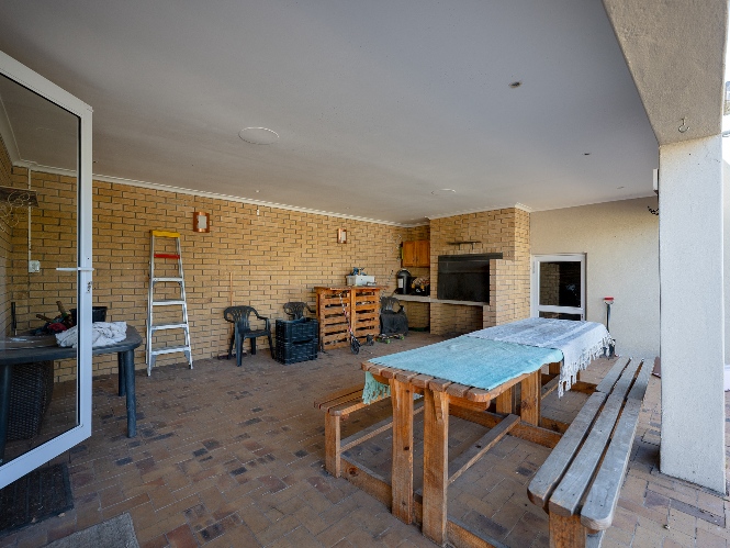 Outdoor living is a highlight of this property, with a large patio fitted with a built-in braai. The well-sized garden features a sparkling swimming pool, an ideal setting for relaxation and outdoor enjoyment. The property also includes a double garage, ensuring secure parking and additional storage space.