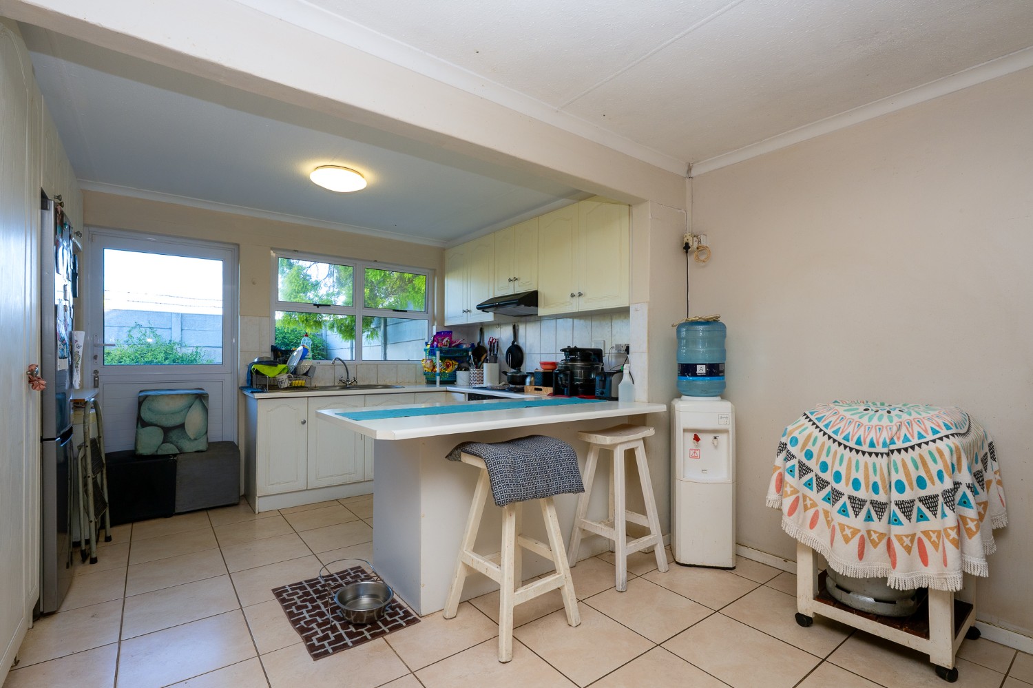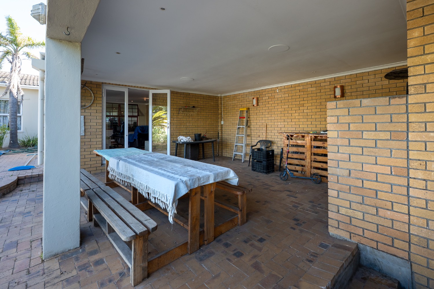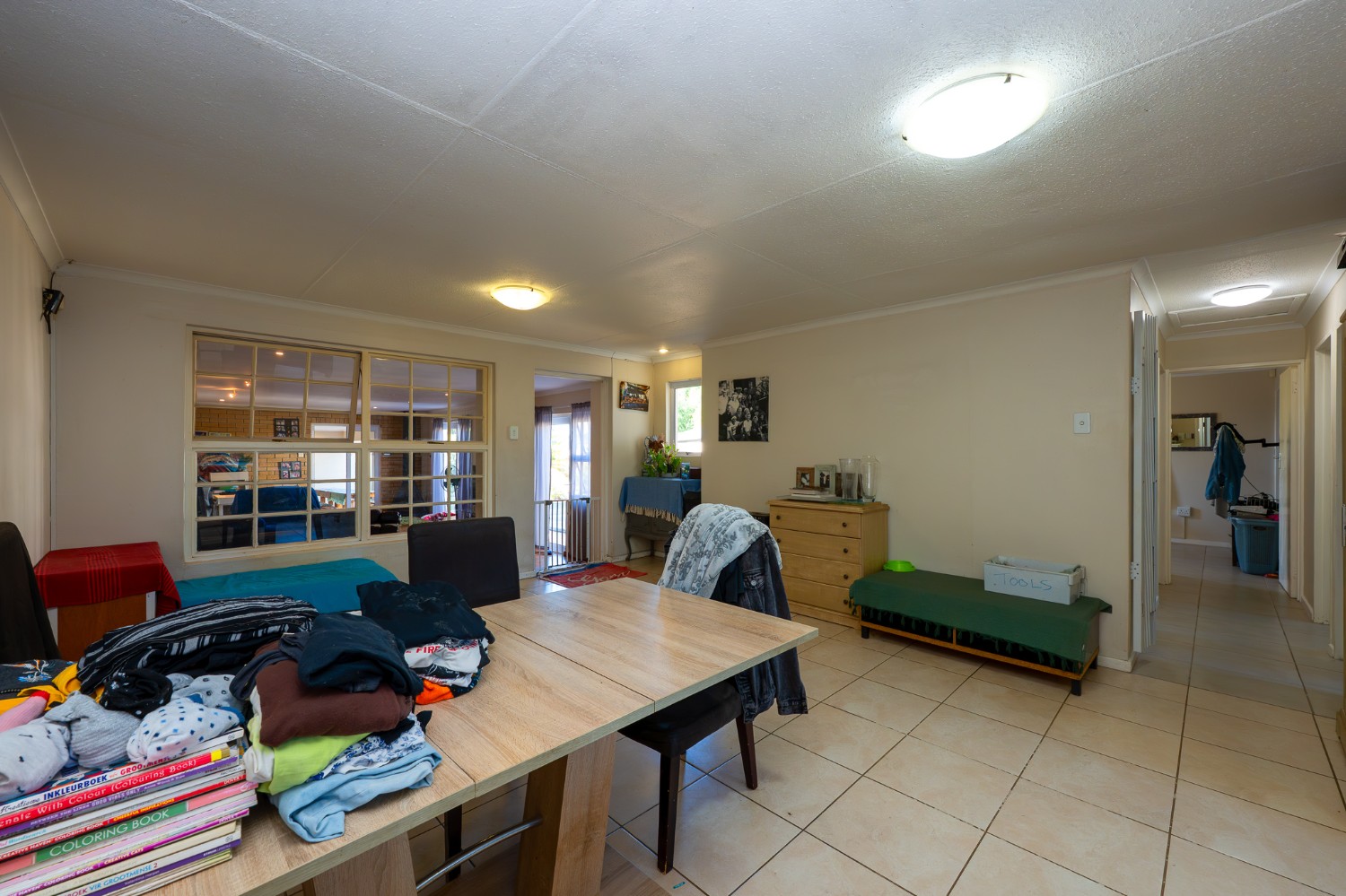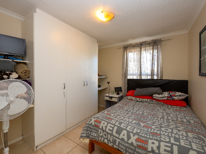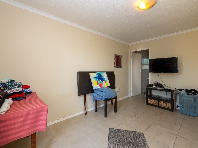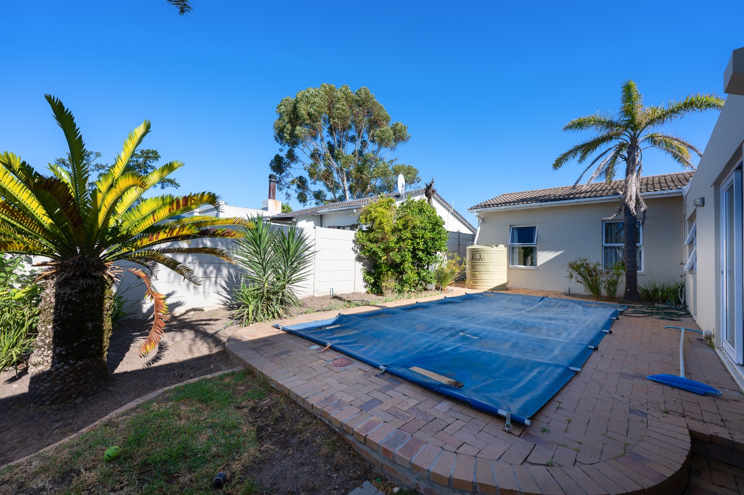 Outdoor living is a highlight of this property, with a large patio fitted with a built-in braai. The well-sized garden features a sparkling swimming pool, an ideal setting for relaxation and outdoor enjoyment. The property also includes a double garage, ensuring secure parking and additional storage space.