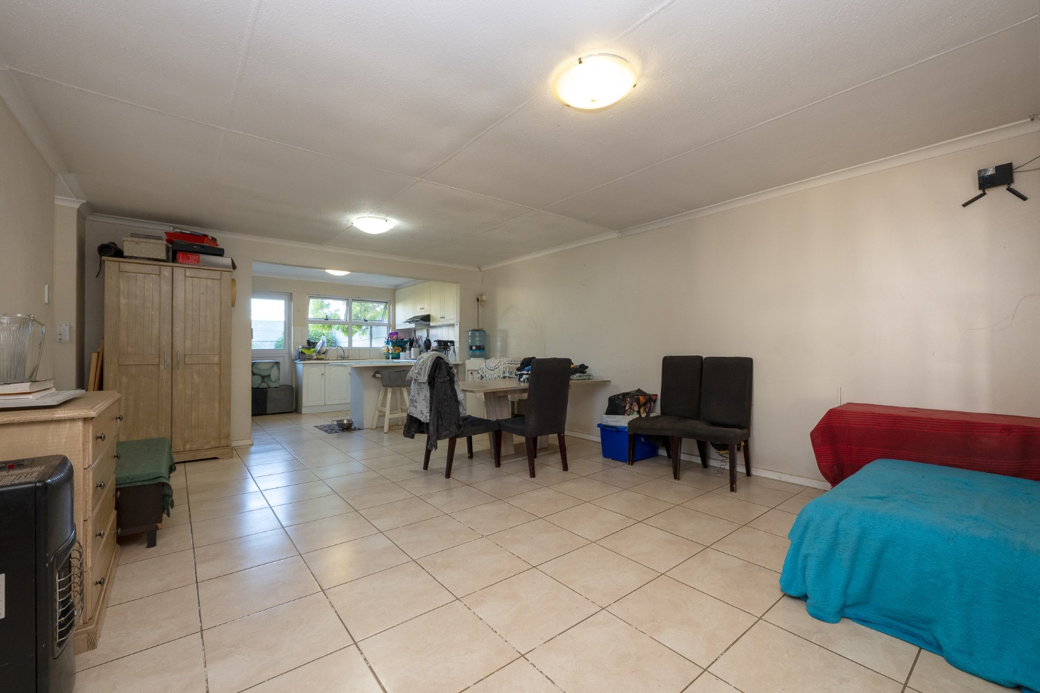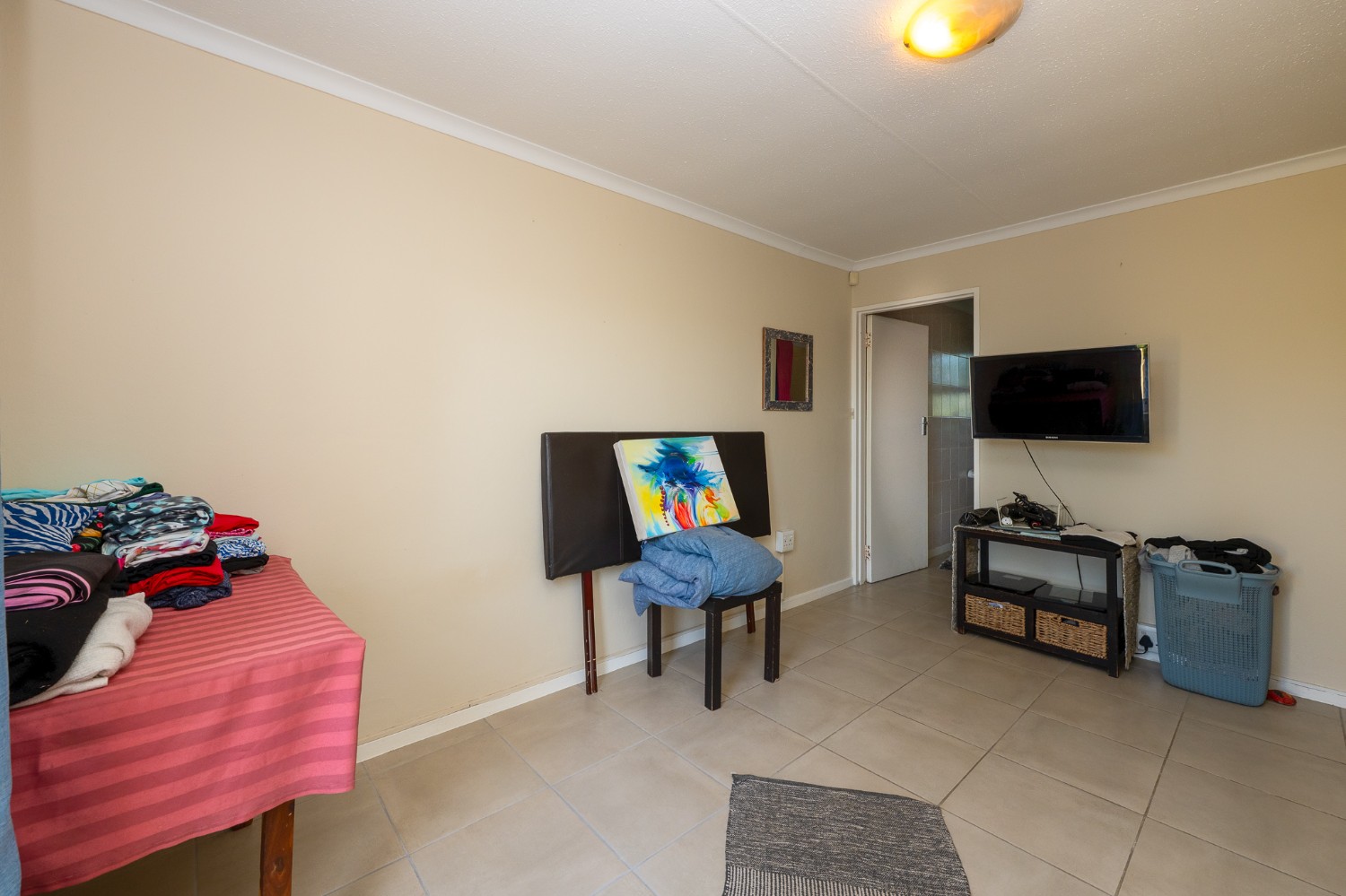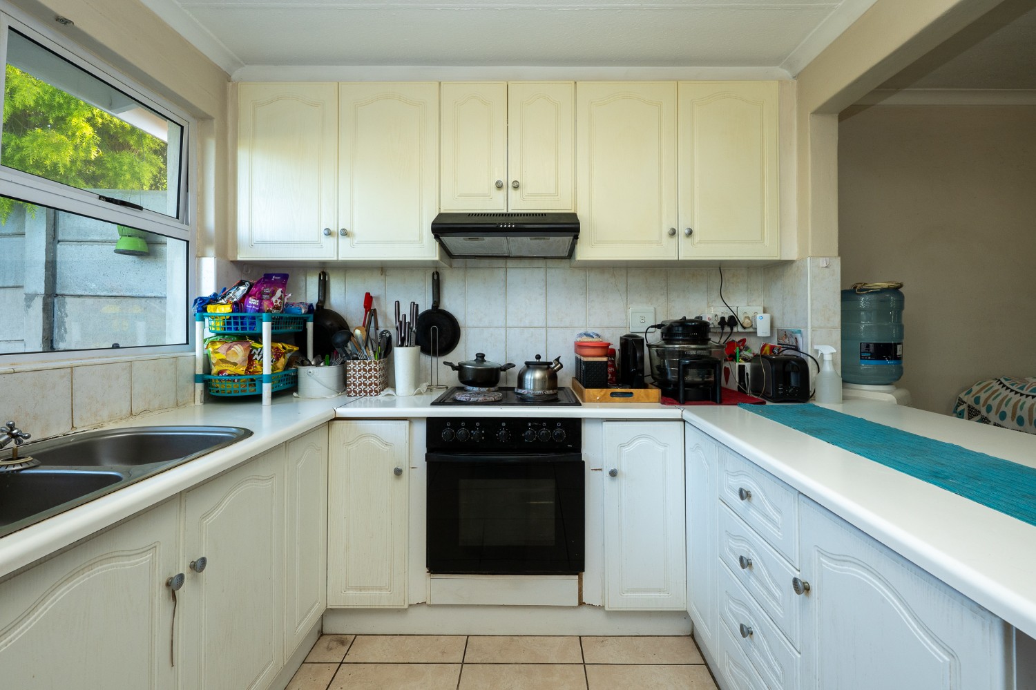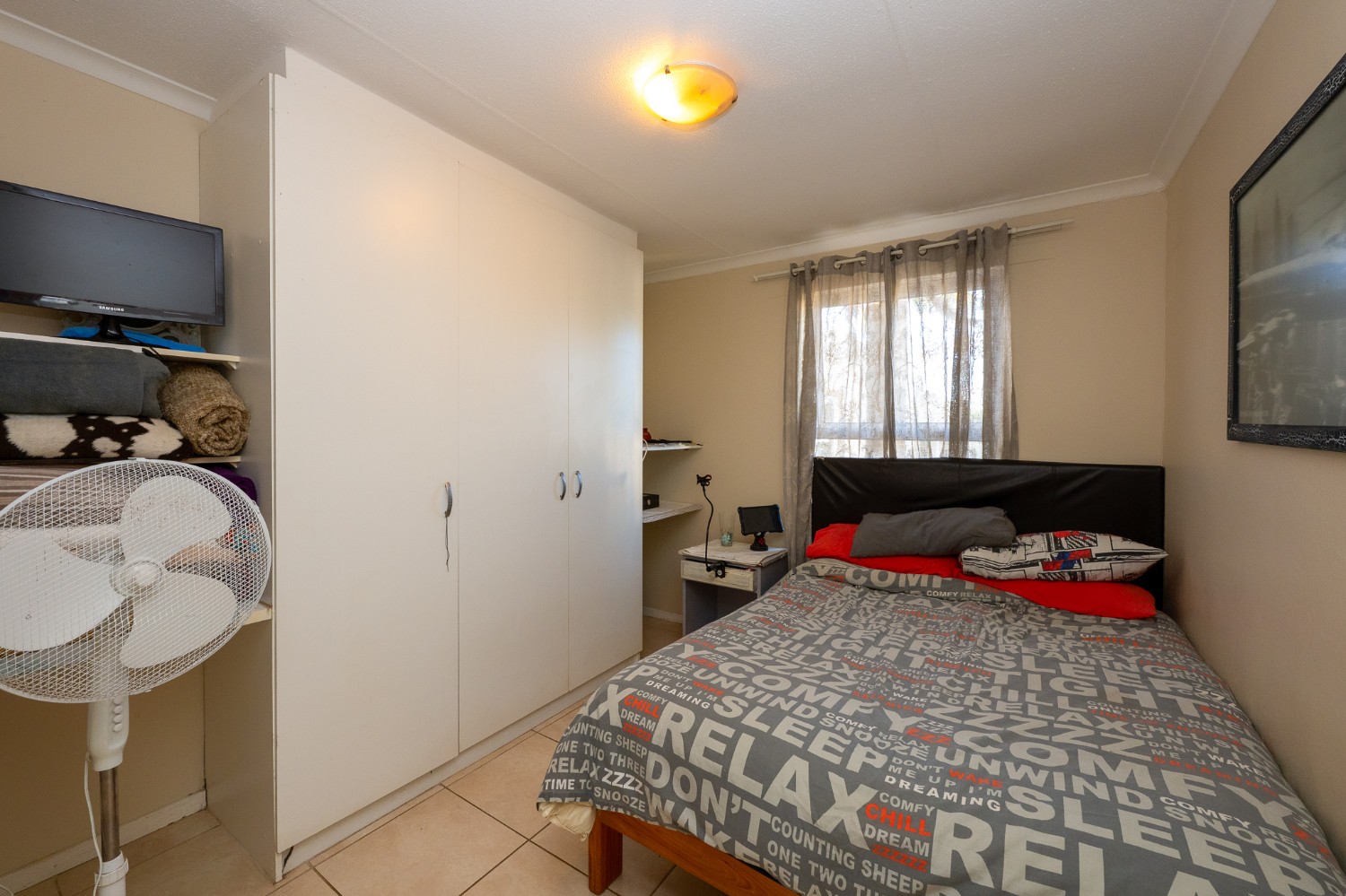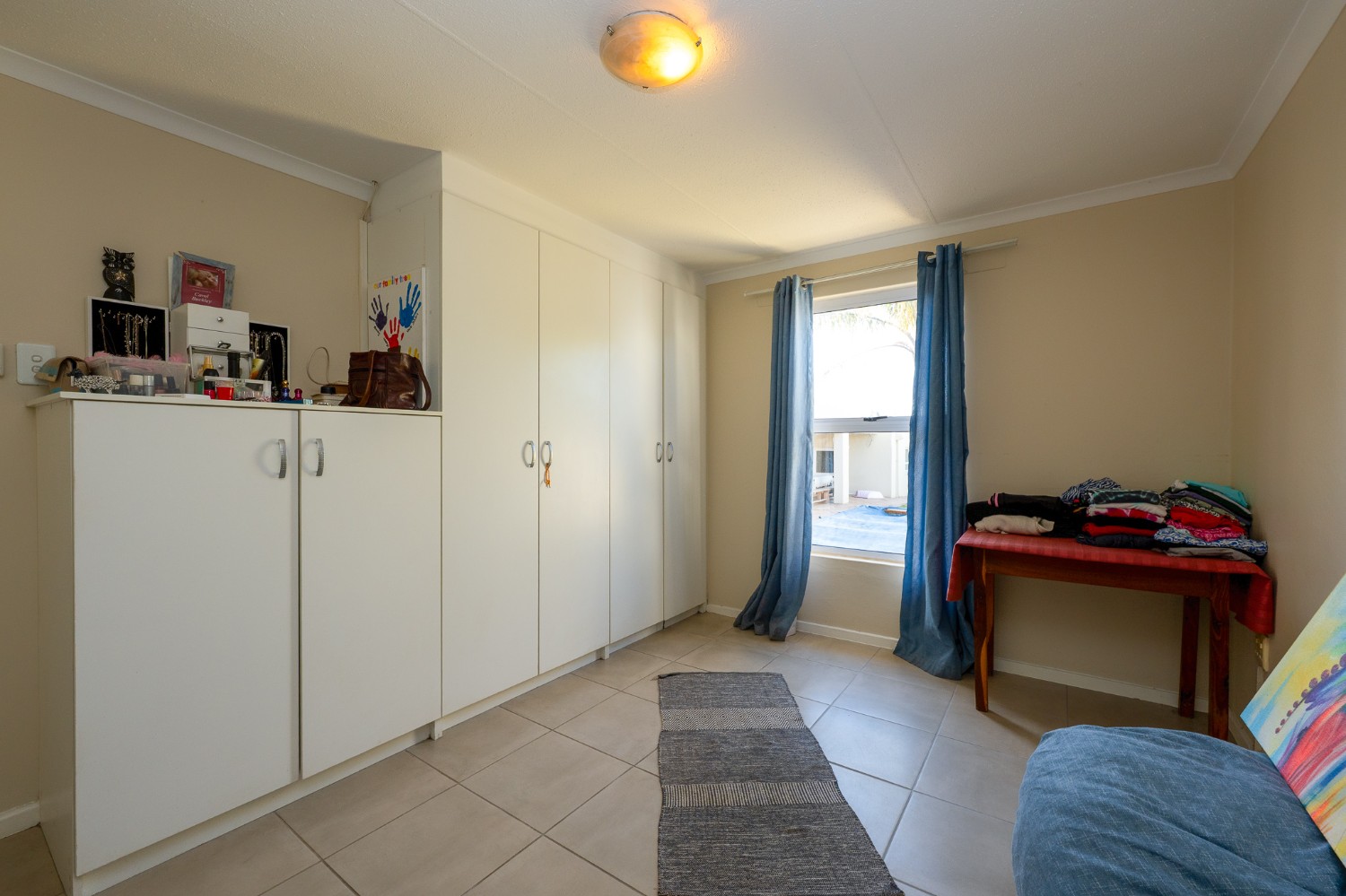 Outdoor living is a highlight of this property, with a large patio fitted with a built-in braai. The well-sized garden features a sparkling swimming pool, an ideal setting for relaxation and outdoor enjoyment. The property also includes a double garage, ensuring secure parking and additional storage space.