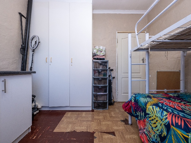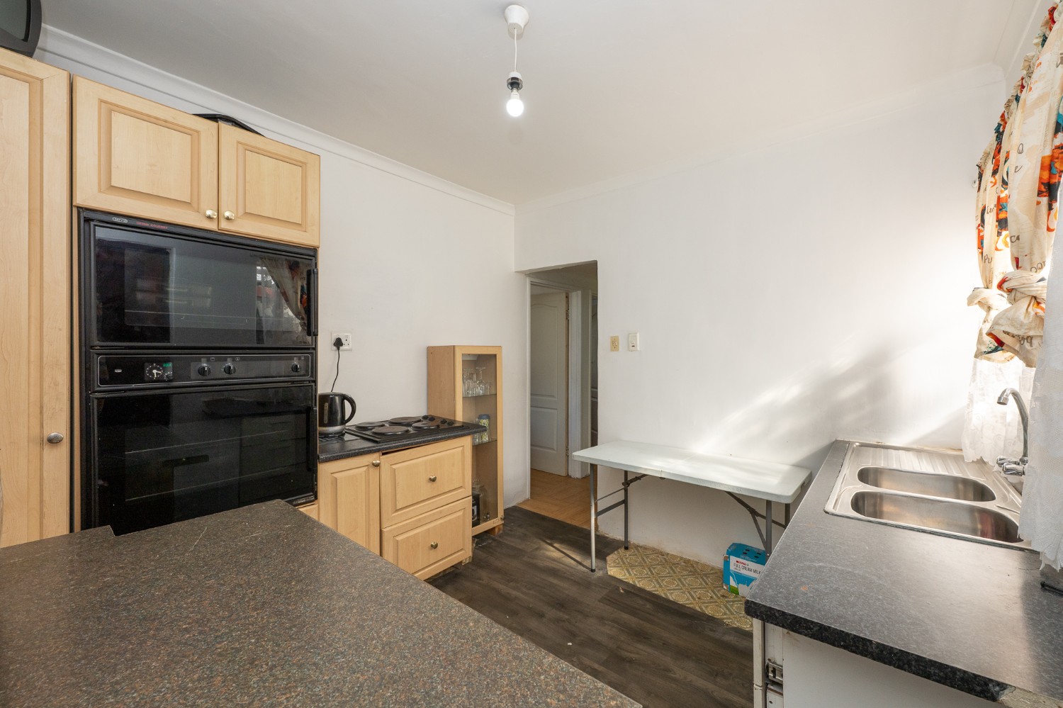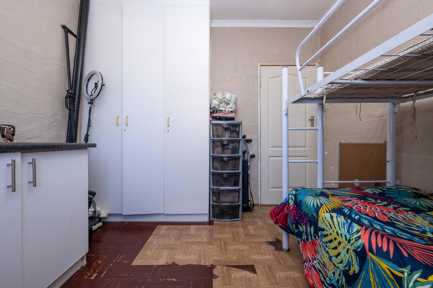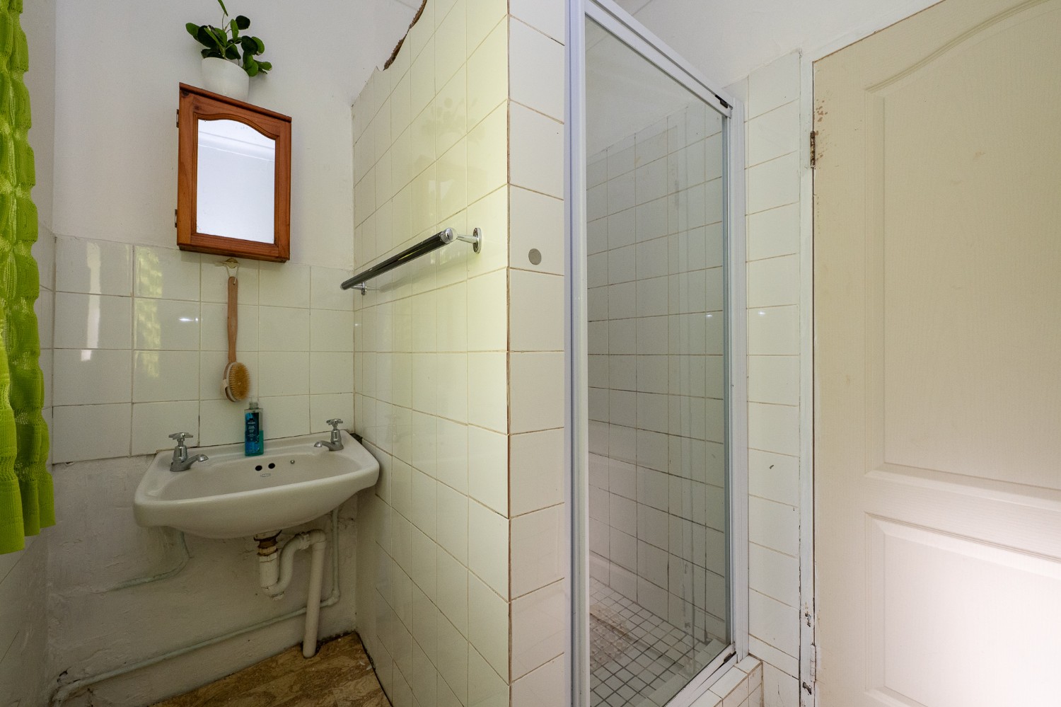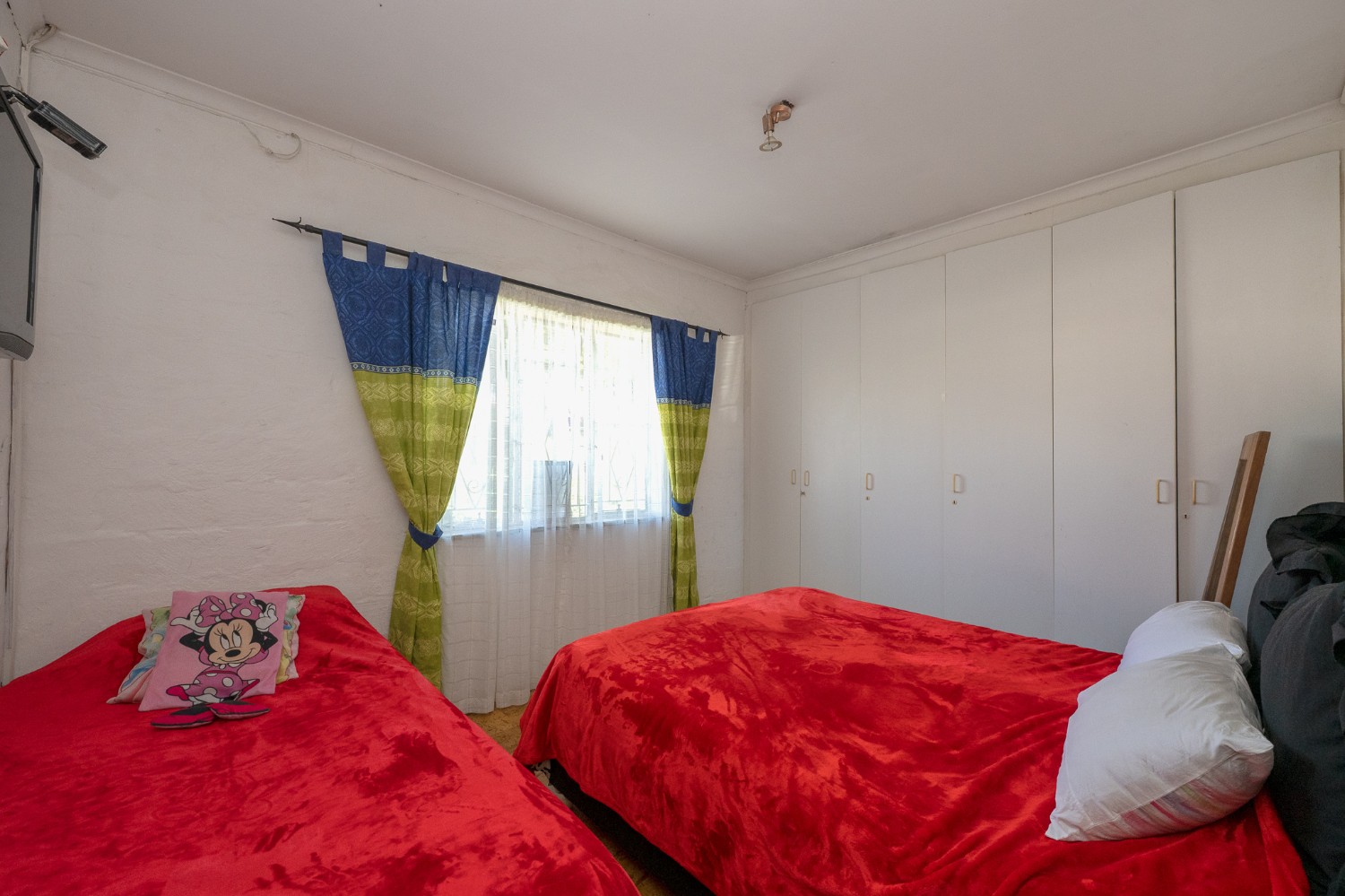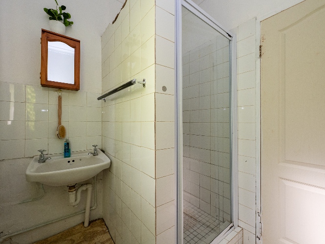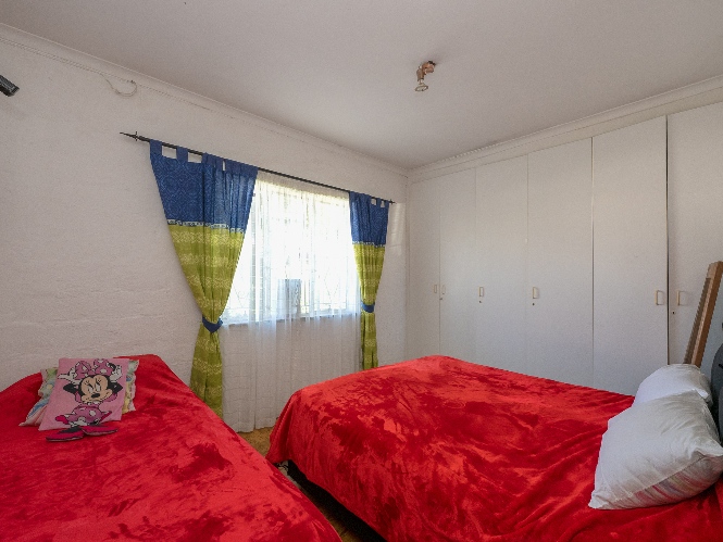 The home offers two well-sized bedrooms, each filled with natural light and fitted with built-in cupboards. The family bathroom offers a shower, basin, and toilet.
