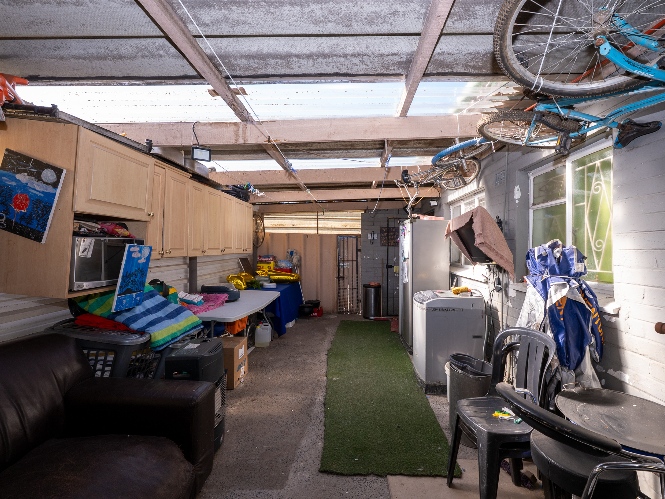 The inviting lounge provides a comfortable space for relaxing, complete with large windows allowing plenty of natural sunlight. The kitchen features ample space for potential built-in cupboards, an ideal opportunity to add your personal touches and make it your own.