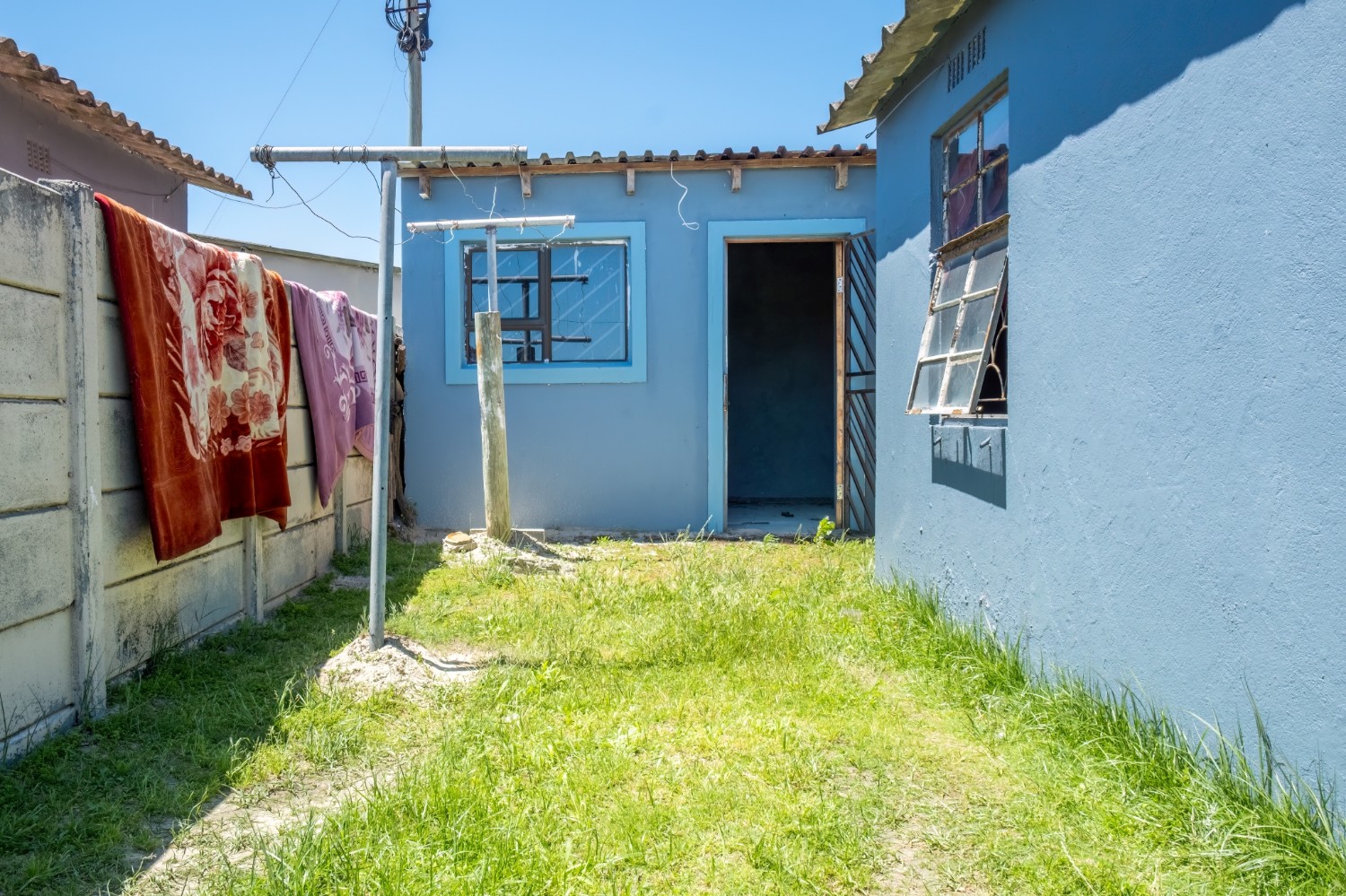 The main house features 1 bedroom, 1 bathroom, a kitchen, and a lounge area with an extension made from zinc. The home is finished with aluminium windows and tiled flooring throughout.