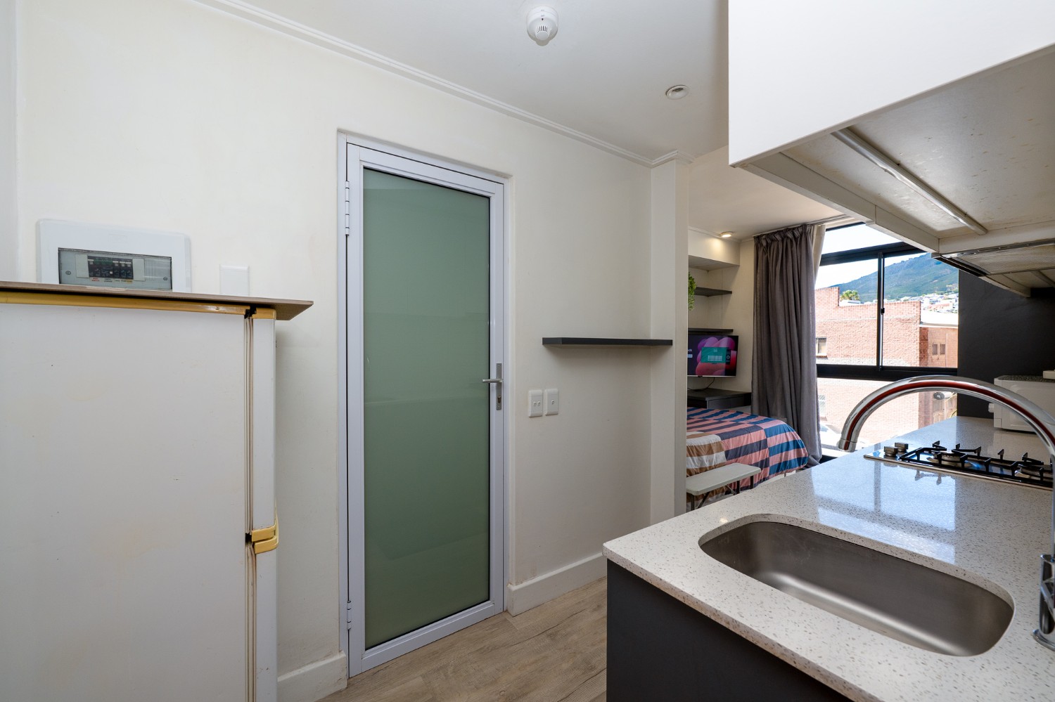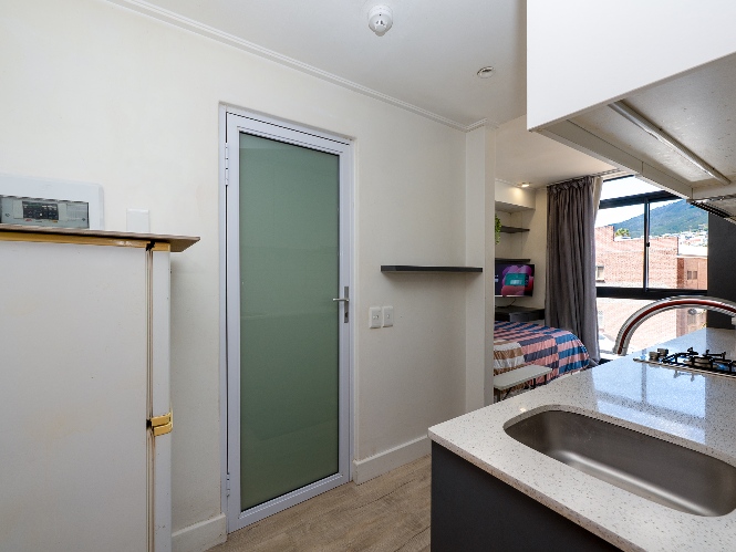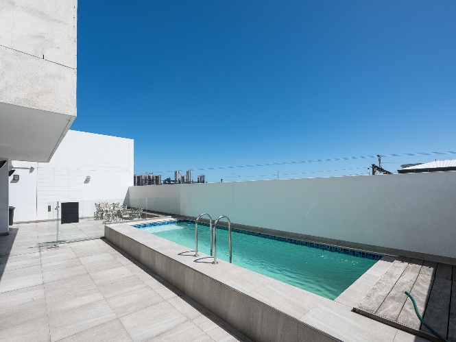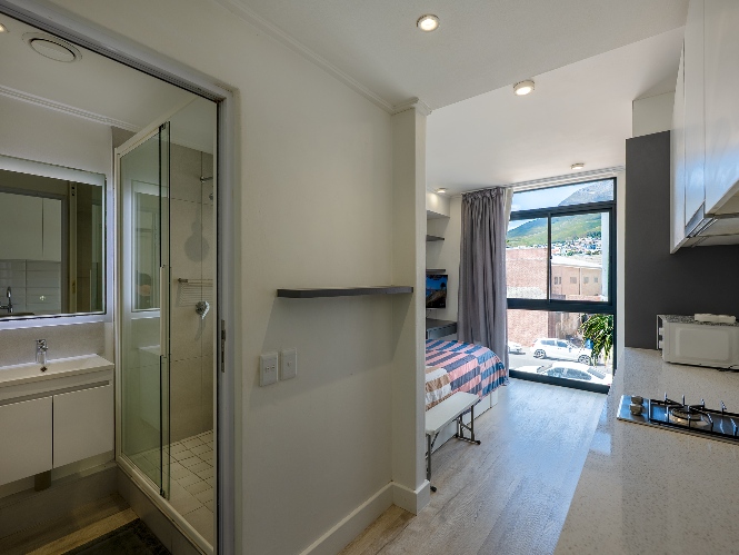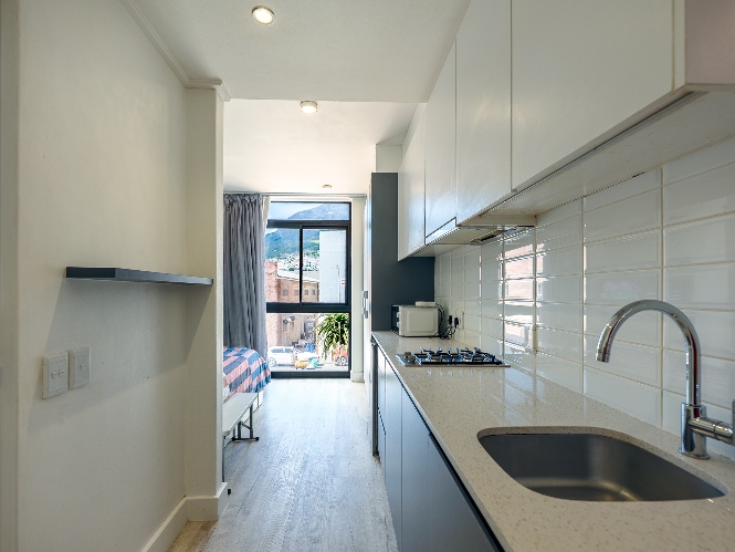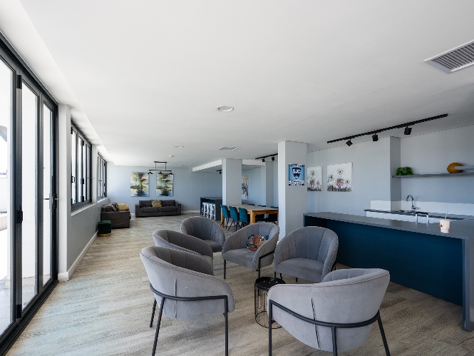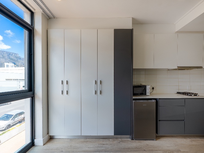 The layout features an open-plan kitchen and bedroom space, with built-in cupboards for convenience. The bathroom offers a shower. The complex includes fantastic lifestyle amenities such as a communal laundry, clubhouse, a built-in braai and entertainment area, and a sparkling swimming pool to enjoy on warm summer days. For ease of access, the building is equipped with a lift.
