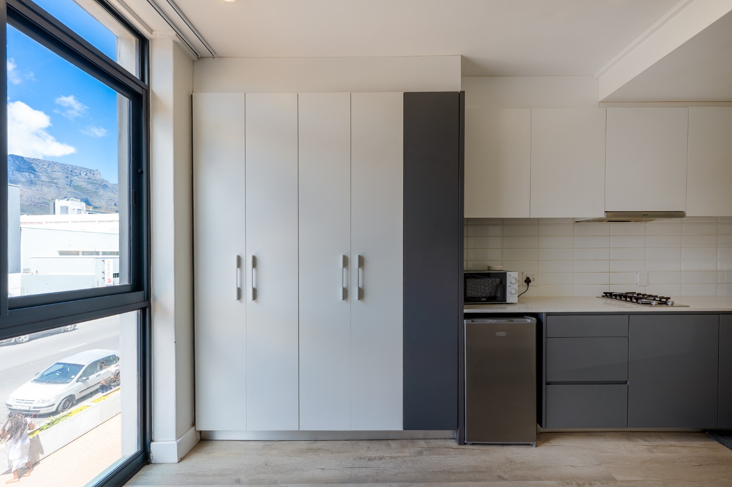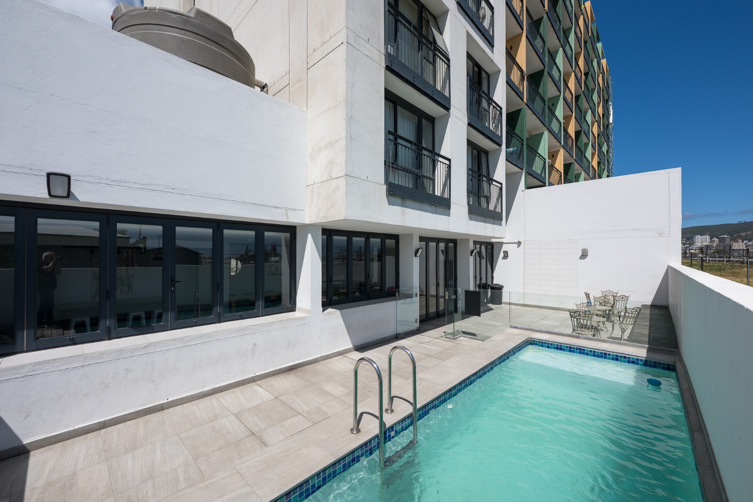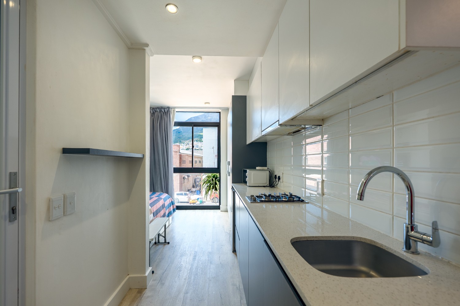 The layout features an open-plan kitchen and bedroom space, with built-in cupboards for convenience. The bathroom offers a shower. The complex includes fantastic lifestyle amenities such as a communal laundry, clubhouse, a built-in braai and entertainment area, and a sparkling swimming pool to enjoy on warm summer days. For ease of access, the building is equipped with a lift.