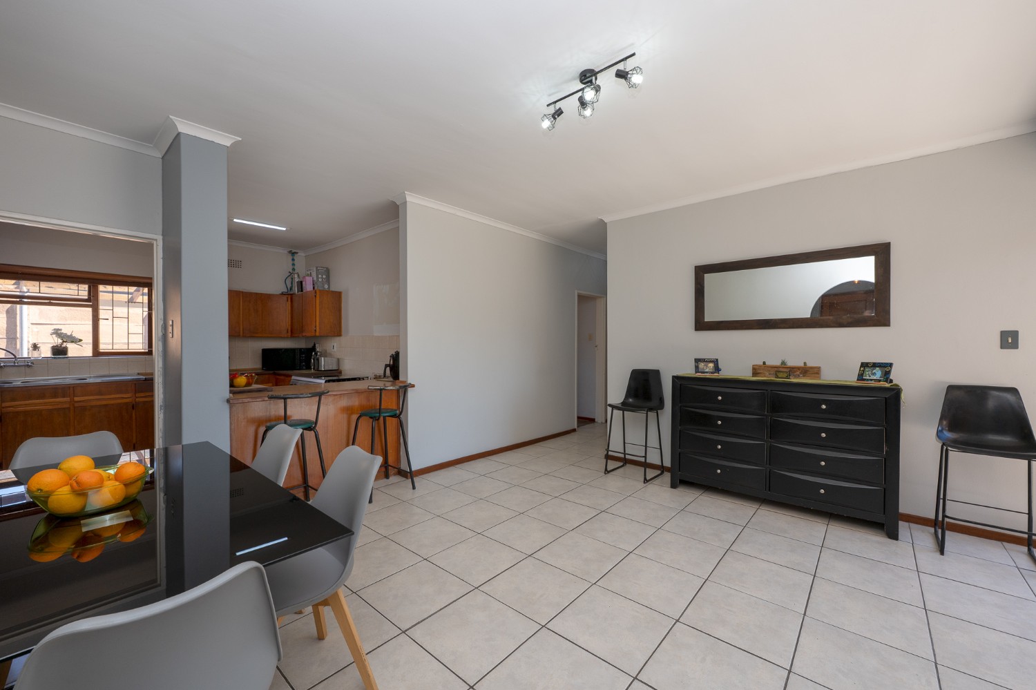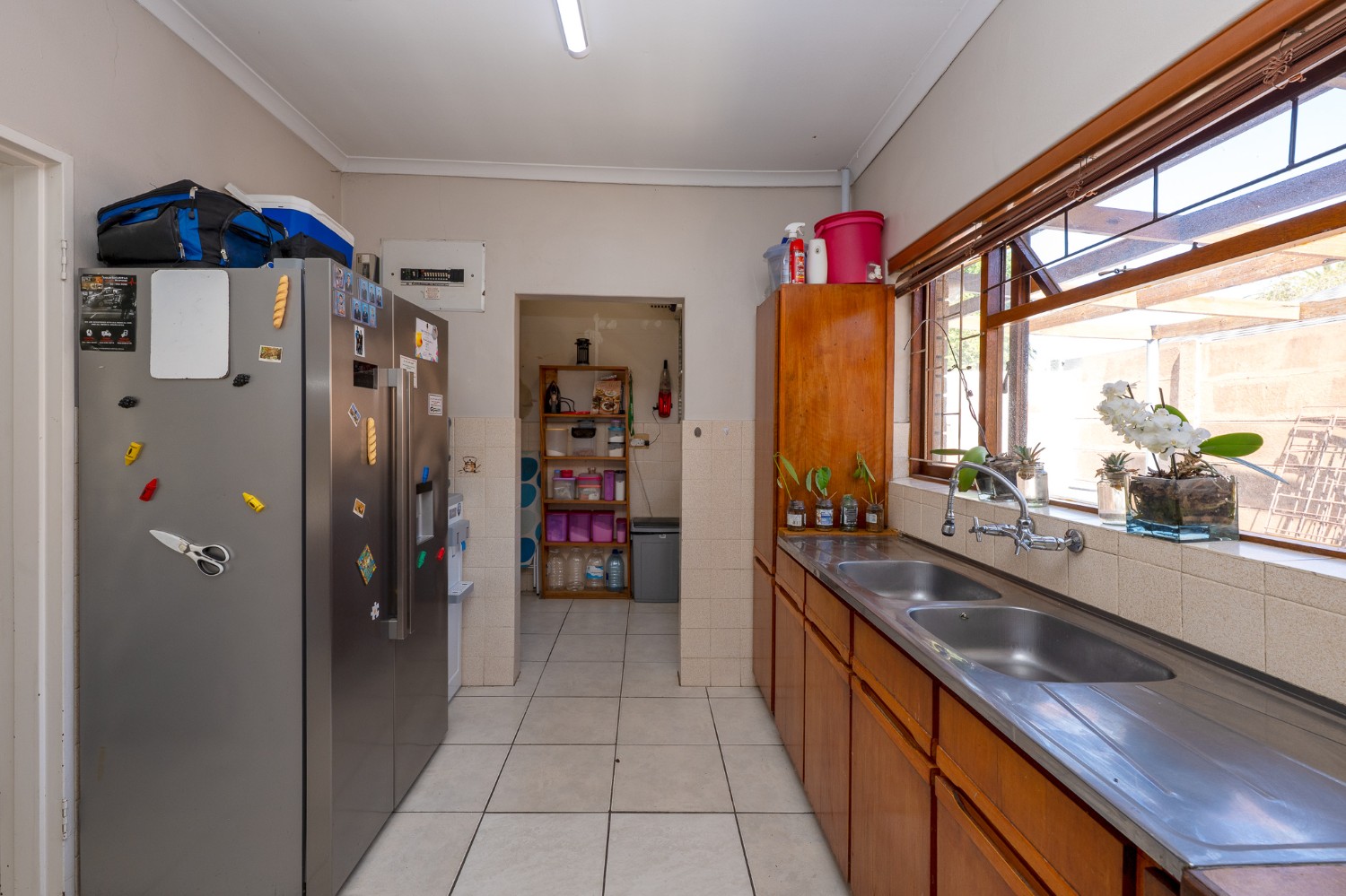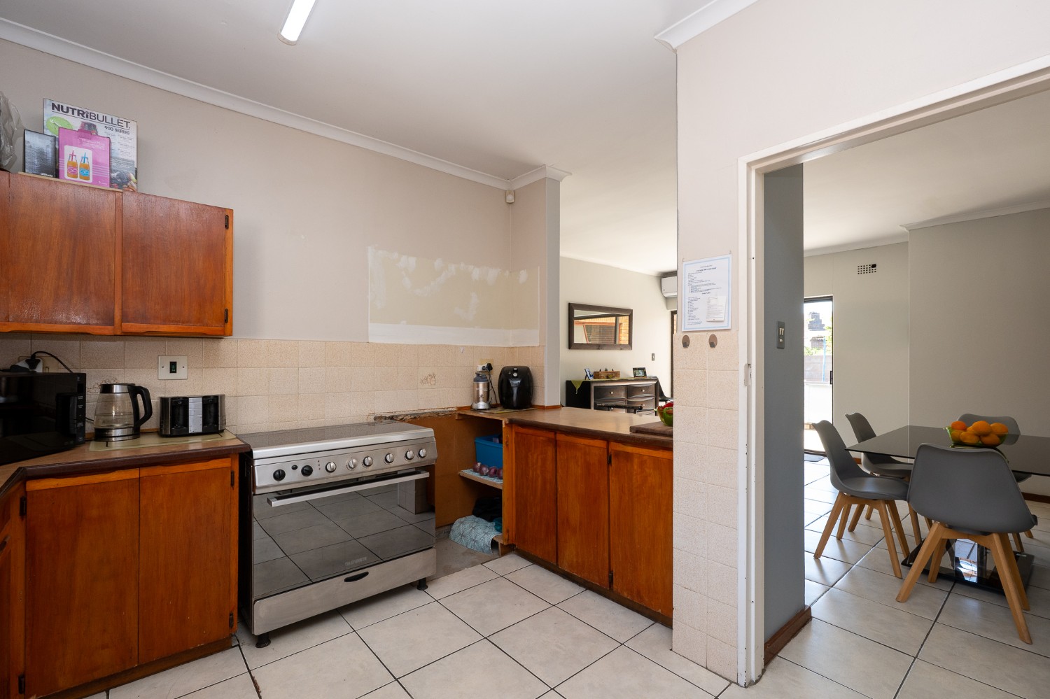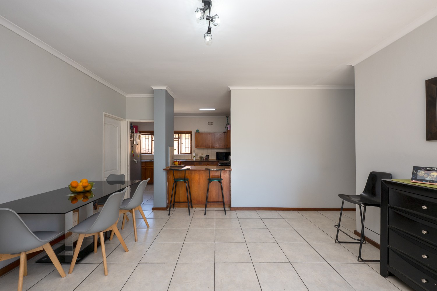 The welcoming lounge offers a comfortable space to relax and unwind, while the dedicated office area is perfect for those who work from home or need a quiet study space. The dining room features an air-conditioning unit and a sliding door opening up to the backyard. The open-plan kitchen is designed for both functionality and style, offering plenty of countertop space, built-in cupboards, and a separate scullery/laundry for added convenience.