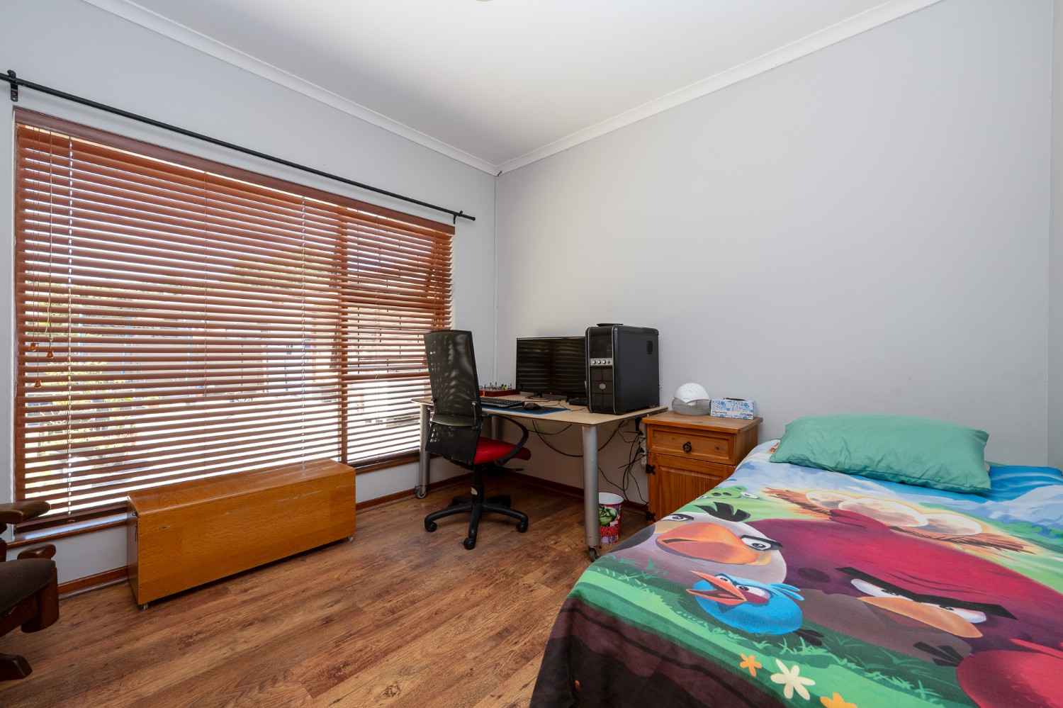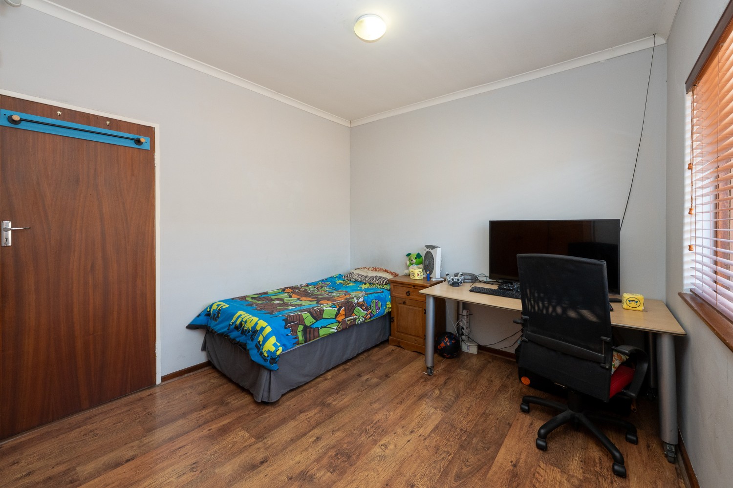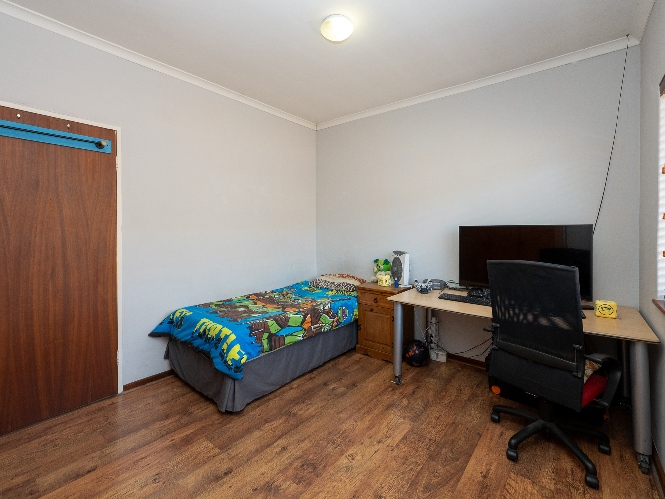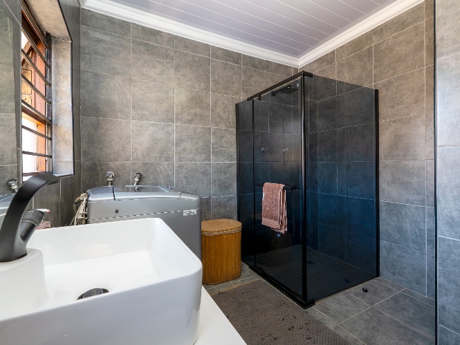 The home offers three generously sized bedrooms, each fitted with built-in cupboards, providing ample storage space for the whole family. The master bedroom includes an en-suite bathroom with a bathtub, basin and toilet. The modern family bathroom is fitted with a shower, basin, and toilet, serving the rest of the home.