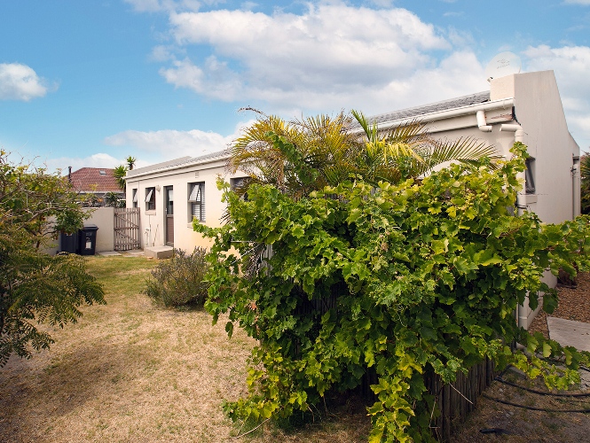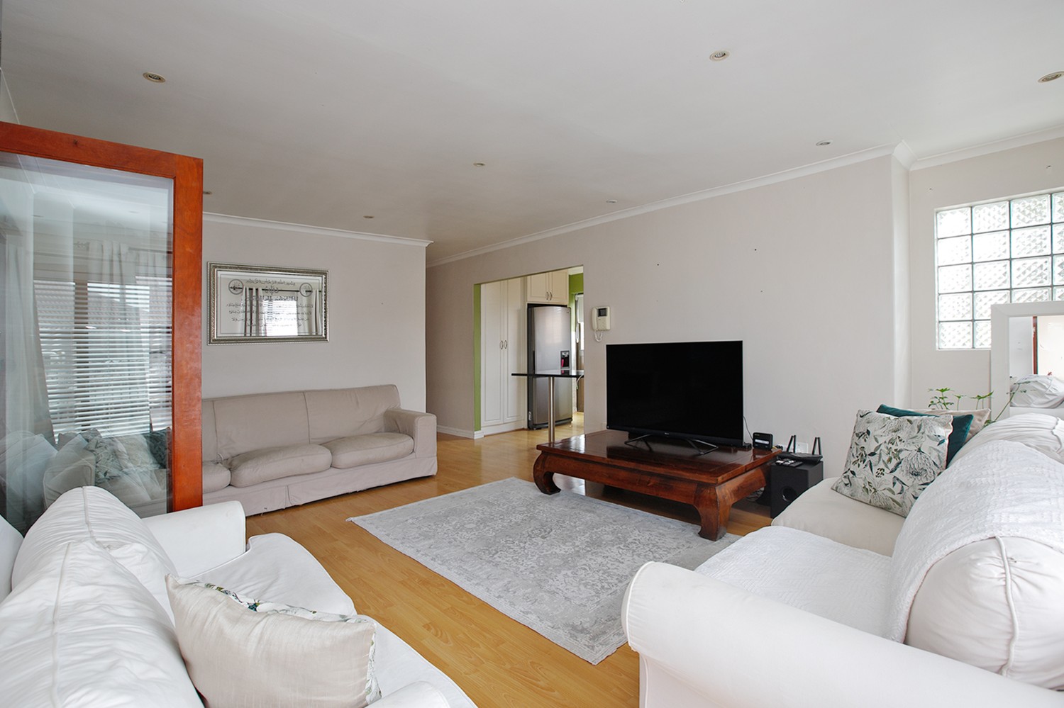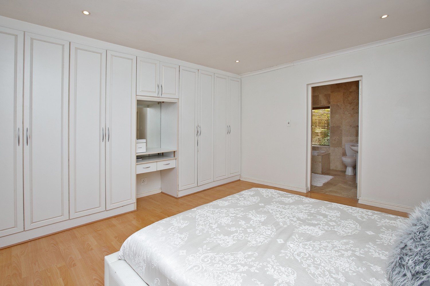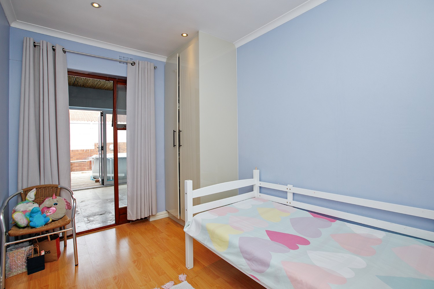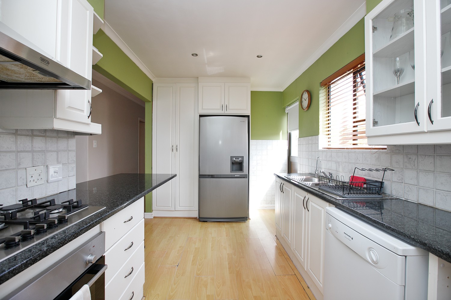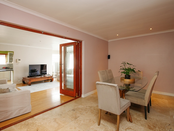 An enclosed entertainment area with a built-in braai creates an ideal space for year-round entertaining and opens onto the backyard, complete with a wooden deck for relaxed outdoor living.
