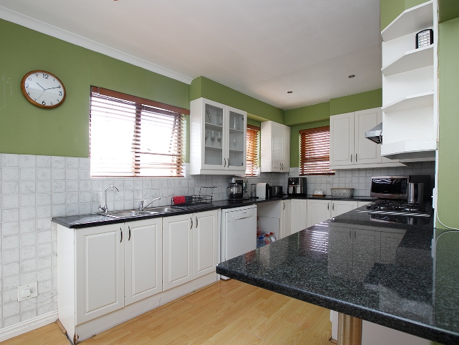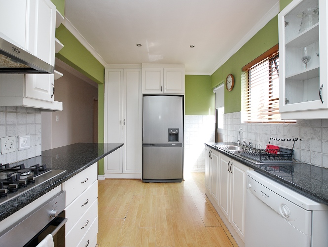 The property features four bedrooms, three of which include built-in cupboards and laminated flooring. The spacious lounge area is fitted with laminated flooring, creating a warm and inviting living space, while a separate dining room provides the perfect setting for family meals and entertaining.