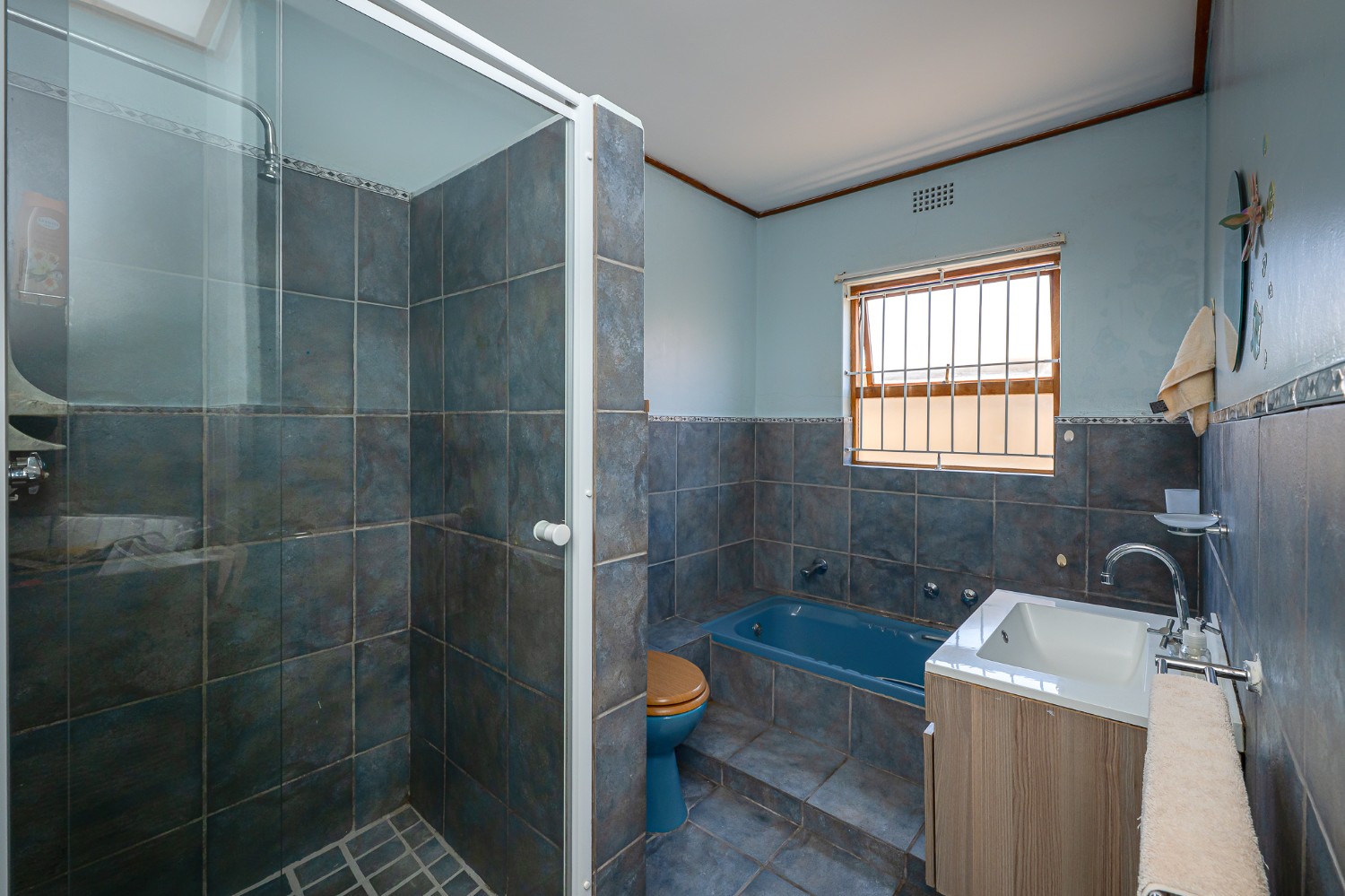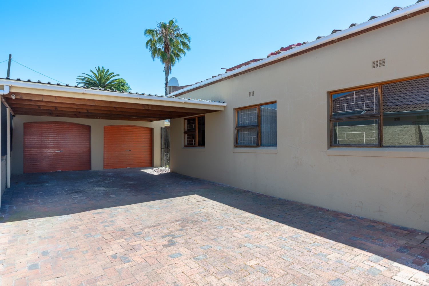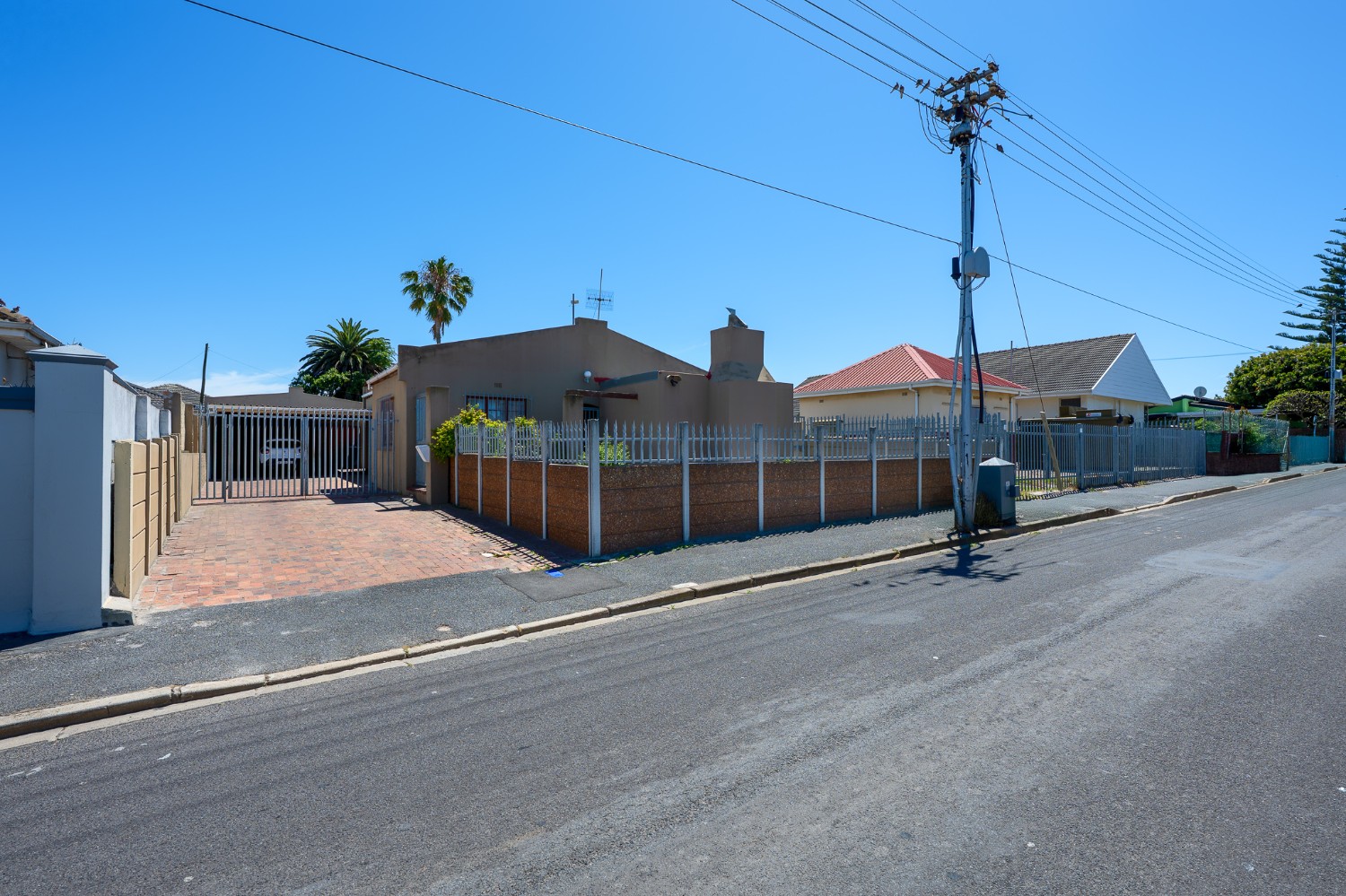 Security and convenience are top priorities, with three galvanised gates providing access to the front, back, and side doors, along with four security cameras and two Spanish burglar bars for added peace of mind. The property is fully enclosed by six-foot boundary walls and a galvanised steel gate at the driveway.