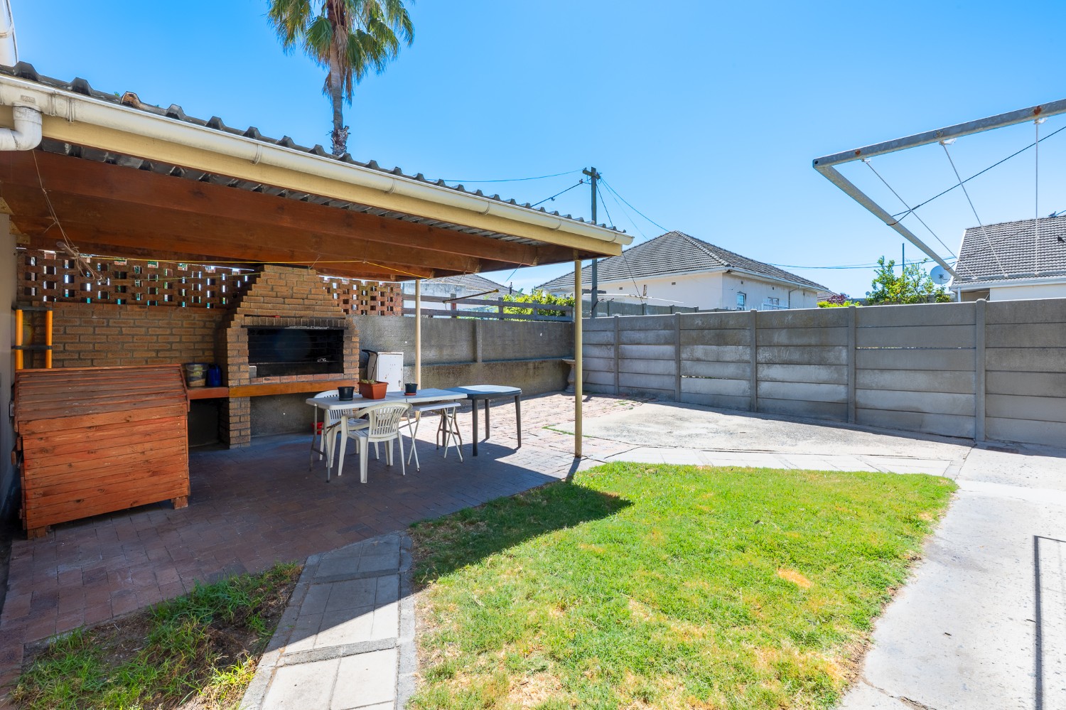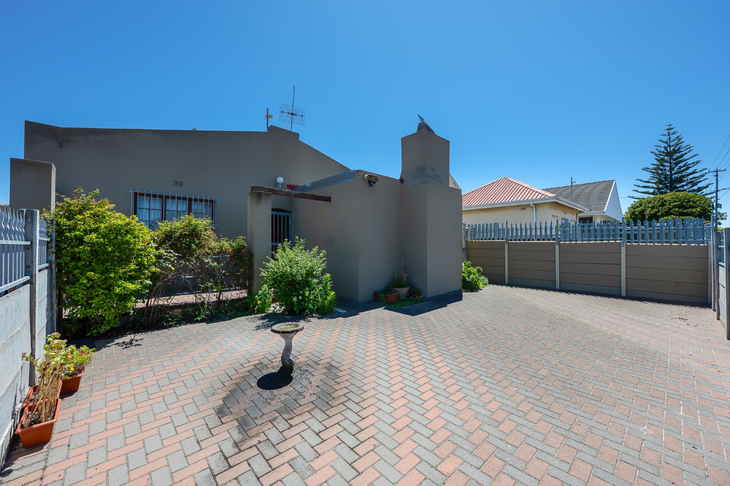 Outside, the front garden is beautifully maintained and includes a charming bird bath, complemented by a fully paved front yard for easy upkeep. The backyard offers an additional outdoor braai area with a covered patio, perfect for family gatherings and relaxation.