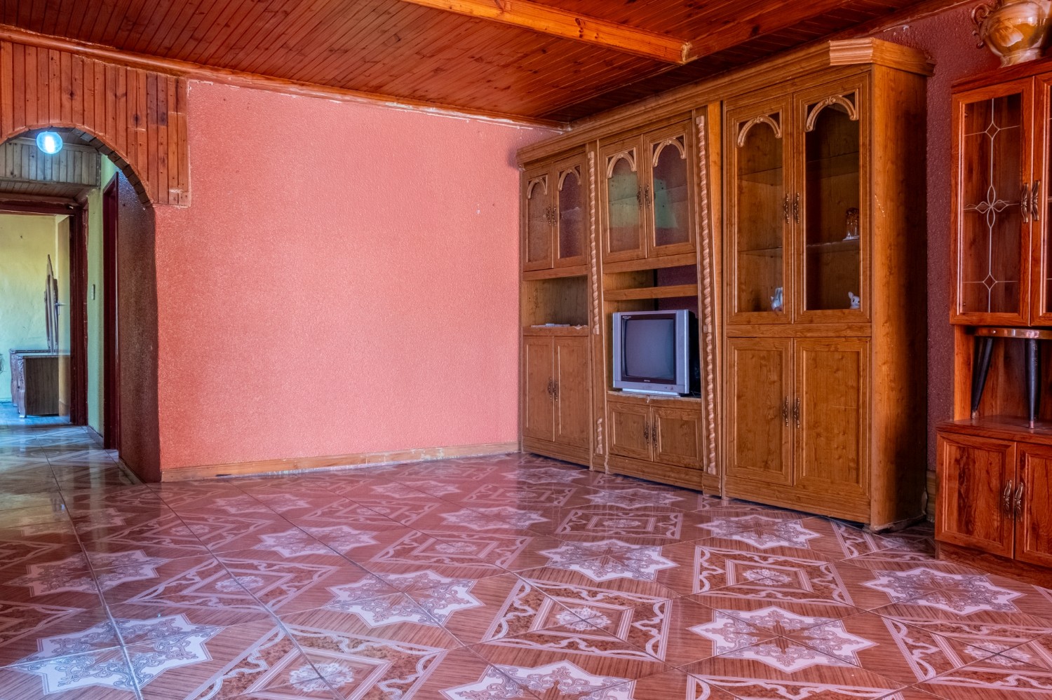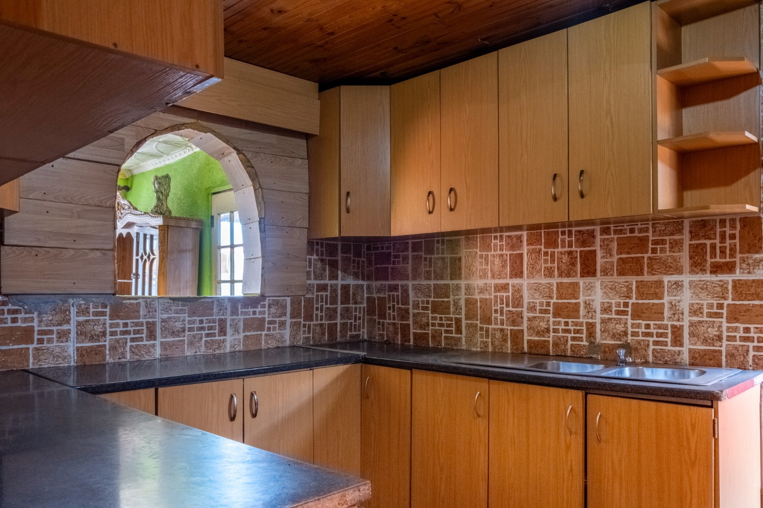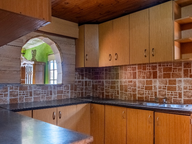 The home has a mix of tiled and laminate flooring and wooden window frames, adding warmth and character. The garage area accommodates 2 small cars, providing convenient off-street parking.
